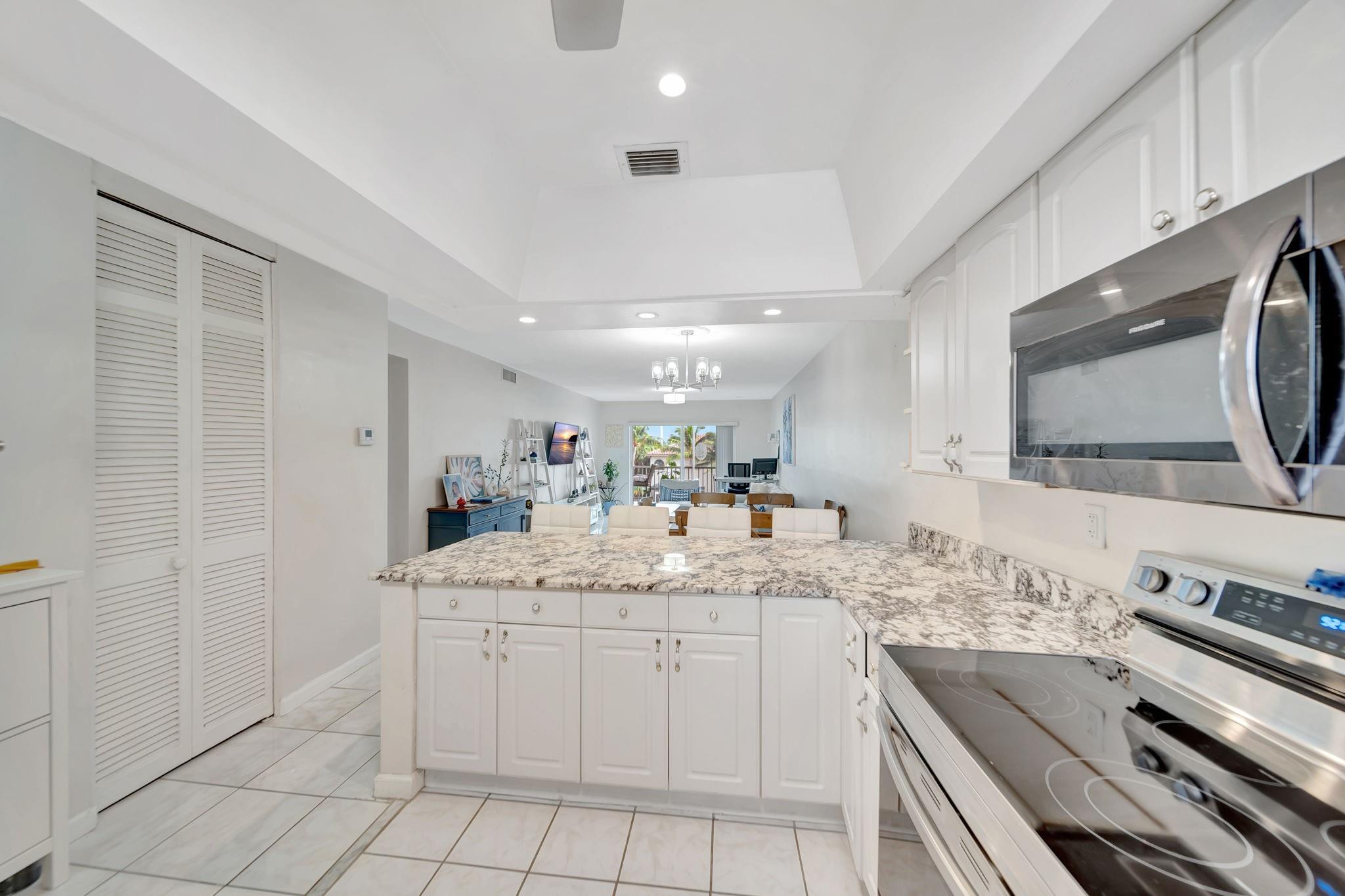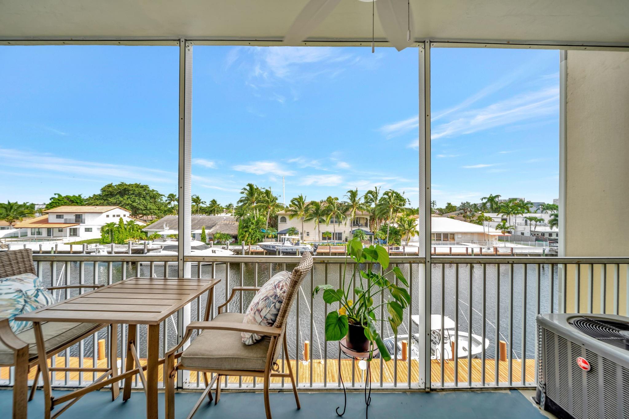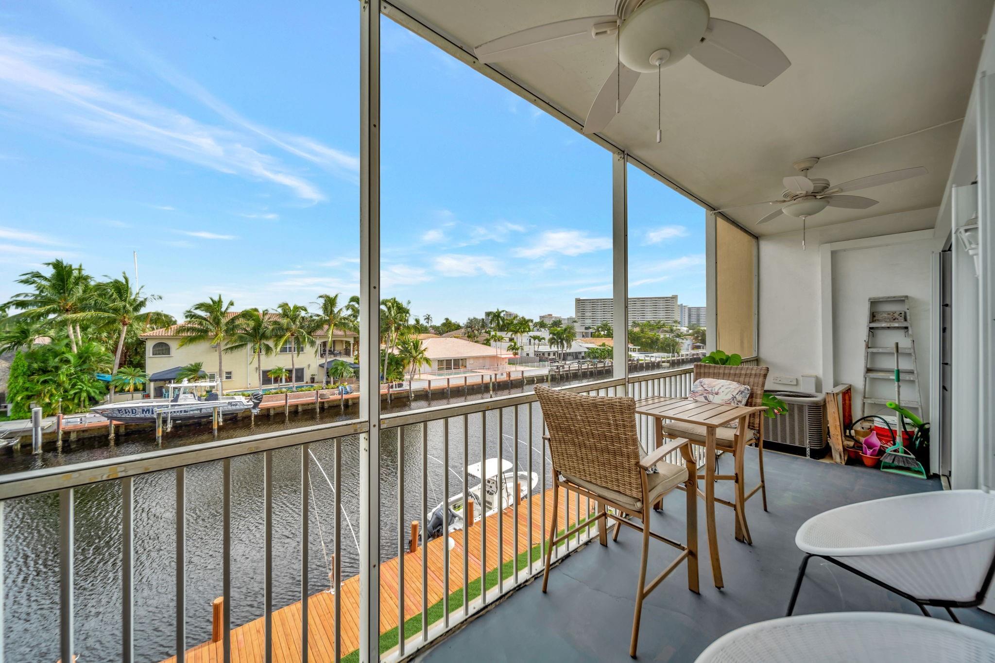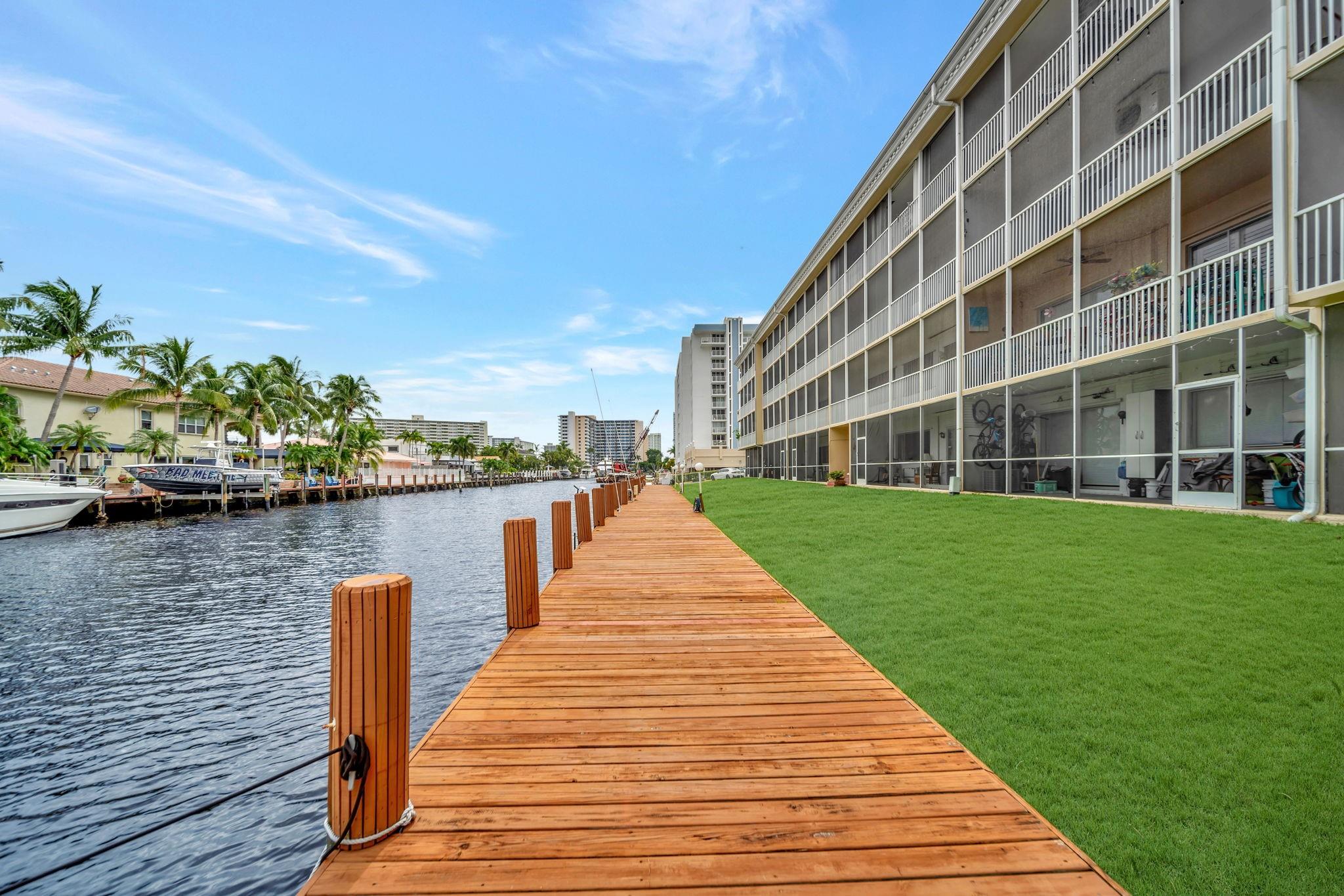 PRICE IMPROVEMENT. This exceptional condo offers 2 bedrooms and 2 bathrooms, featuring an ensuite primary bathroom for added privacy. Open kitchen is complete with stainless steel appliances, a granite countertop breakfast bar, and LED lighting. The living room is spacious with plenty of room for entertaining. Relax and enjoy the beautiful canal views from your 24x6 balcony. Tons of closet space!! Upgrades include new hurricane shutters for sliding glass door, ceiling fans, and lighting. Water heater- 2022, Rheem AC- 2018, washer/dryer in unit- 2019, dishwasher-2024. Building amenities include waterfront, dock, pool, BBQ area, laundry, and elevator. Storage unit is also down the hall. Dock slip available to hold up to a 32' boat. NO HOA INCREASE 2025. PETS- CATS ONLY. Annual lease only