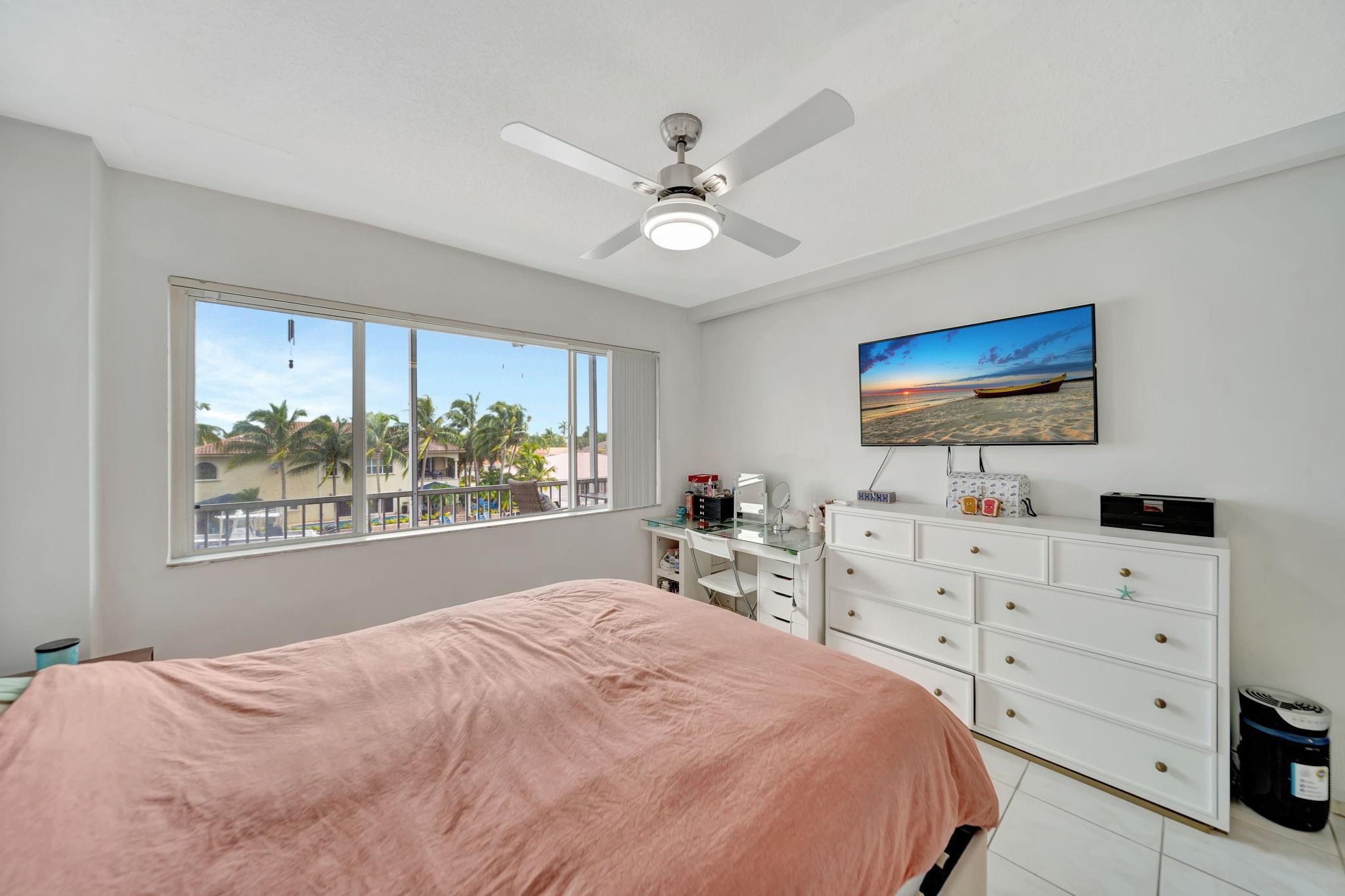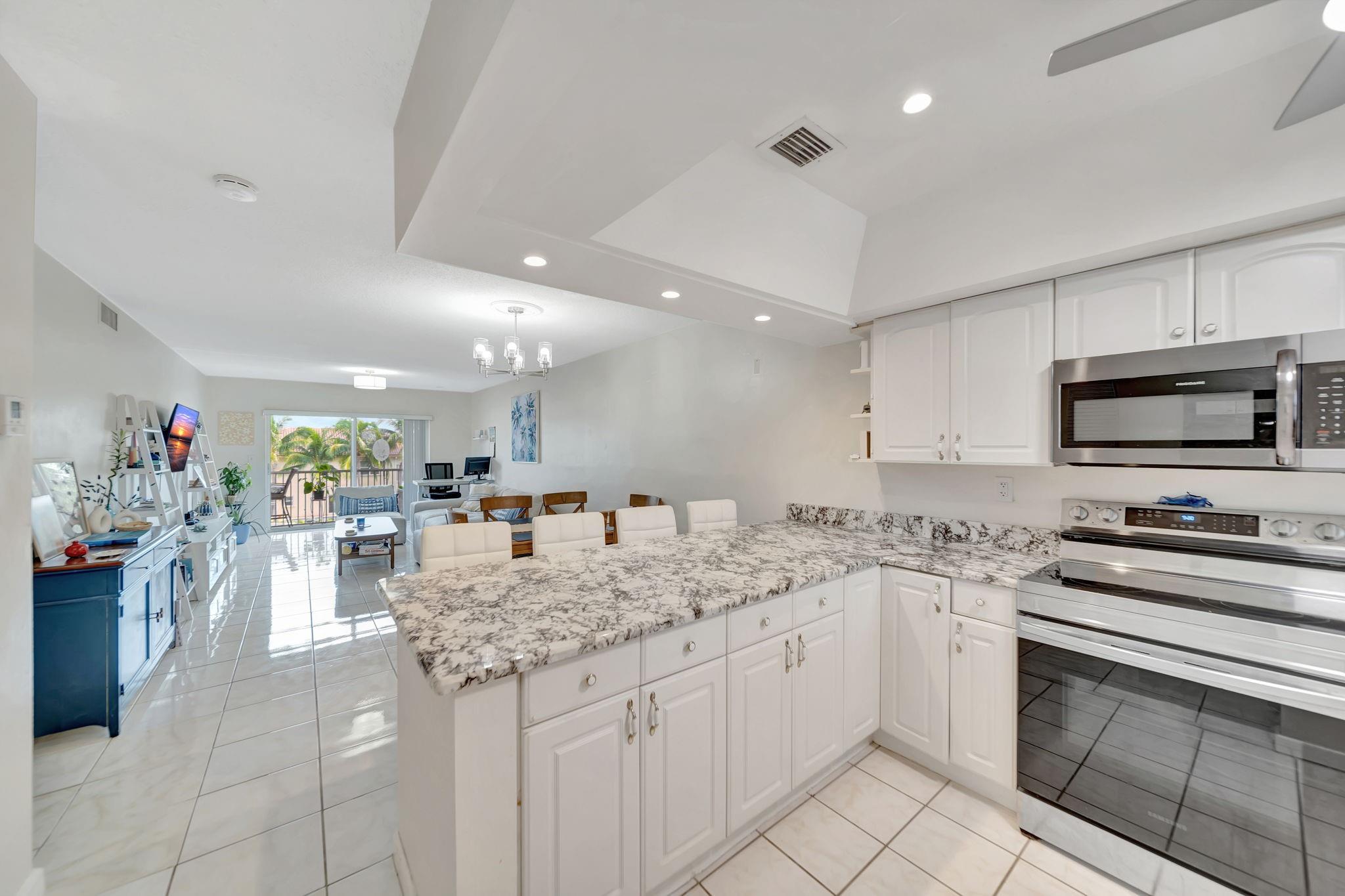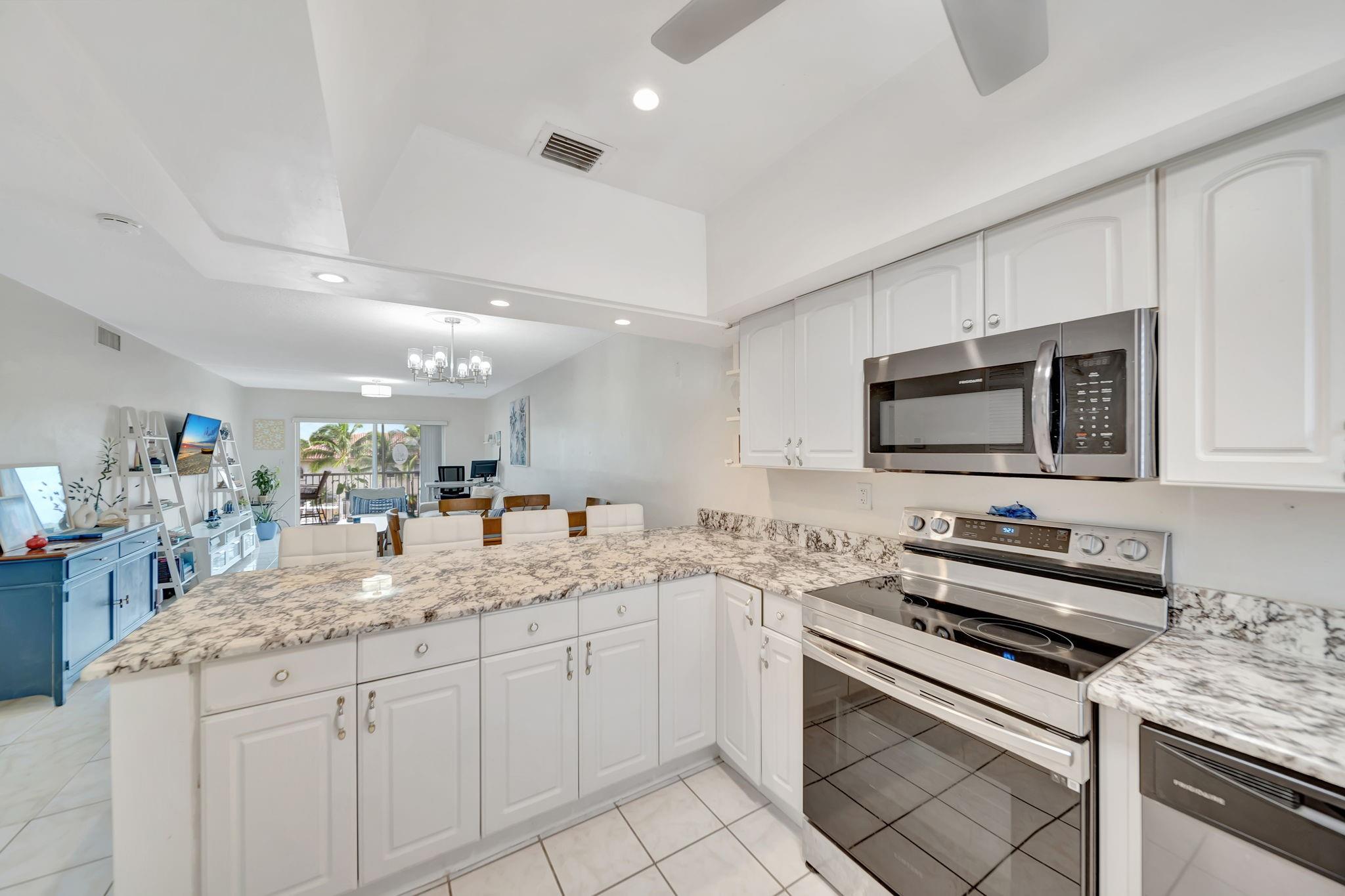 PRICE IMPROVEMENT. This exceptional condo offers 2 bedrooms and 2 bathrooms, featuring an ensuite primary bathroom for added privacy. Open kitchen is complete with stainless steel appliances, a granite countertop breakfast bar, and LED lighting. The living room is spacious with plenty of room for entertaining. Relax and enjoy the beautiful canal views from your 24x6 balcony. Tons of closet space!! Upgrades include new hurricane shutters for sliding glass door, ceiling fans, and lighting. Water heater- 2022, Rheem AC- 2018, washer/dryer in unit- 2019, dishwasher-2024. Building amenities include waterfront, dock, pool, BBQ area, laundry, and elevator. Storage unit is also down the hall. Dock slip available to hold up to a 32' boat. NO HOA INCREASE 2025. PETS- CATS ONLY. Annual lease only