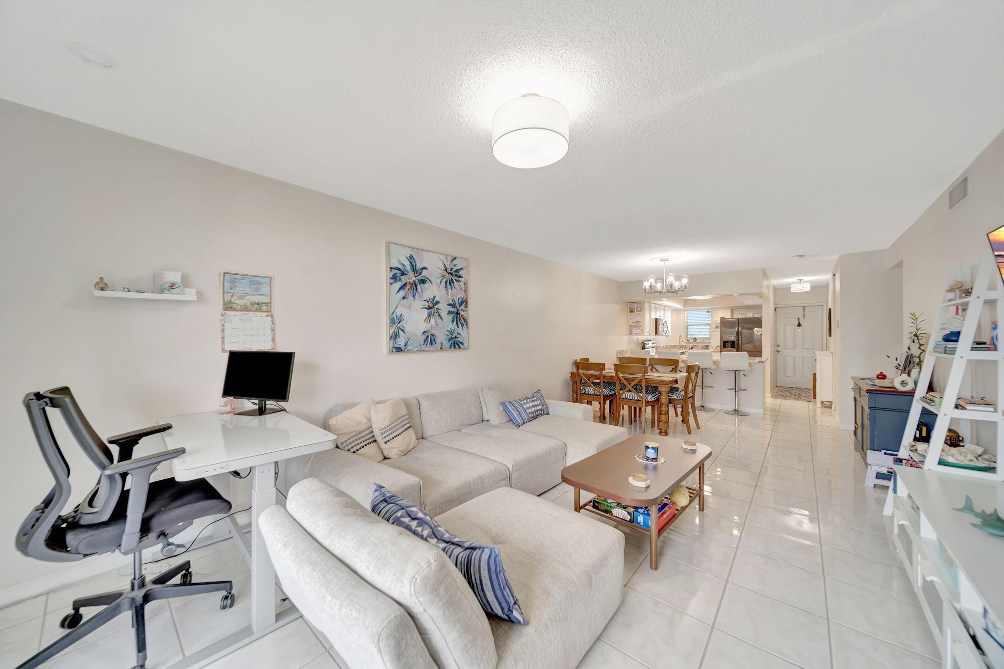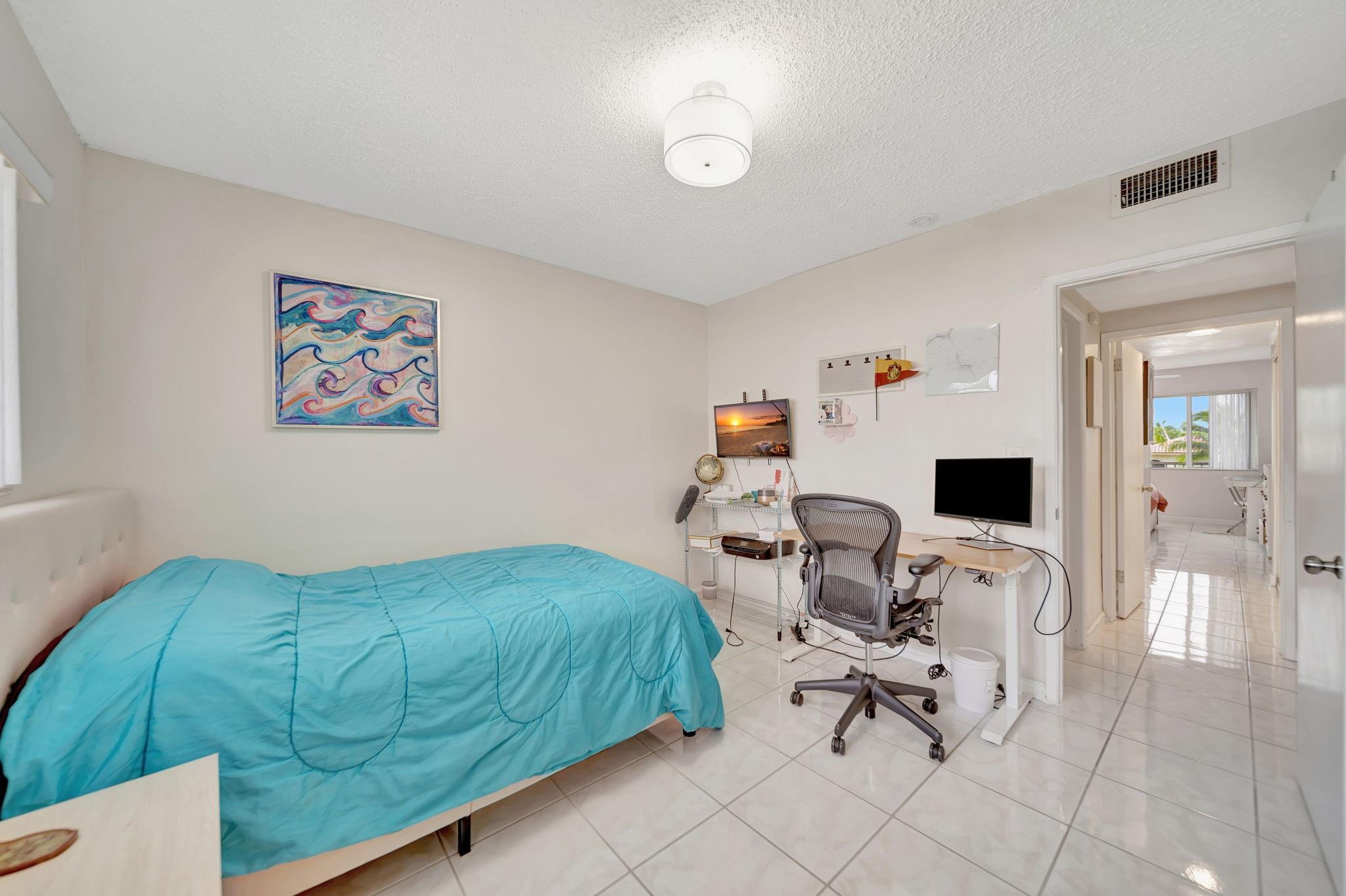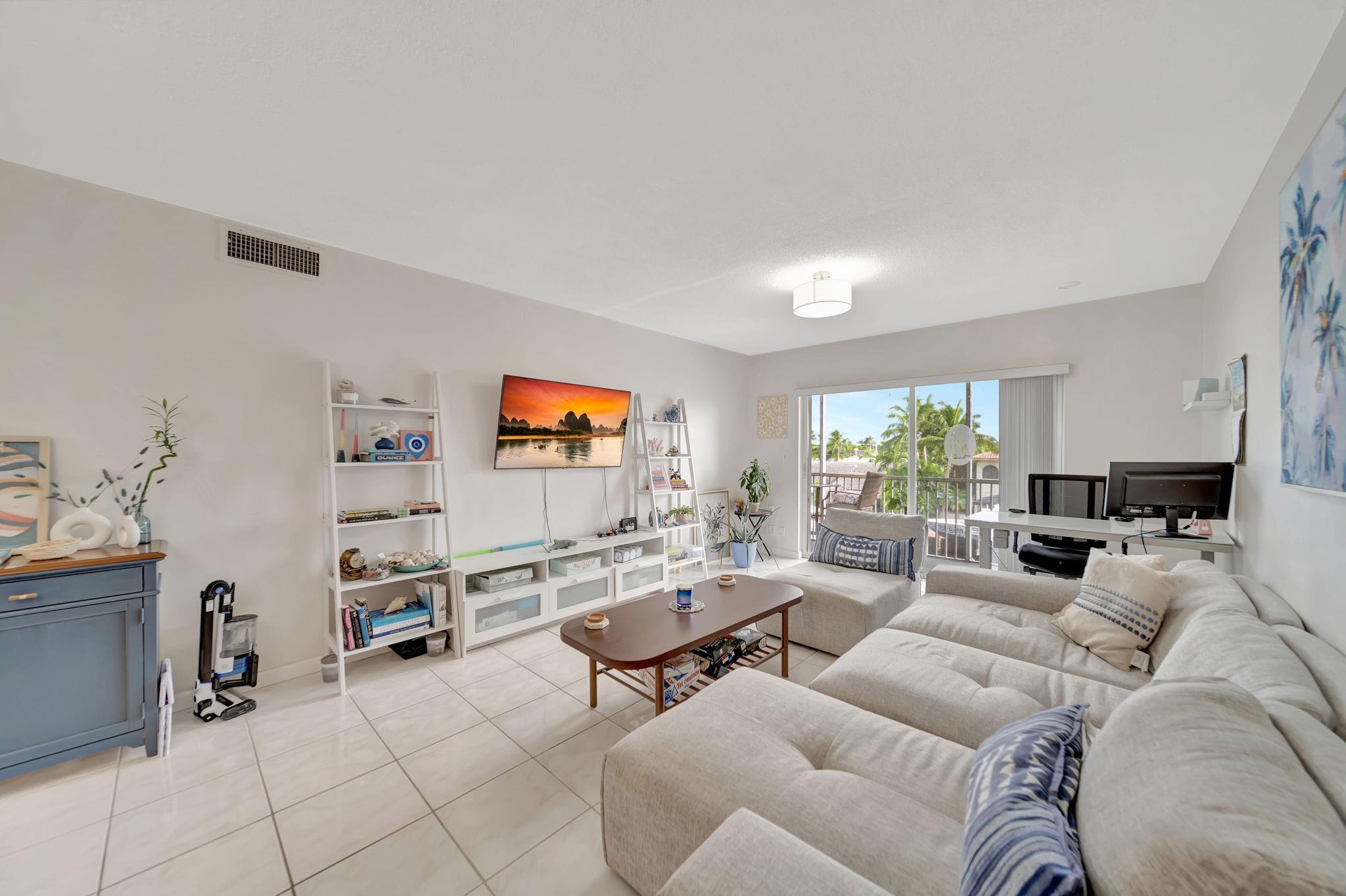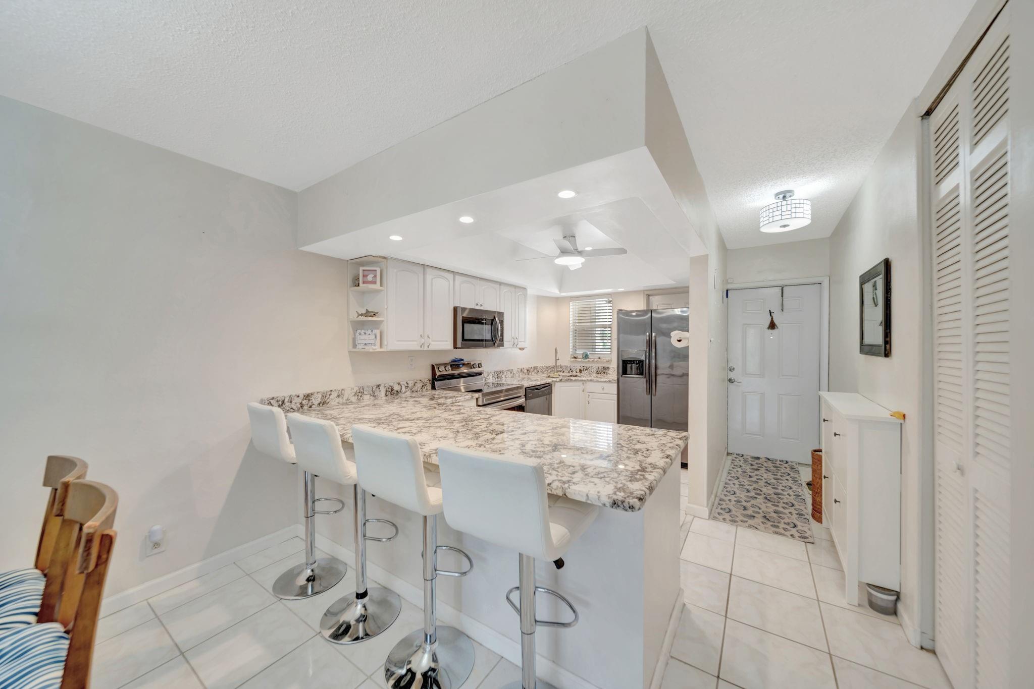 PRICE IMPROVEMENT. This exceptional condo offers 2 bedrooms and 2 bathrooms, featuring an ensuite primary bathroom for added privacy. Open kitchen is complete with stainless steel appliances, a granite countertop breakfast bar, and LED lighting. The living room is spacious with plenty of room for entertaining. Relax and enjoy the beautiful canal views from your 24x6 balcony. Tons of closet space!! Upgrades include new hurricane shutters for sliding glass door, ceiling fans, and lighting. Water heater- 2022, Rheem AC- 2018, washer/dryer in unit- 2019, dishwasher-2024. Building amenities include waterfront, dock, pool, BBQ area, laundry, and elevator. Storage unit is also down the hall. Dock slip available to hold up to a 32' boat. NO HOA INCREASE 2025. PETS- CATS ONLY. Annual lease only