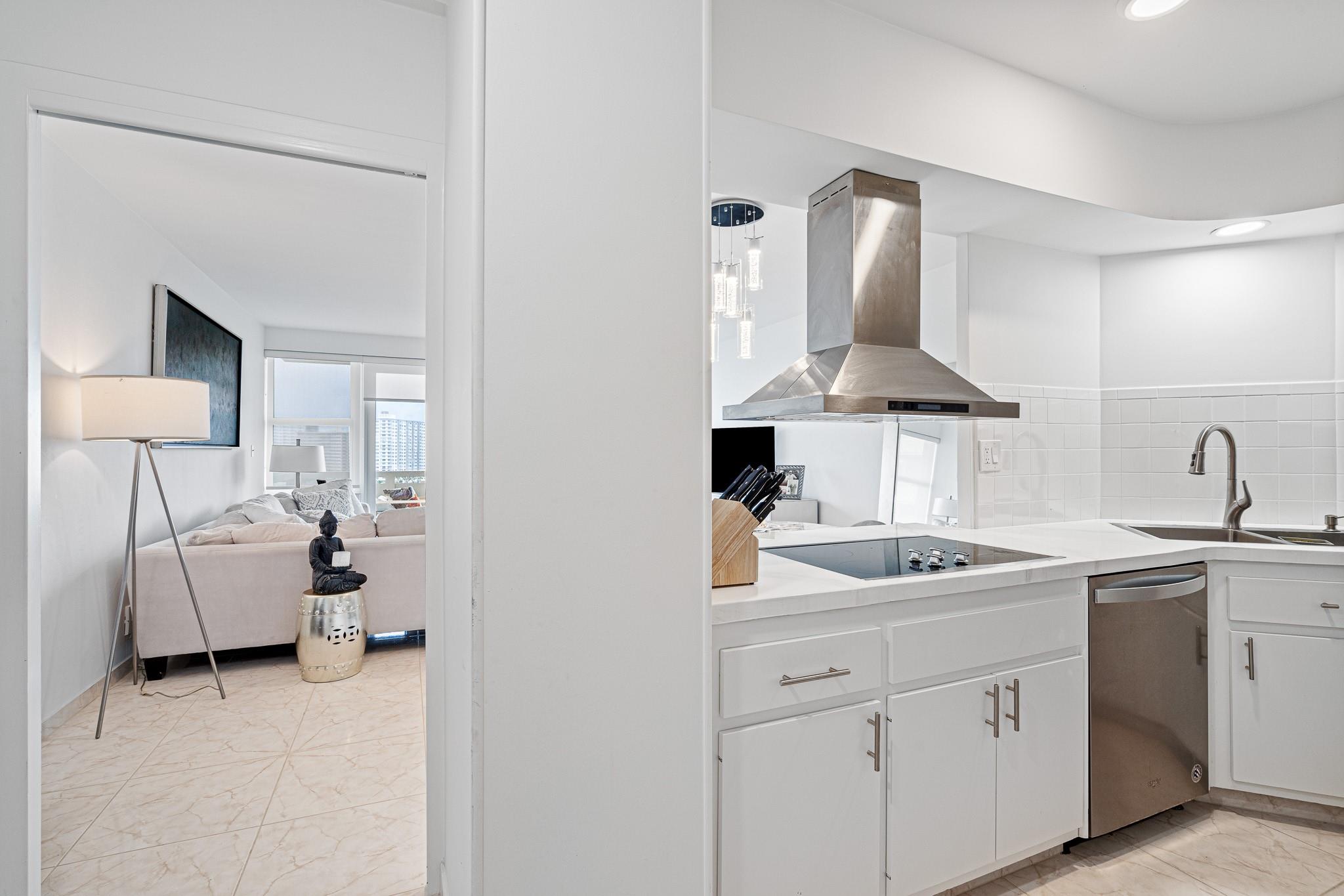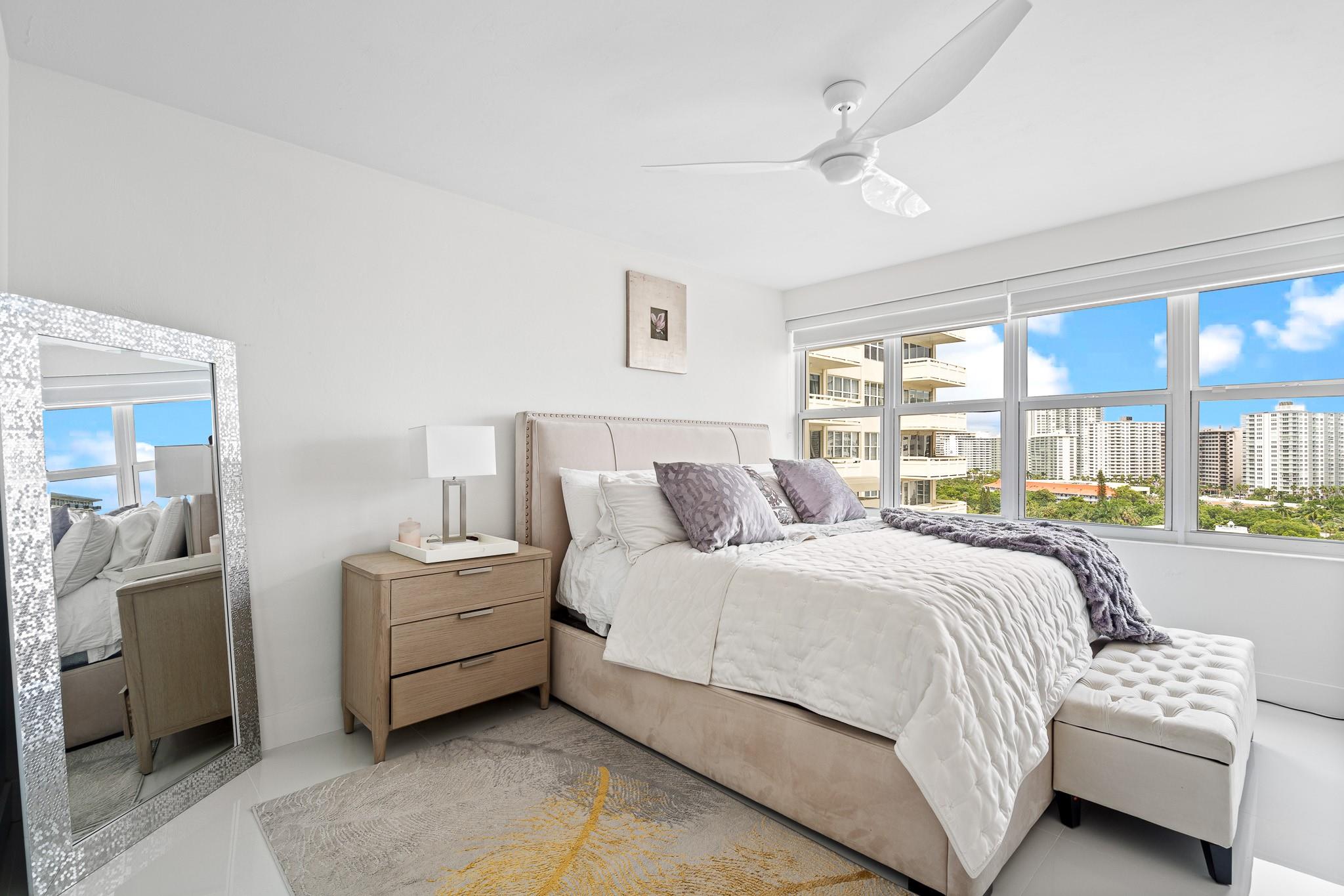 MOTIVATED SELLER! VIDEO TOUR LINK! BUILDING IS FINANCIALLY SECURE - NO UPCOMING ASSESSMENTS BEING DISCUSSED! Beautifully updated 2 bed 2 bath with gorgeous views of city & ocean from every room. Tastefully updated eat in kitchen with stainless appliances has been opened to the living / dining area. Bathrooms renovated with porcelain tiles throughout, recessed lighting & new vanities. Spacious master bedroom has a vanity area & large custom closets including a walk in. Second bedroom is bright & airy. Relax on the balcony with the daily stunning sunrises. Building is in pristine condition with countless amenities including a gorgeous pool on the Intracoastal. Near shopping, dining & the beach. One buyer age 55 or older. No leasing. MAINTENANCE FEE INCLUDES CABLE AND INTERNET!