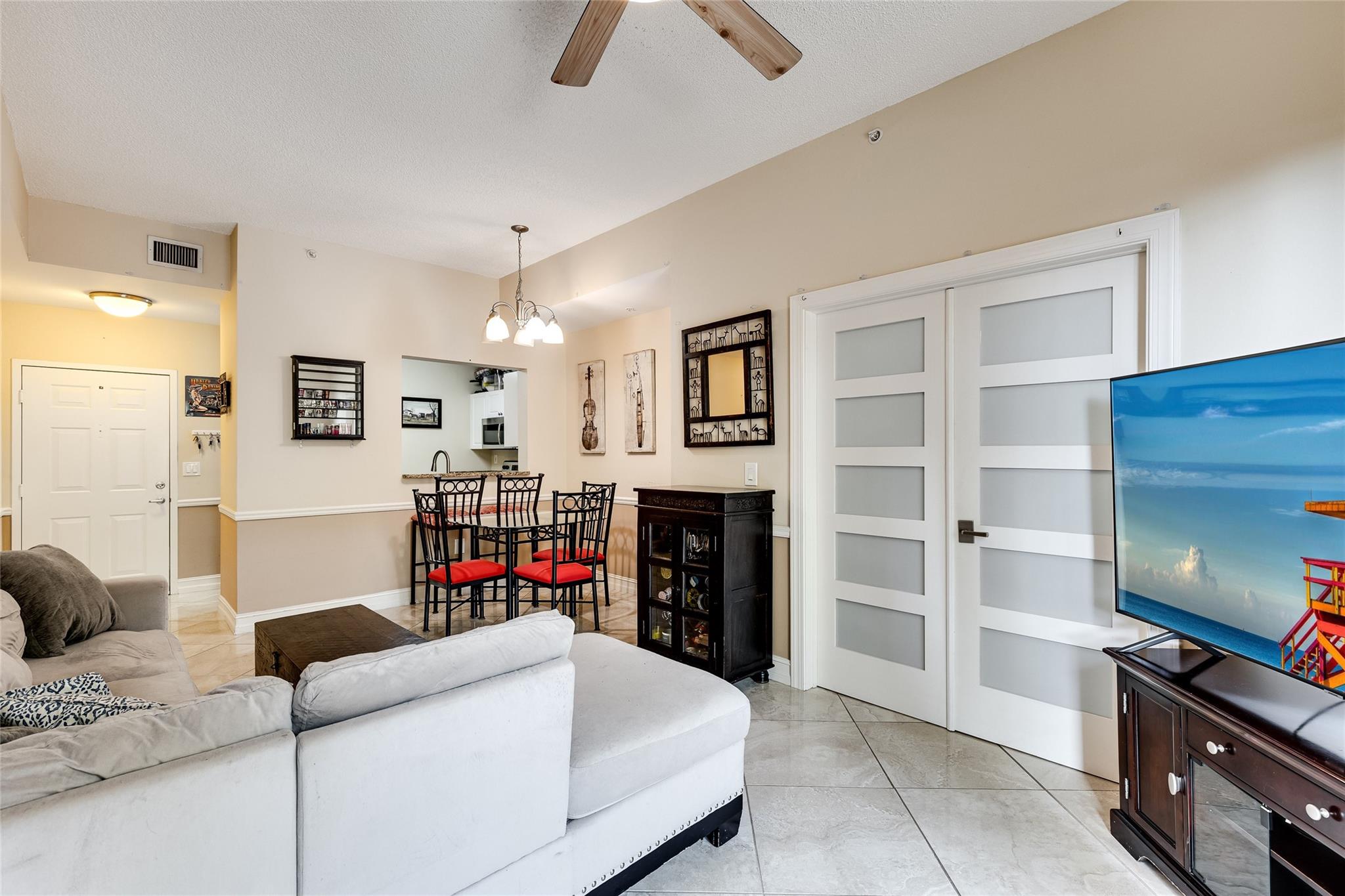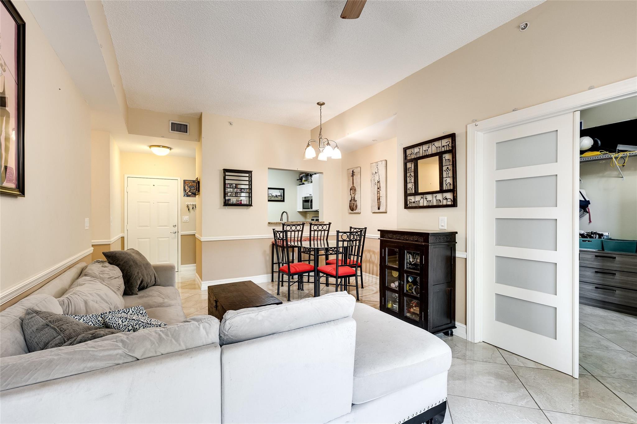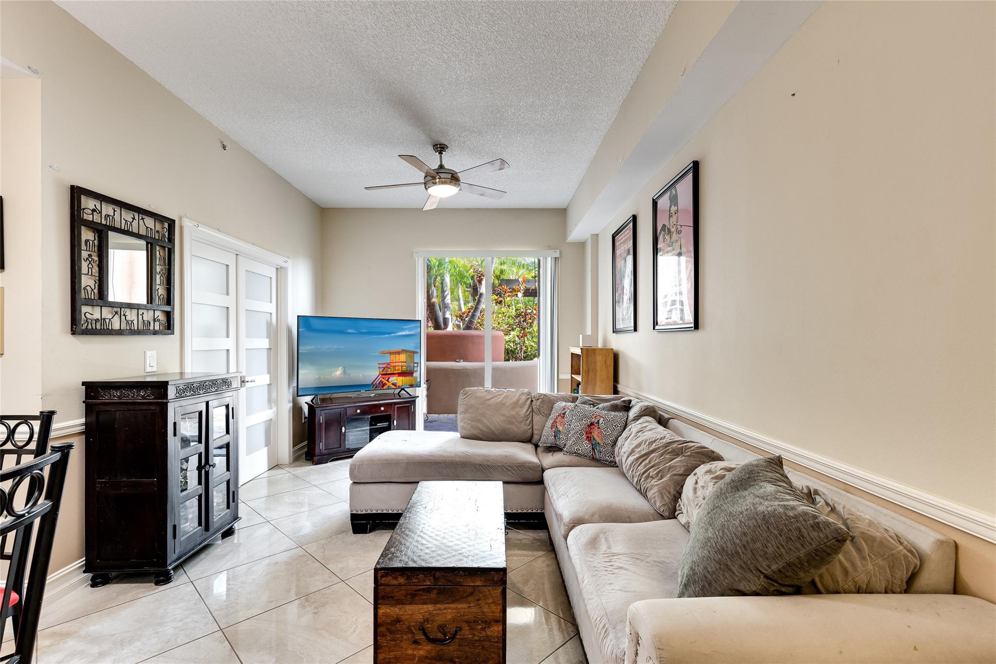 Rare 1 bedroom with den + 1 bath unfurnished condo at Las Olas By The River. Upgraded hurricane impact glass (unlike most others). Plenty of storage. Oversized private patio opens up to amenity/pool deck. Upgraded glossy tile flooring. Spacious kitchen w/ stainless steel appliances, granite countertops, bar. Den is large enough for second bedroom, home office, storage or more. Furniture to be removed prior to closing. Stacked washer/dryer. Expansive walk-in master closet. Walk 3 min to Riverwalk / 10 min to Las Olas dining, shops, nightlife. Includes 1 assigned parking (addl available), sewer, trash, pest control, resort style amenities: Pool w/ cabanas, jacuzzi, BBQ grills, fitness room, business center, library, billiard room, club room, front desk concierge/security. Investor friendly.