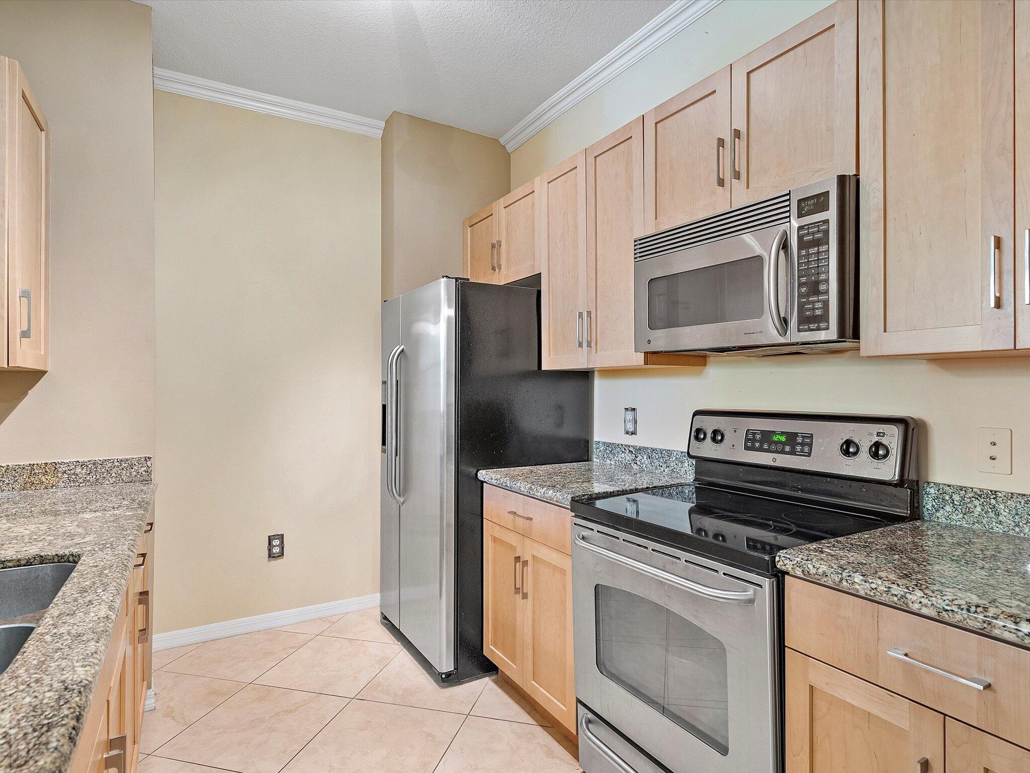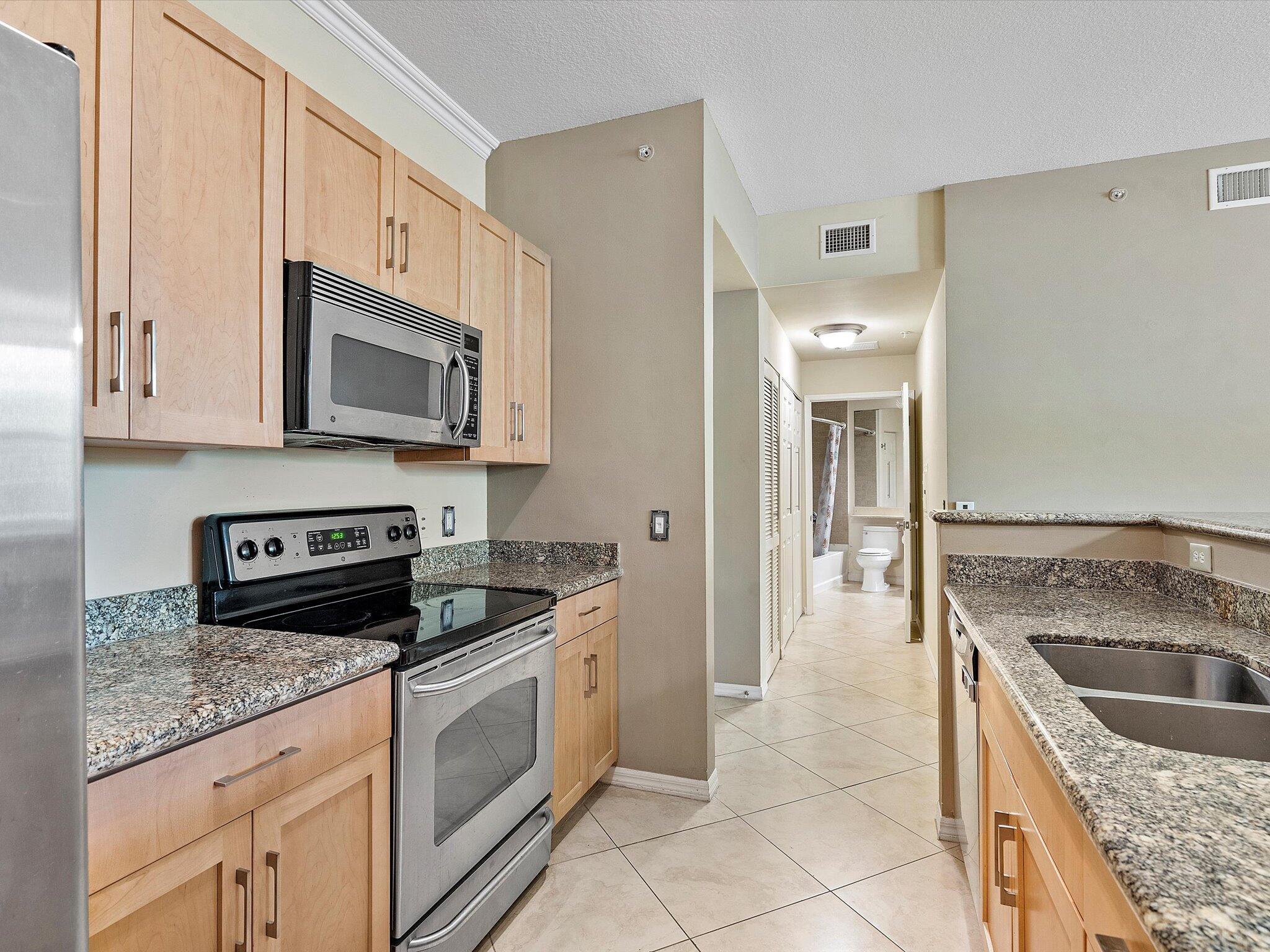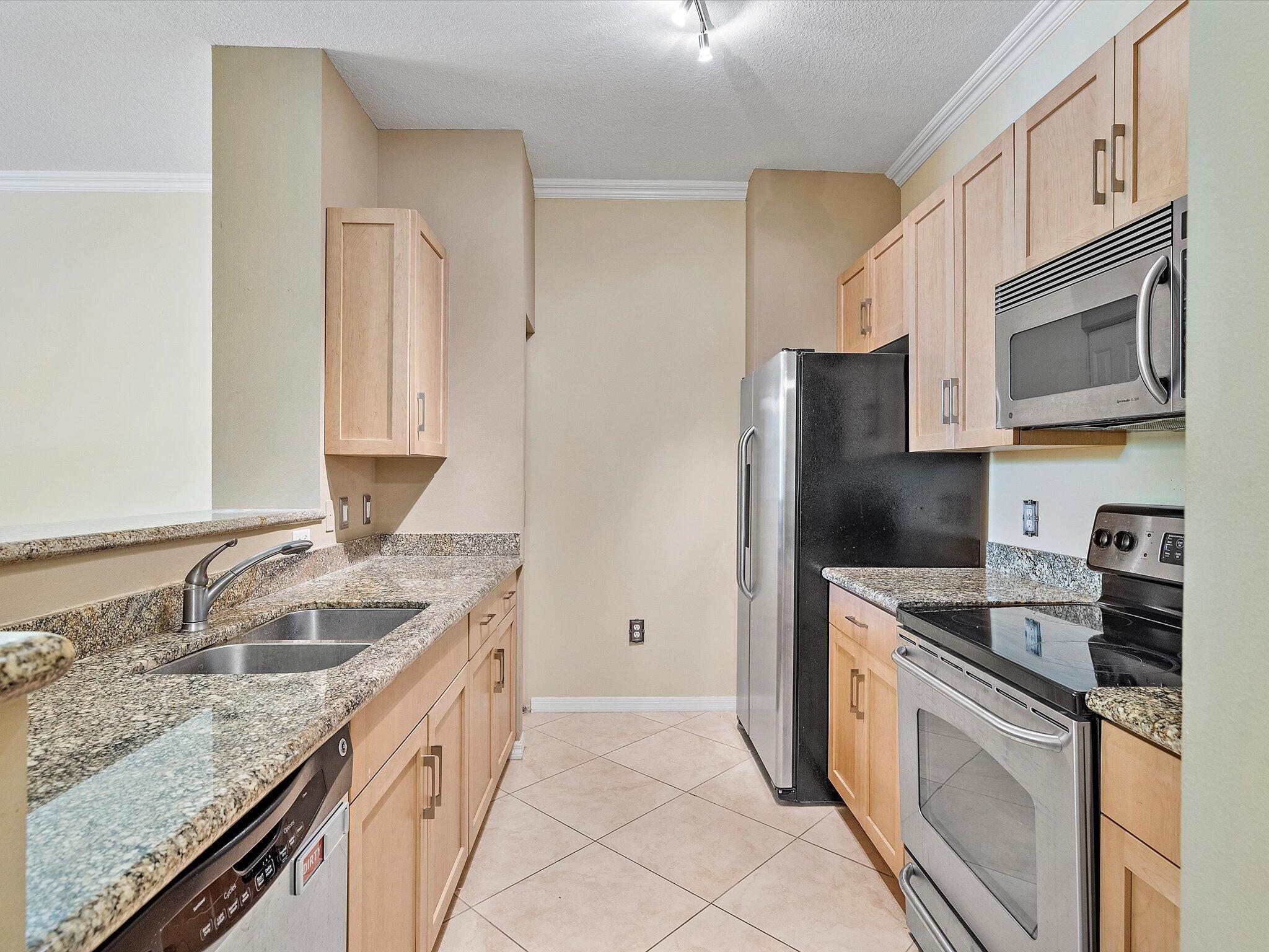 Discover the epitome of urban chic at this stunning 1 bed, 1 bath Lauderdale One Condo. Boasting the largest one-bedroom floor plan in the building, this residence showcases updated LVP flooring in the Primary Bedroom and a renovated Primary Bathroom with elegant brown tile. The living areas feature designer-upgraded porcelain tile, complemented by new contemporary wood kitchen cabinet doors. Enjoy the convenience of two deeded garage covered spots and indulge in the luxury of all-new high-end custom lighting, blinds, and hardware throughout--including exquisite crown molding. This is sophisticated living at its finest. Enjoy being less than 10 minutes away from the vibrant Lauderdale-by-the-Sea and Pompano Beach providing easy access to the beach, dining, and entertainment.