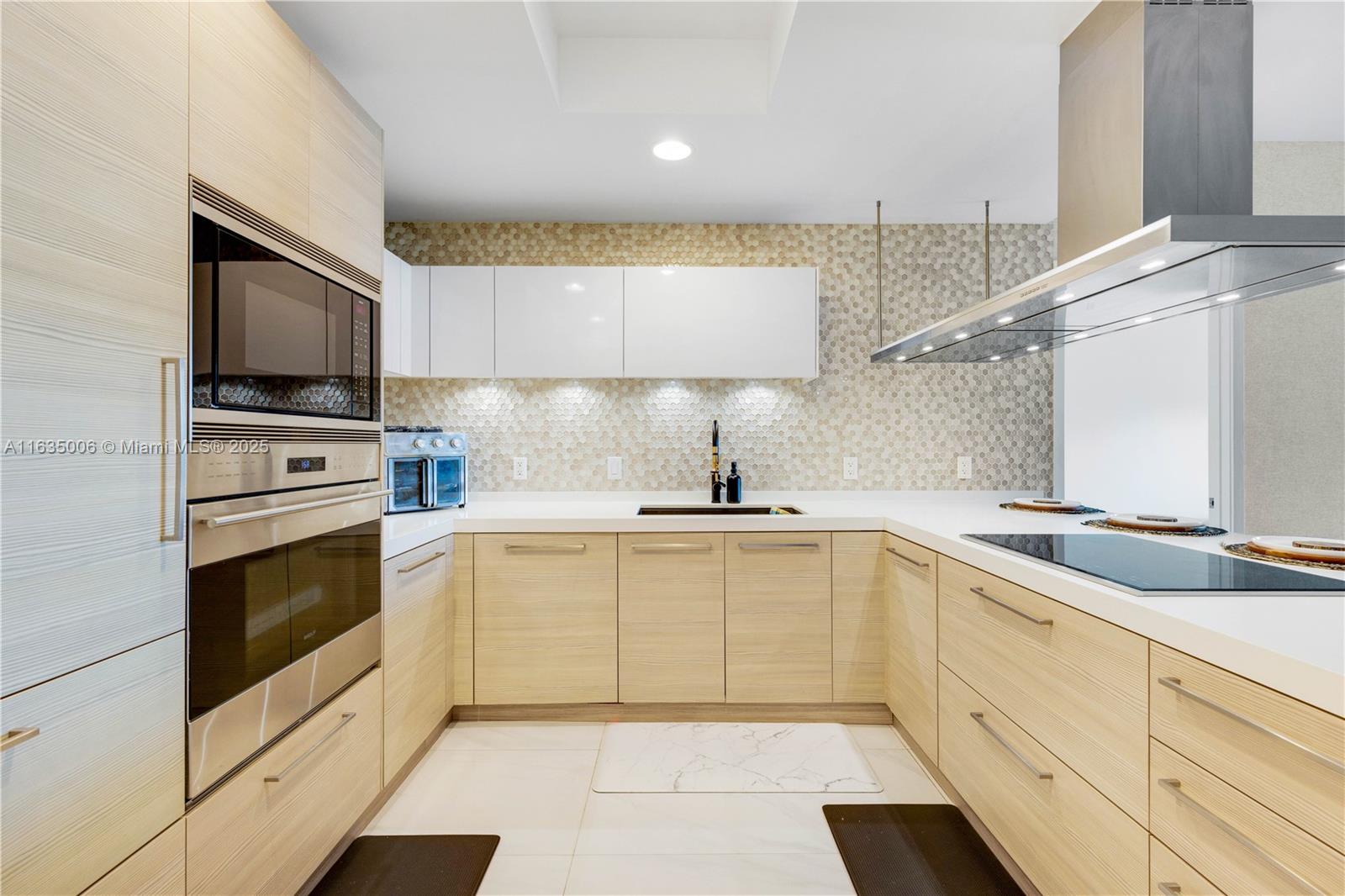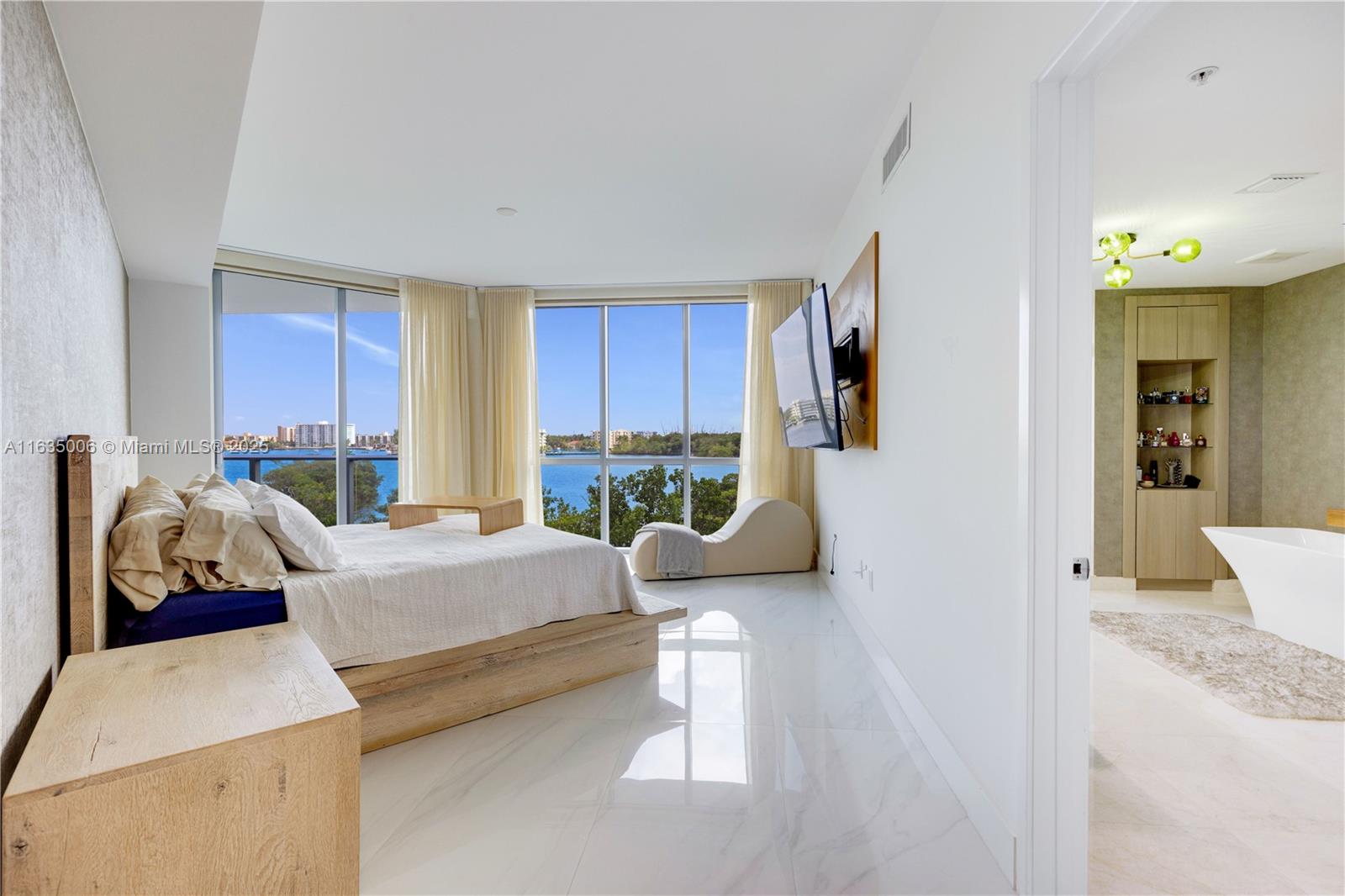 Welcome to luxury at its finest, amazing 2 bedroom 3 bathroom unit with den that can be converted into an extra bedroom. Custom marble wall unit with built in bar, fireplace, wine cooler and matching marble throughout. Walk in closet with custom back paneling and shelving to avoid wall scuffs. Marble bathroom with custom waterfall tub, and automated Axent toilet. Wolf appliances, subzero fridge, motorized blackout blinds and shades throughout. All furniture included. LG OLED 84' TV, full Sonos sound system, lovesac rearrangeable couches, RH Bedroom set/mattress valued at over $20k, living room furniture valued at over $10k. Built in laundry room with custom cabinetry, extra fridge. Move in ready, just bring a toothbrush. Safe property using facial recognition. Storage unit included.