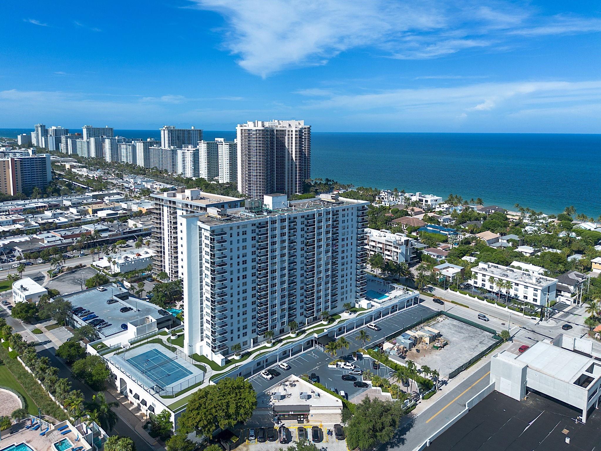 Discover luxurious living at The Berkley South in Fort Lauderdale with this beautifully appointed 1 bed, 1.5 bath residence. From your living room, bedroom, and glass balcony, soak in breathtaking ocean and sunset views. The home boasts crown moulding, tile flooring, a modern kitchen with granite countertops, and hurricane impact windows and doors for your peace of mind. The master suite offers an ensuite bath, a spacious walk-in closet, and an additional closet for extra storage. Enjoy top-notch amenities, including a newly finished heated pool, pickleball/tennis courts, a gym, and more. The HOA covers internet and cable, while the building provides bike storage, a BBQ/picnic area, a clubroom, and 24-hour manned security. Perfect for those who appreciate being close to the ocean.