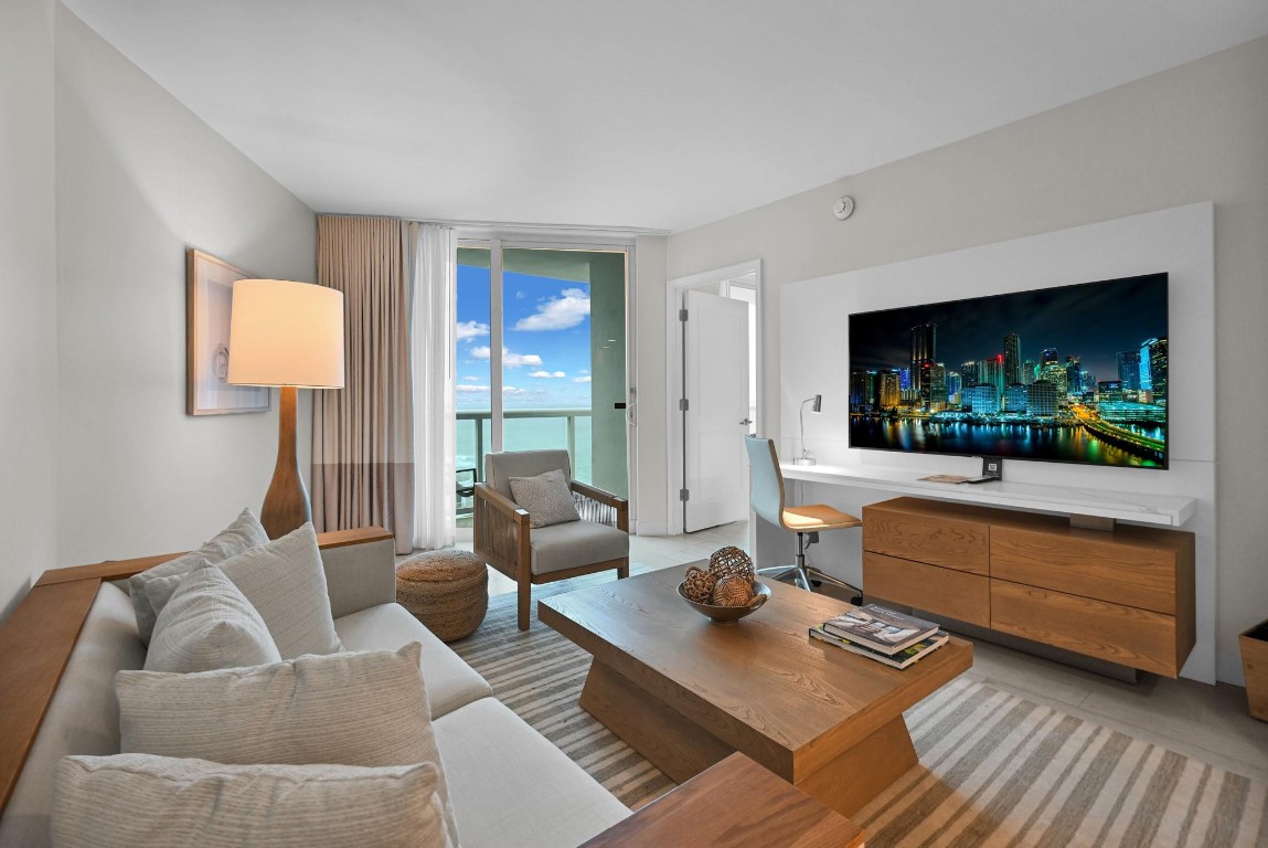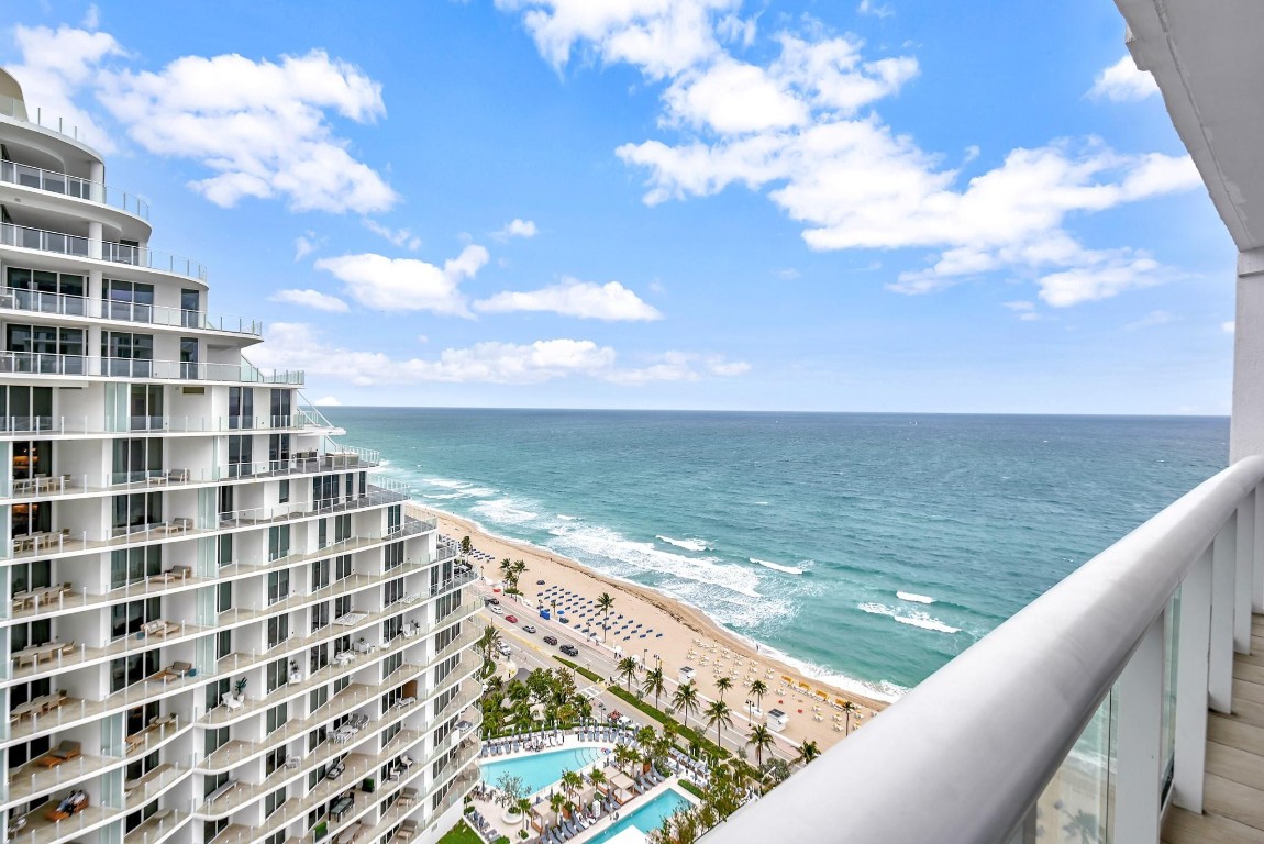Welcome to your dream beachfront retreat! This fully furnished one-bedroom, one-bath condo-hotel unit with tastefully decorated living space features high-end furnishings, creating an atmosphere of relaxation and sophistication. The bedroom is a sanctuary of tranquility, boasting a plush king-size bed for a restful night's sleep. What sets this property apart is not just the stunning interiors, but also the resort-style amenities that come with it. Take a dip in the heated pool or unwind in a hot tub as you soak in the warm Florida sunshine. The adjacent beach offers direct access to the ocean. Enjoy a range of amenities that elevate your experience, including fitness facilities, concierge services, and convenient access to nearby dining and entertainment options.