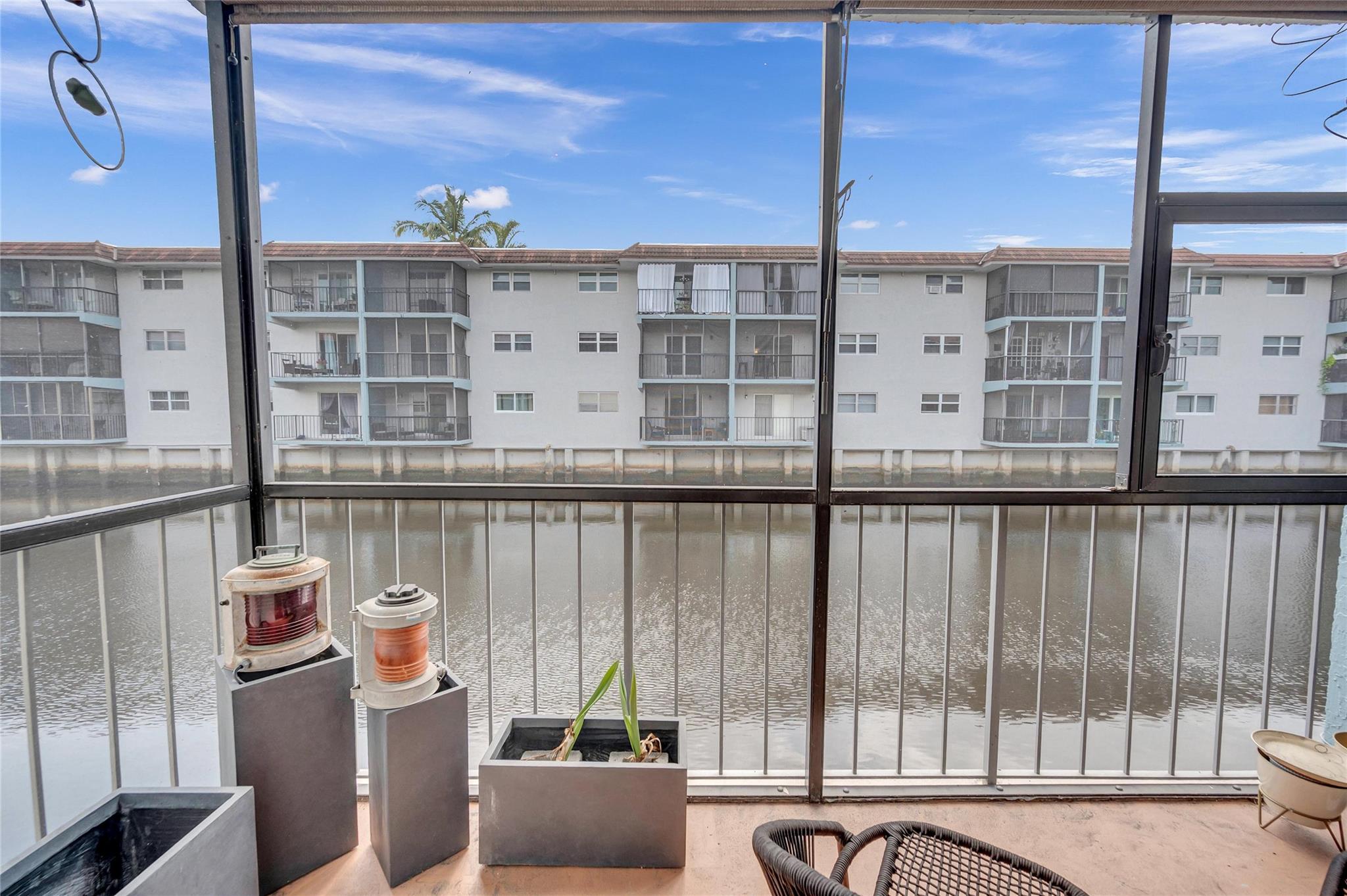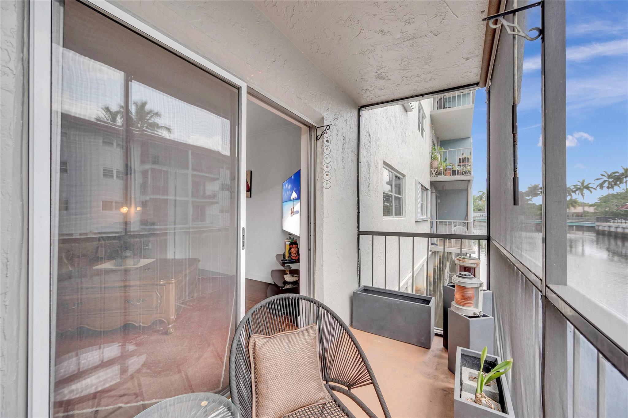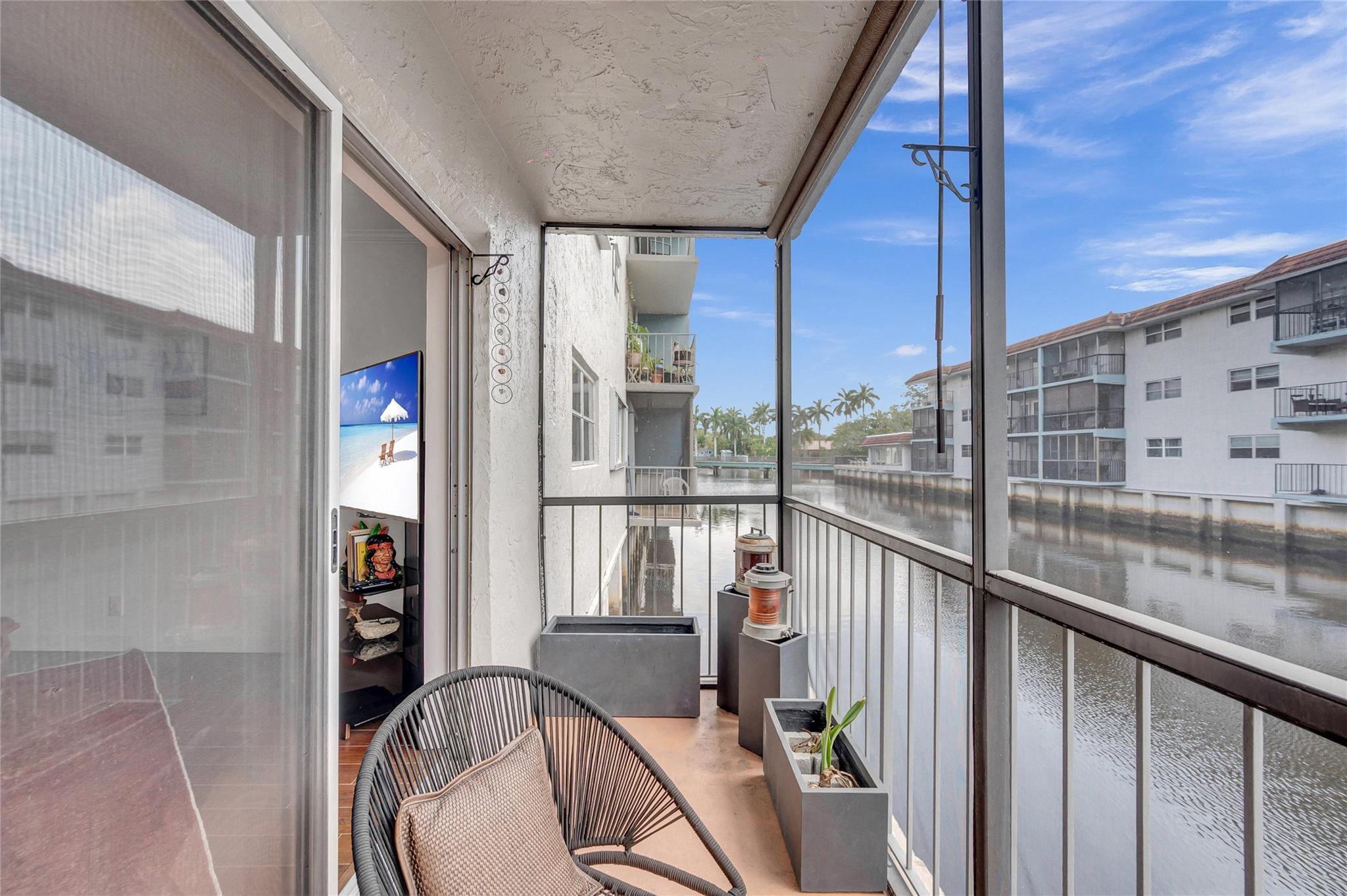 Hidden Harbor is a hidden gem!! This charming updated 2 bedroom, 2 bath on the first floor floats over the South Fork of the Middle River. The canal view from the screened in balcony makes you feels if you are on a boat. The updated kitchen has white Shaker cabinets and granite counters and has been opened up to the dining/living area for entertaining. Spacious walk-in closets in both bedrooms. Recently renovated heated waterfront community pool, gym, sauna and club room. Gated community. Convenient location near Wilton Drive, Downtown Fort Lauderdale and the beach. Parking for 2 cars.
