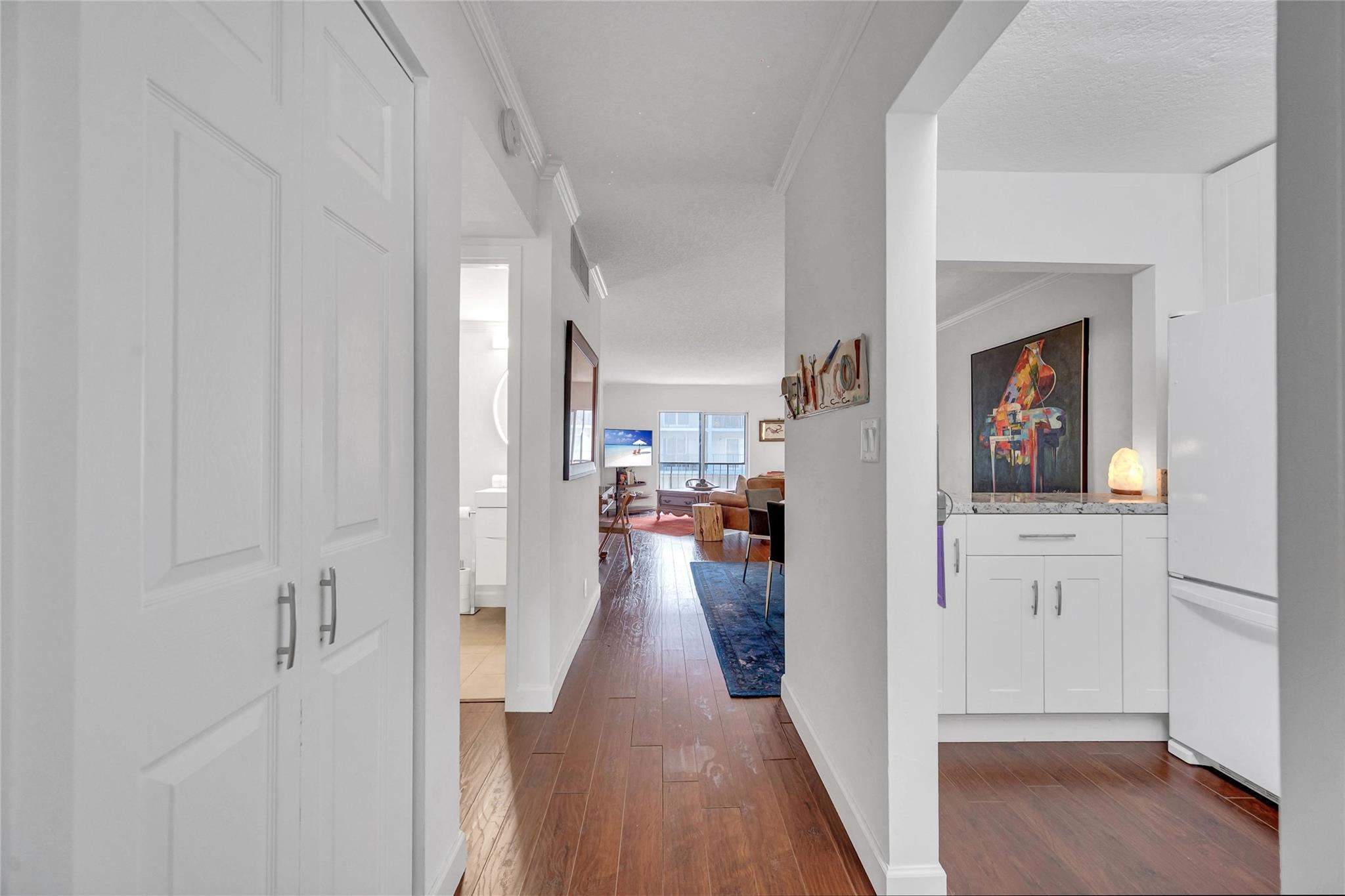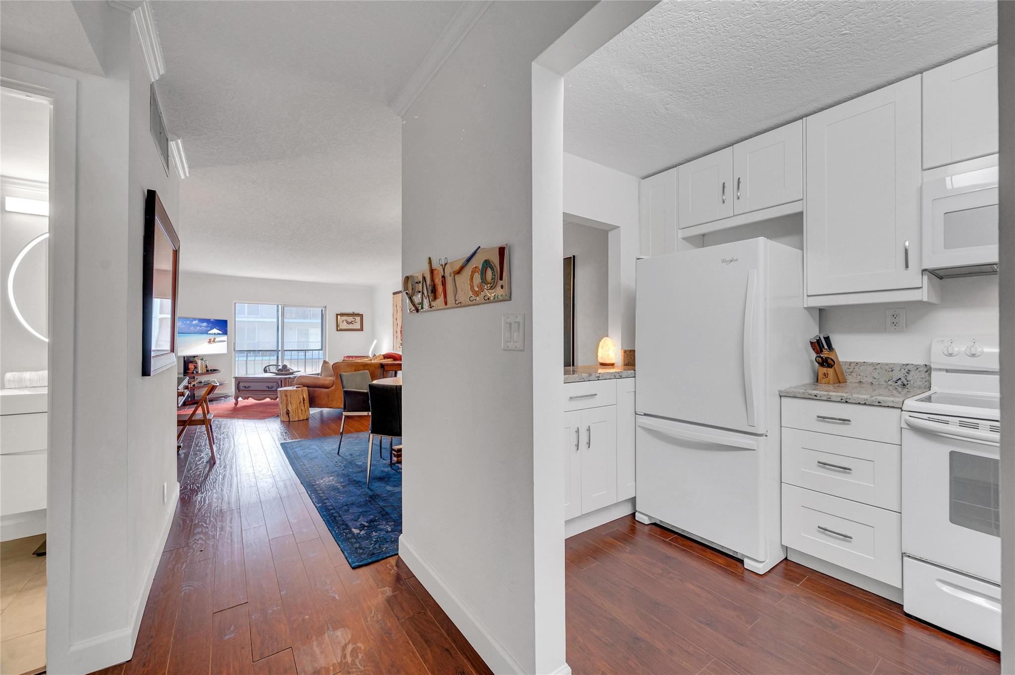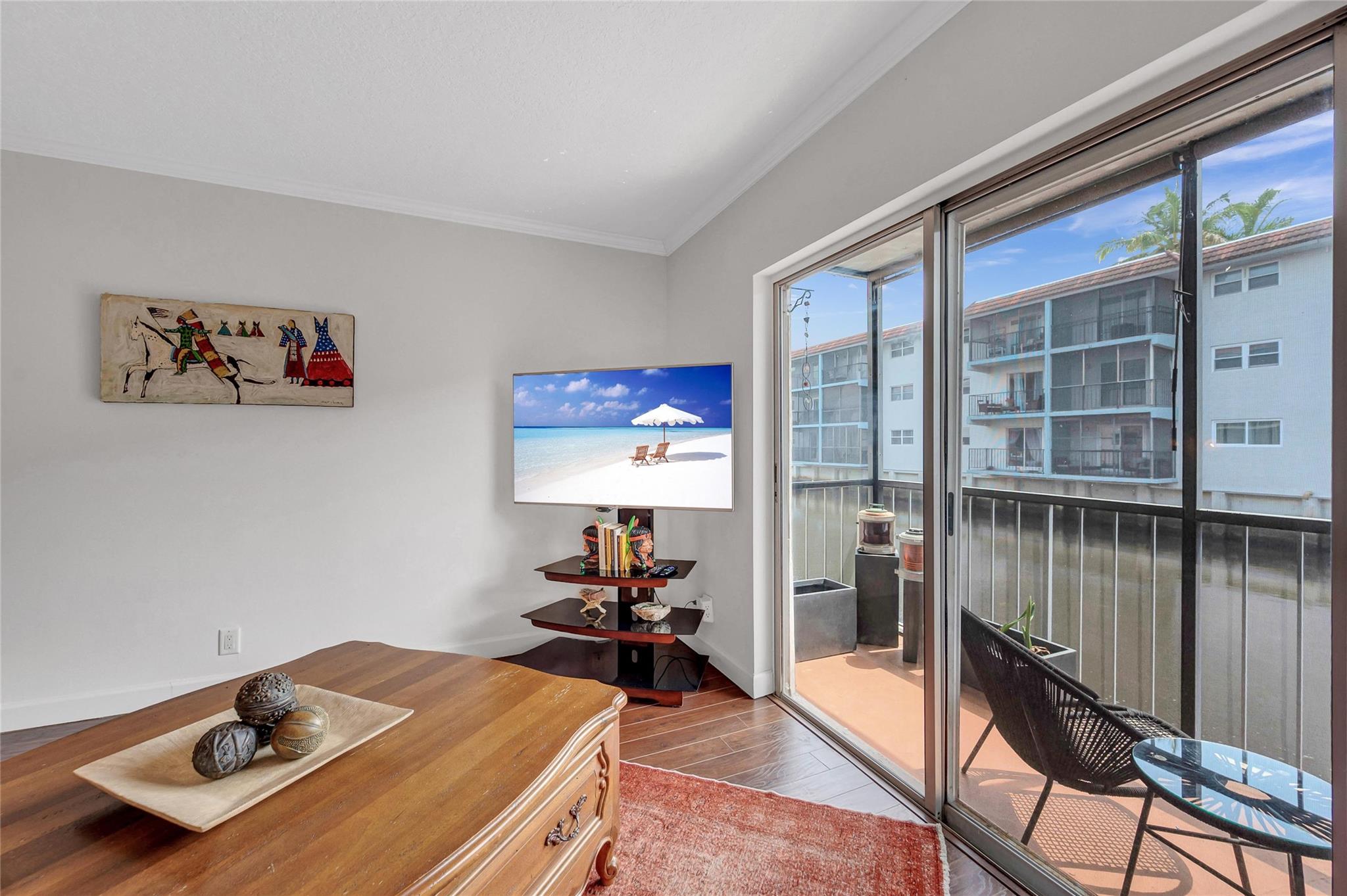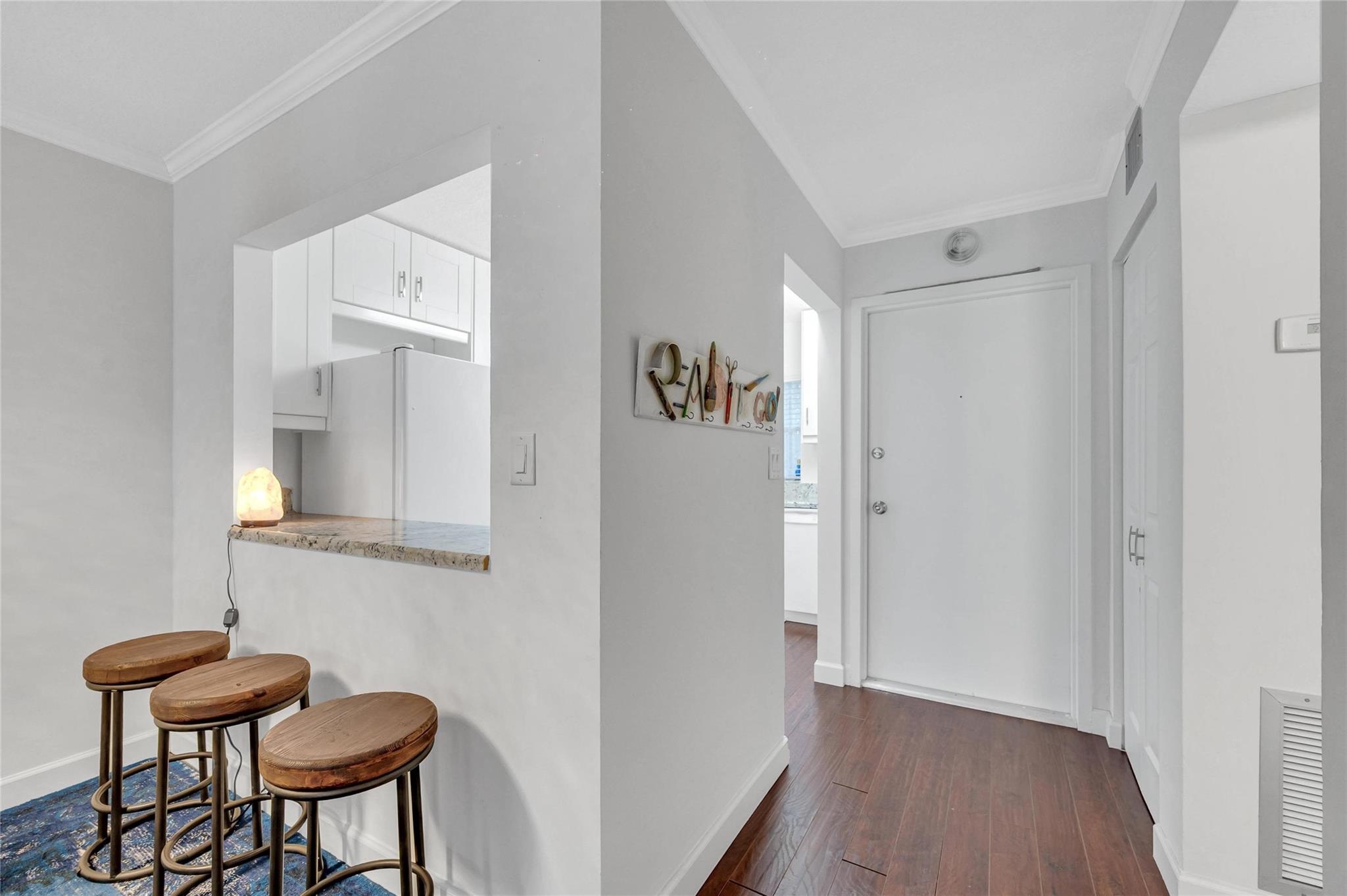 Hidden Harbor is a hidden gem!! This charming updated 2 bedroom, 2 bath on the first floor floats over the South Fork of the Middle River. The canal view from the screened in balcony makes you feels if you are on a boat. The updated kitchen has white Shaker cabinets and granite counters and has been opened up to the dining/living area for entertaining. Spacious walk-in closets in both bedrooms. Recently renovated heated waterfront community pool, gym, sauna and club room. Gated community. Convenient location near Wilton Drive, Downtown Fort Lauderdale and the beach. Parking for 2 cars.