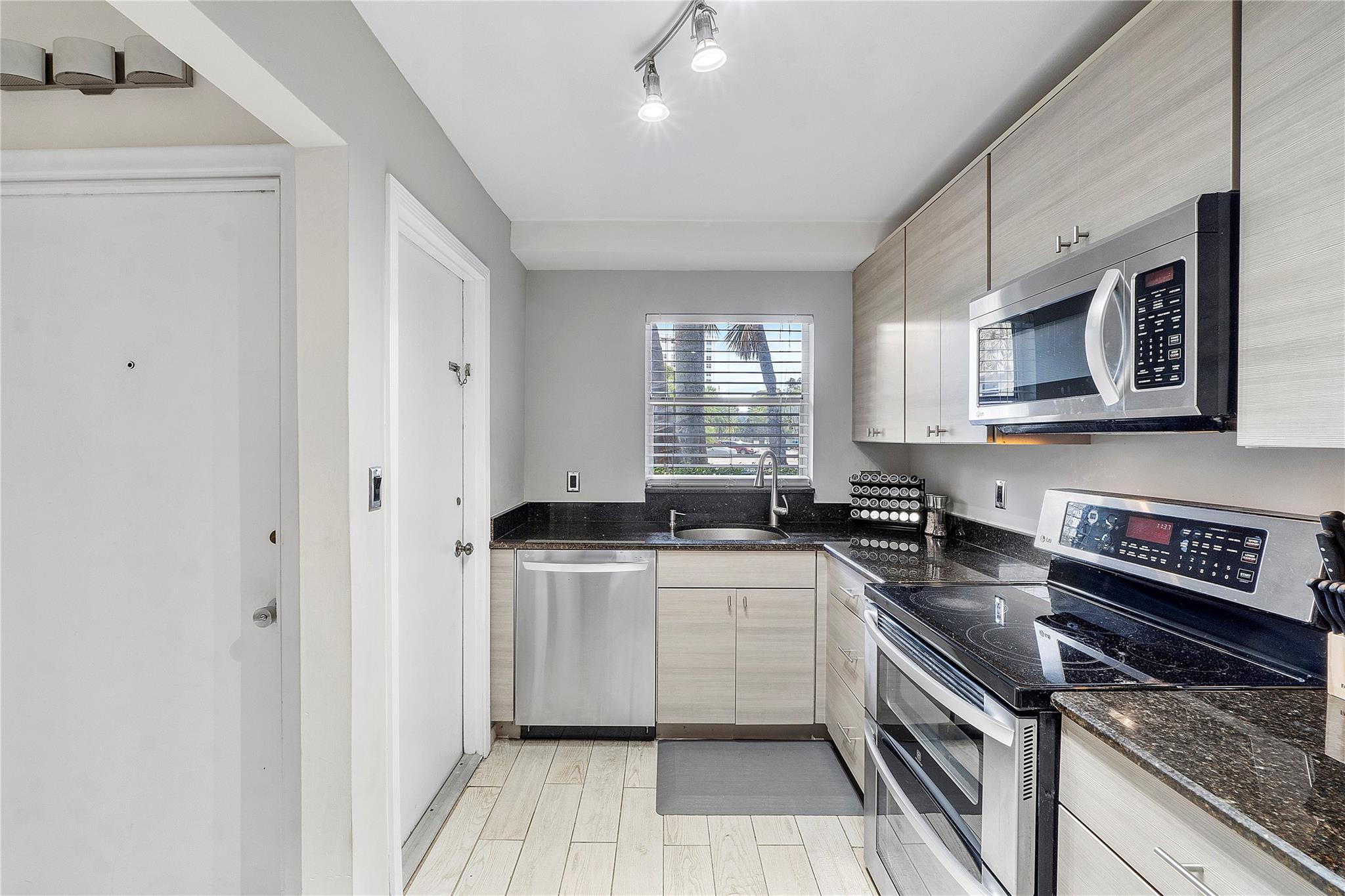 50-year recertification has been completed - Gated Waterfront 2BR/2BA condo on Middle River in Fort Lauderdale just moments away from Wilton Drive and Las Olas. Updated kitchen, new paint throughout the house, beautiful canal views from a private balcony. The Hidden Harbour community amenities include: Security Gates, Elevators, Fitness Room, Sauna, Pool, Storage Unit, Laundry room, Assigned parking and guest parking.
