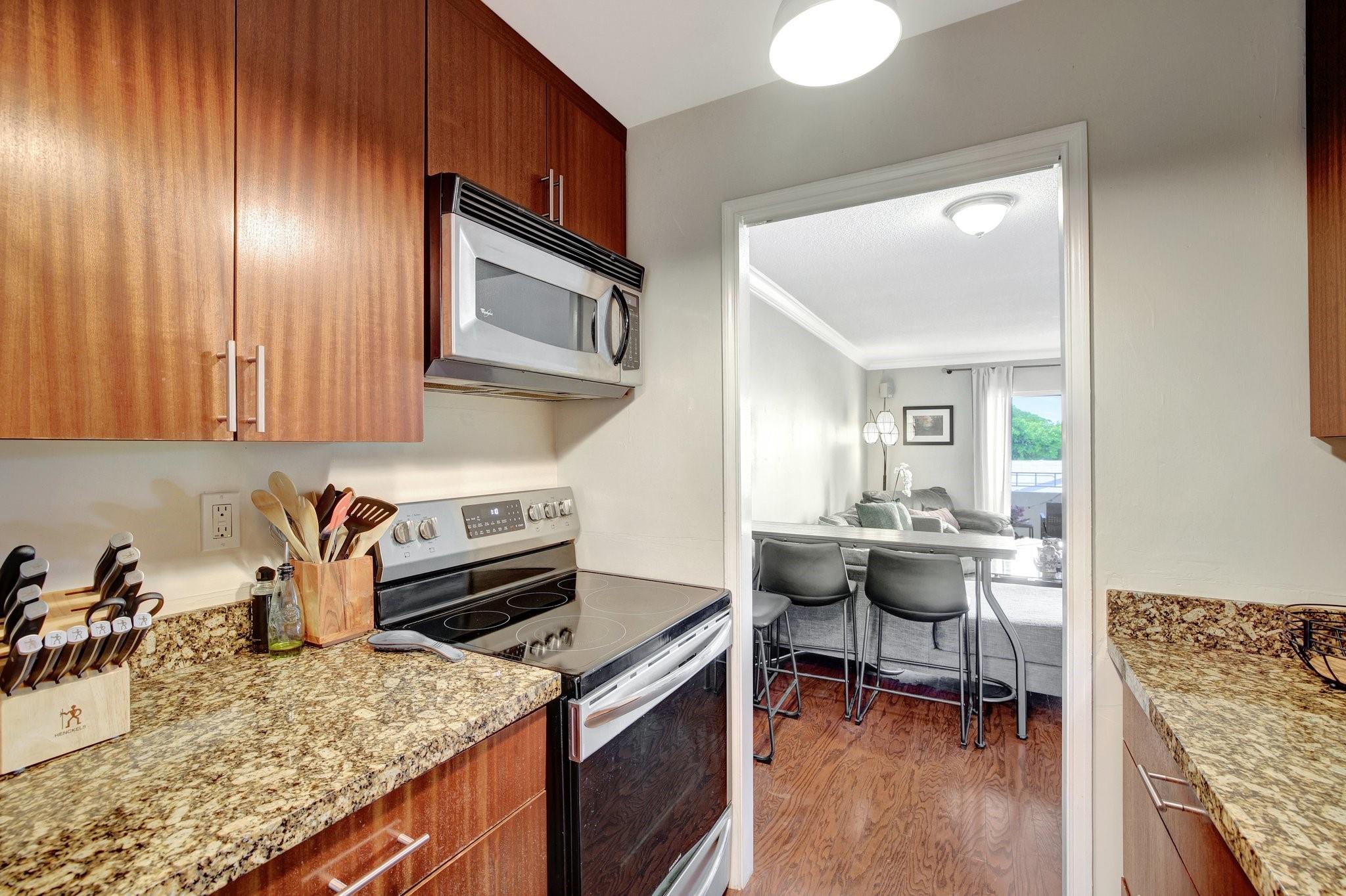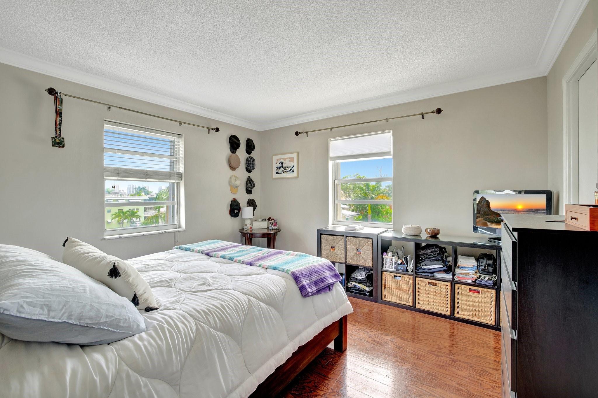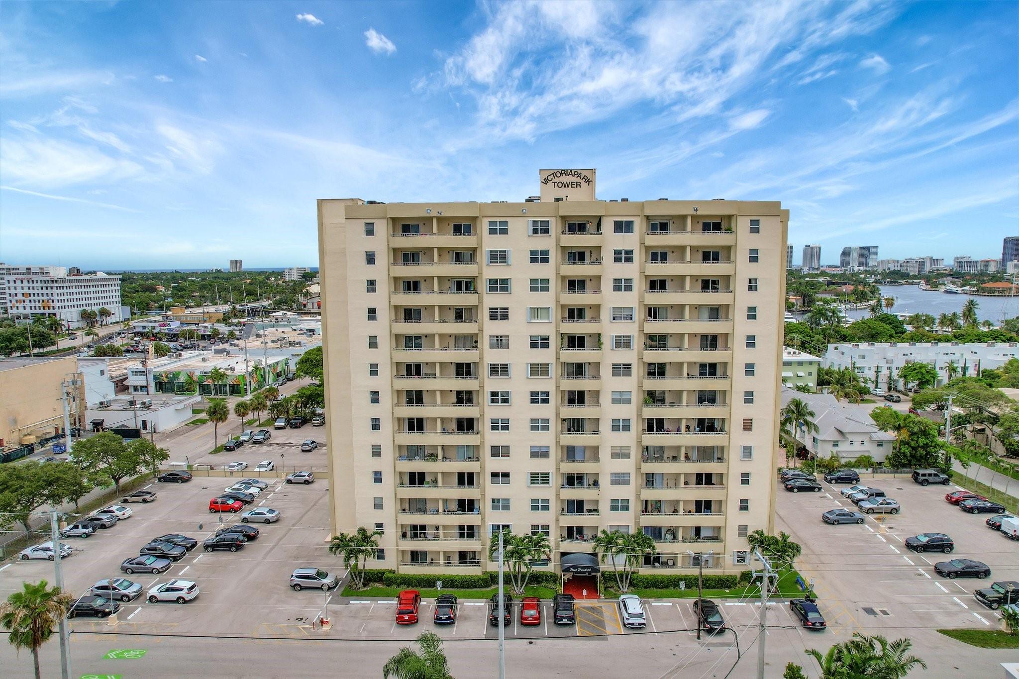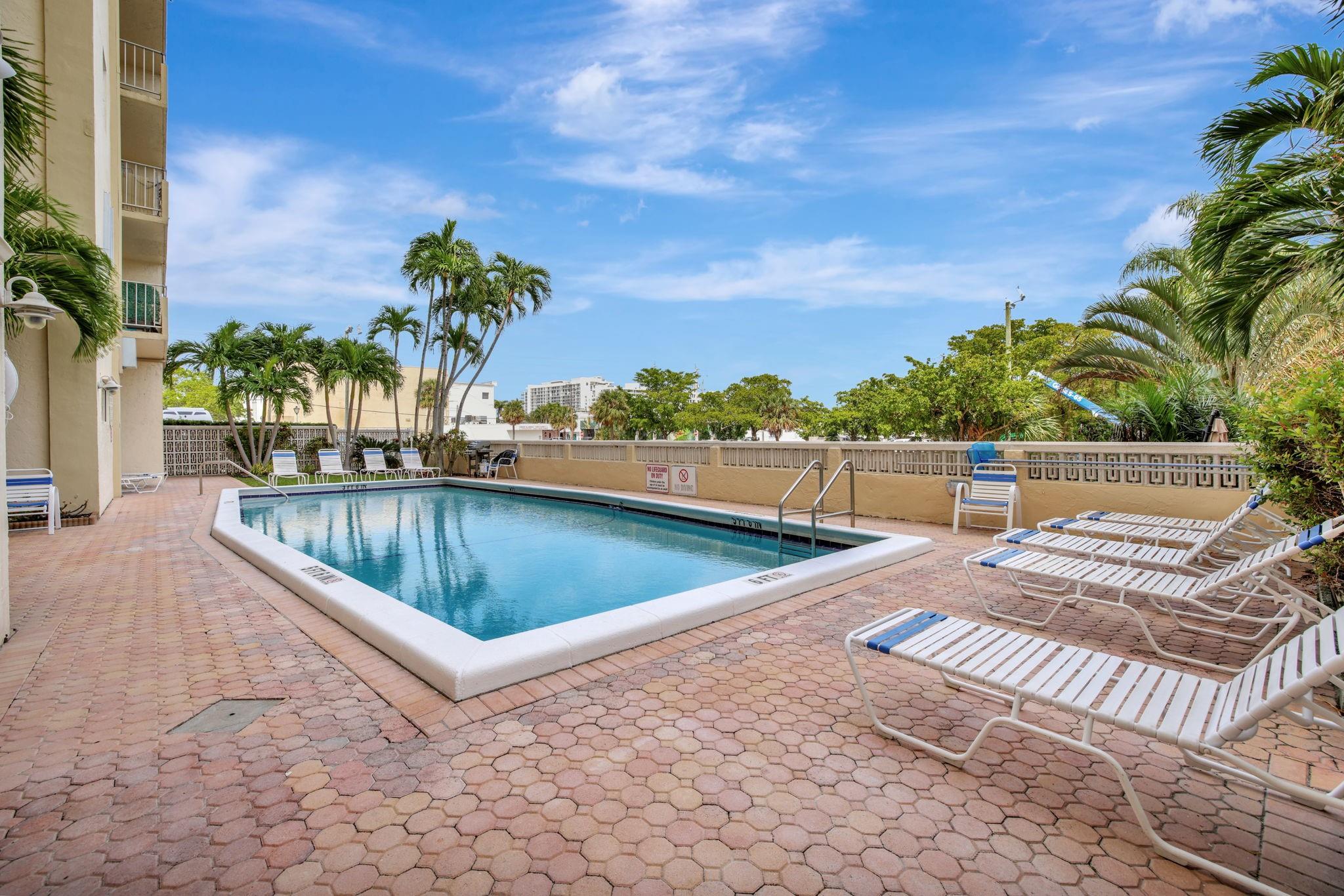 Spacious, affordable & beautifully upgraded 2bed/1bath corner unit in desirable Victoria Park Towers. This bright southeast facing unit is bathed in natural light. Cooks kitchen with granite counters, stainless appliances & wood cabinets. Hardwood floors throughout. Balcony. Tons of storage in the unit as well as large storage closet in hallway. Enjoy wonderful sunrises & dining on your east facing balcony overlooking the sparkling heated pool. Assigned parking space right at front entrance! There is even a long term tenant in place through April 2025! Shared Laundry. No Rec Lease! Everything you could want is nearby--Beach, Galleria, Las Olas, Starbucks, Publix & Trader Joes, Gateway Theater, Restaurants. 15 minutes to airport. A dream come true! Sorry, no pets.