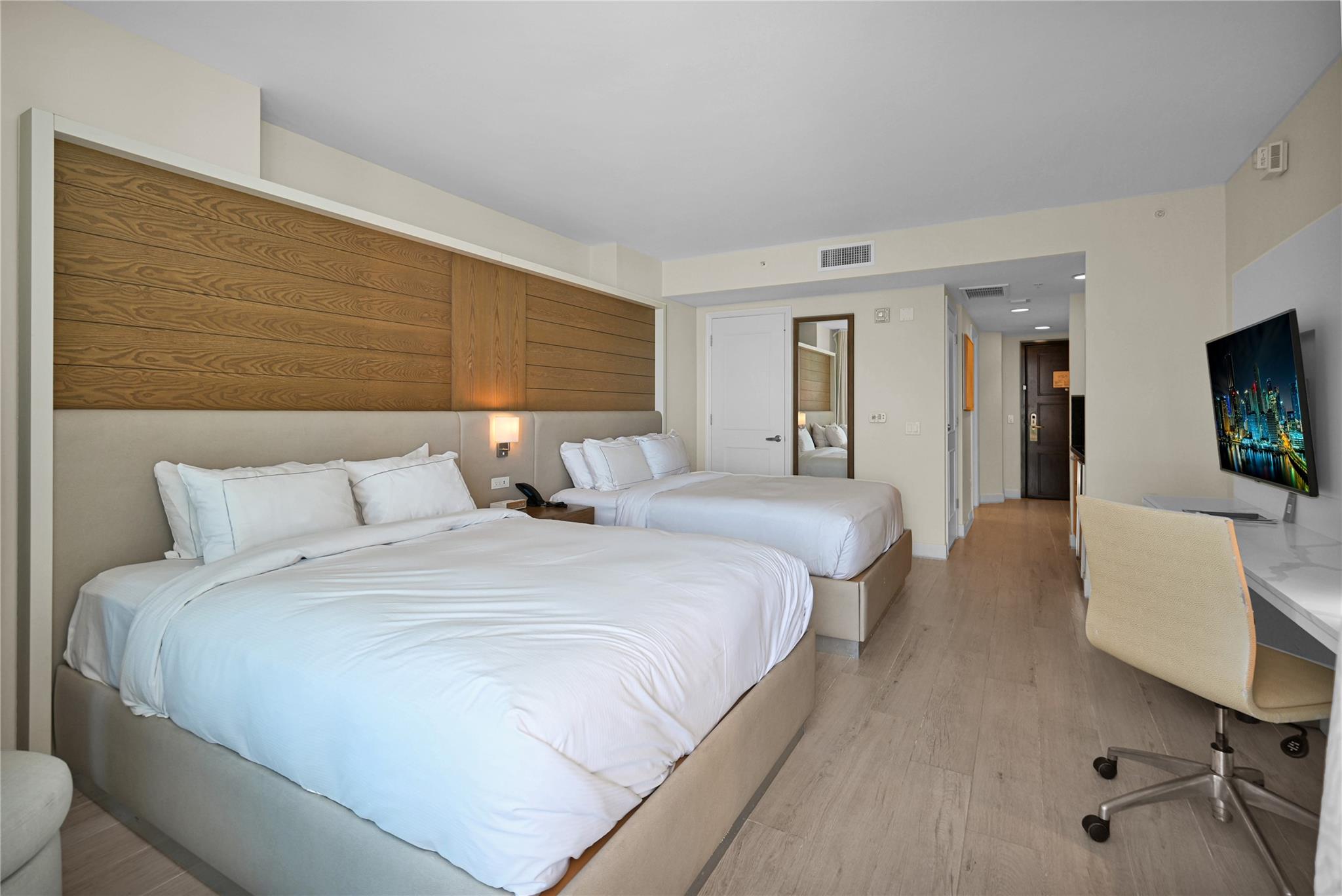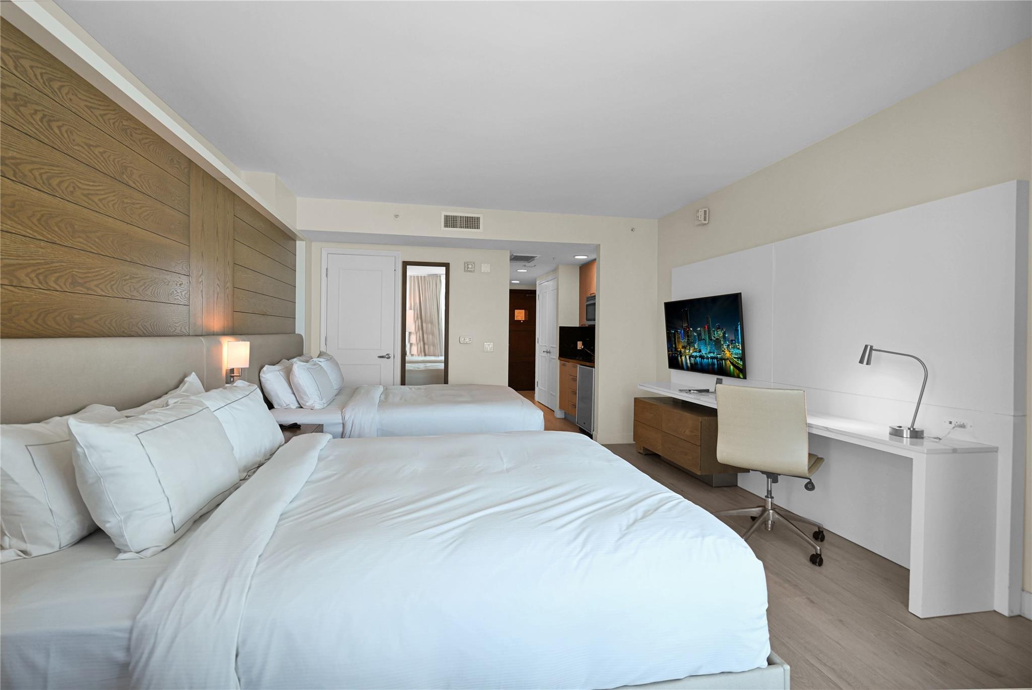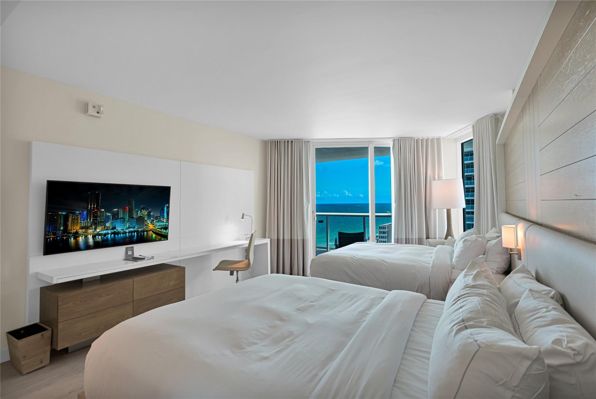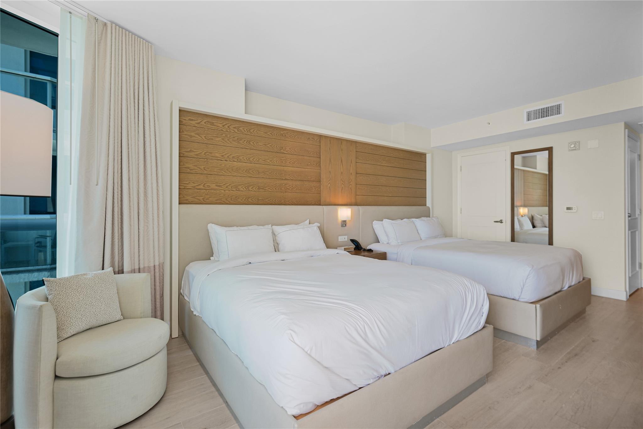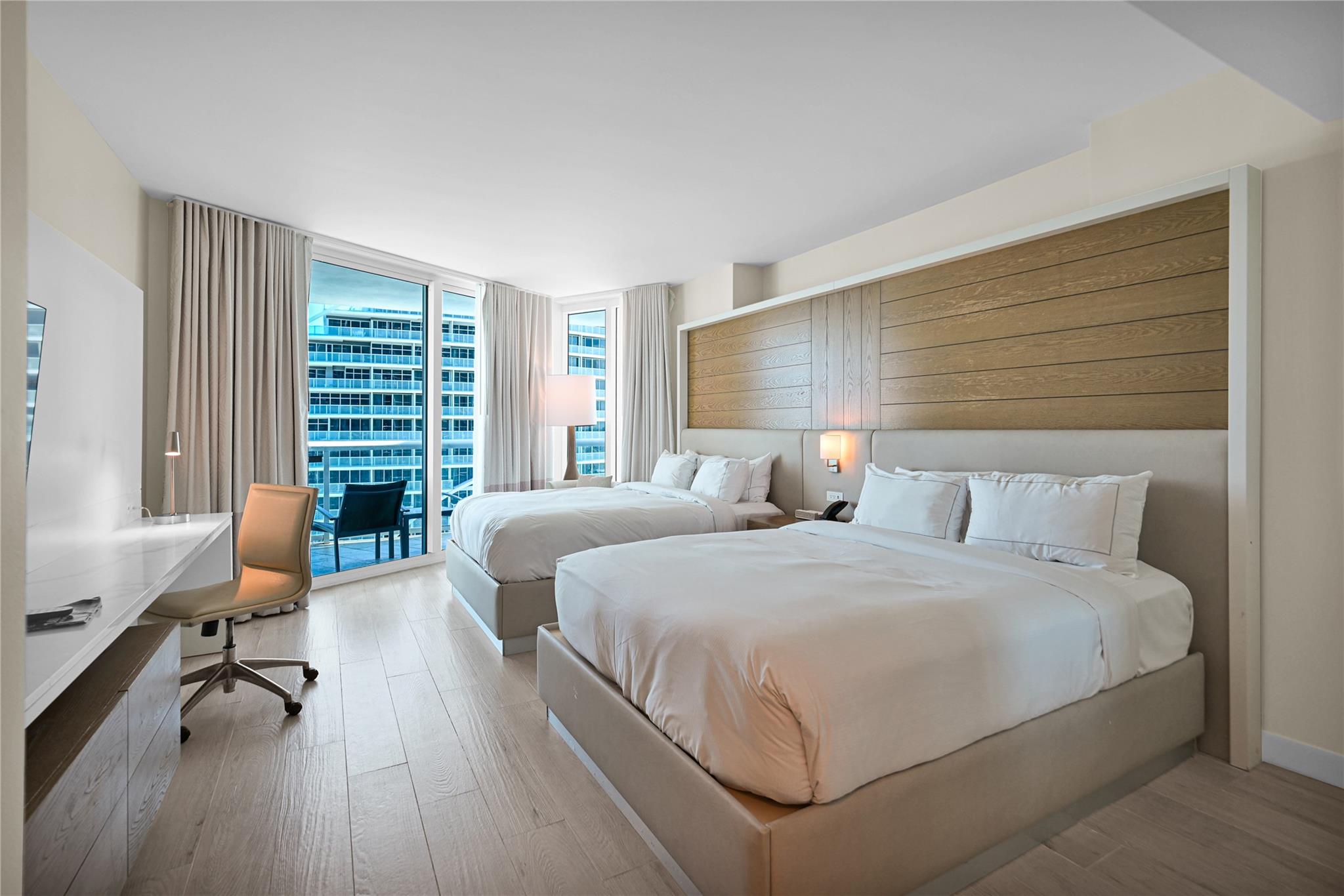 Southeast facing luxury hotel-condominium located on the world-famous Fort Lauderdale Beach is seeking a new owner. Unit 1711 is a fully-furnished two-queen bed suite with kitchen facilities and a wrap-around balcony. Floor-to-ceiling impact windows flood the suite with bright and cheery light. Take advantage of the resort amenities designed with you in mind including a tropical pool, room service, restaurants and bars, spa, and fitness center. Check out the beach, the ocean breeze, and the swaying palms. Enjoy your stay in your very own oasis and rent it out in your absence through the Resort Program to offset the cost of ownership.