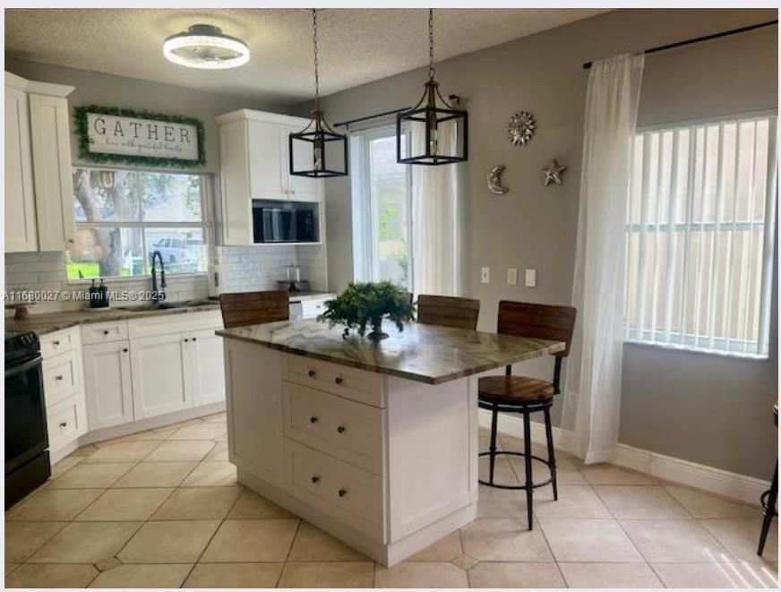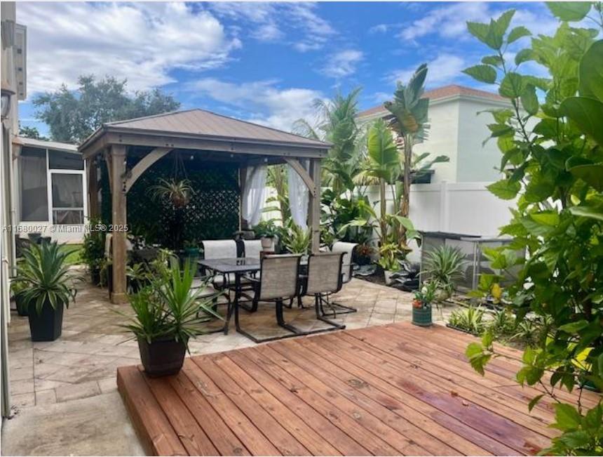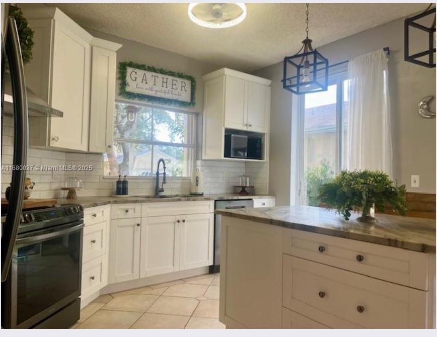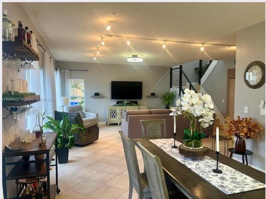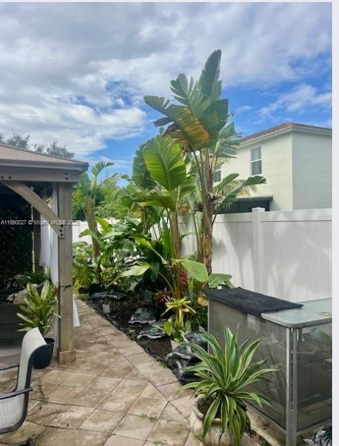 This stunning two-story residence features a bright and airy atmosphere showcasing a well-designed open floor plan. The main living area, offers a seamless flow between spaces, complemented by freshly painted walls & tile floors throughout. Recently updated kitchen boasting elegant white cabinets, spacious kitchen island, high-end stainless steel appliances & granite countertops adding a touch of luxury. The inviting living and dining areas are perfect for gatherings, filled with natural light and space. A converted garage enhances the living space as a versatile bonus room. Elegant travertine staircase! The most recent upgrades includes a newer roof and AC unit. Outside, the backyard transforms into a tropical oasis, inviting you to host gatherings and enjoy the serene surroundings.