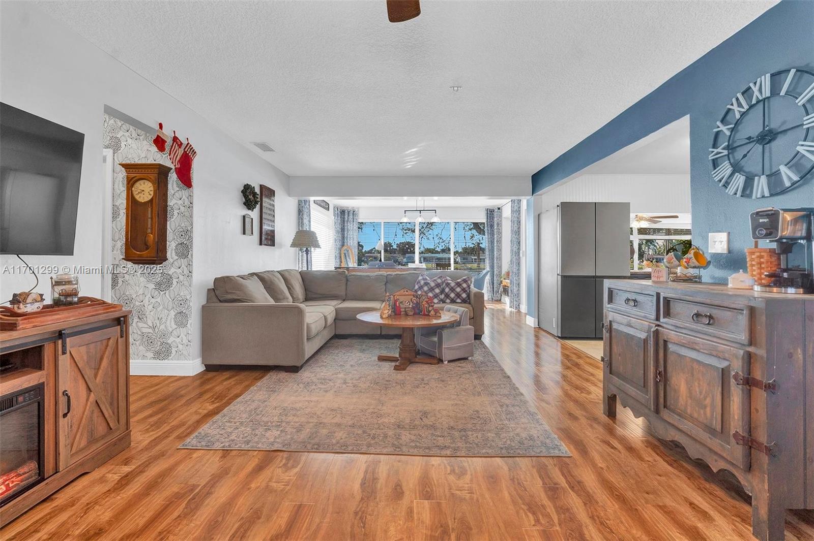 A Peaceful Lakefront Retreat to Call Home. From the moment you step inside, your eyes are drawn to the breathtaking wide lake views that fill the living, dining, and sunroom with tranquility and light. This home is a perfect blend of comfort and charm, featuring a completely remodeled kitchen that's as functional as it is inviting. The updated bathroom adds modern convenience, and the wood laminate floors create a seamless, cozy flow throughout. A spacious laundry room keeps life running smoothly, and the backyard offers space for creativity with a brand-new shed. With a new roof and impact windows for peace of mind, this lakefront home is a serene escape waiting for you to make it your own. Refrigerator and Freezer do not convey with the home.