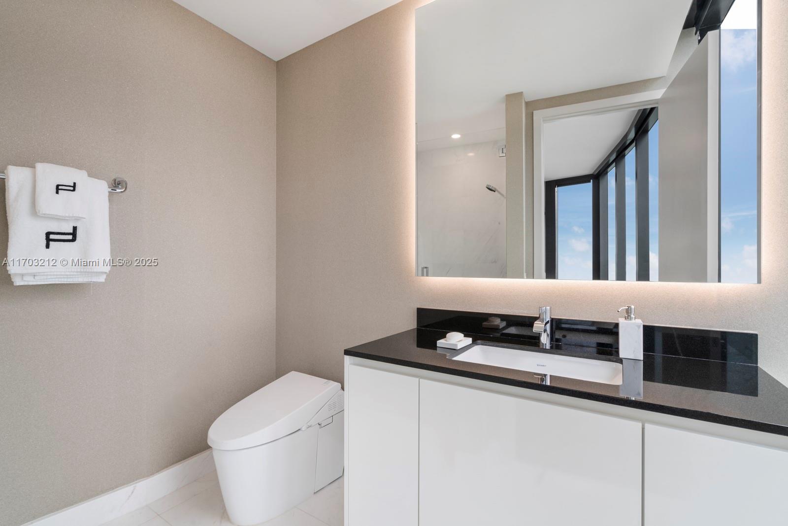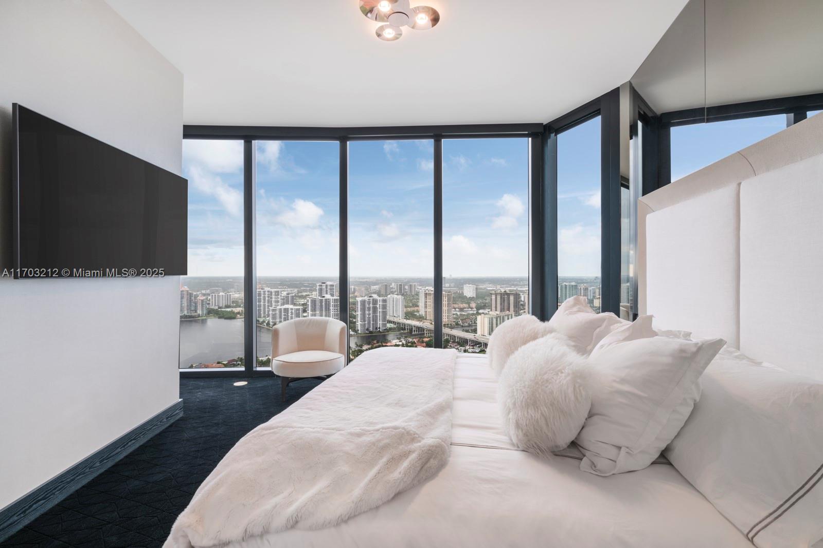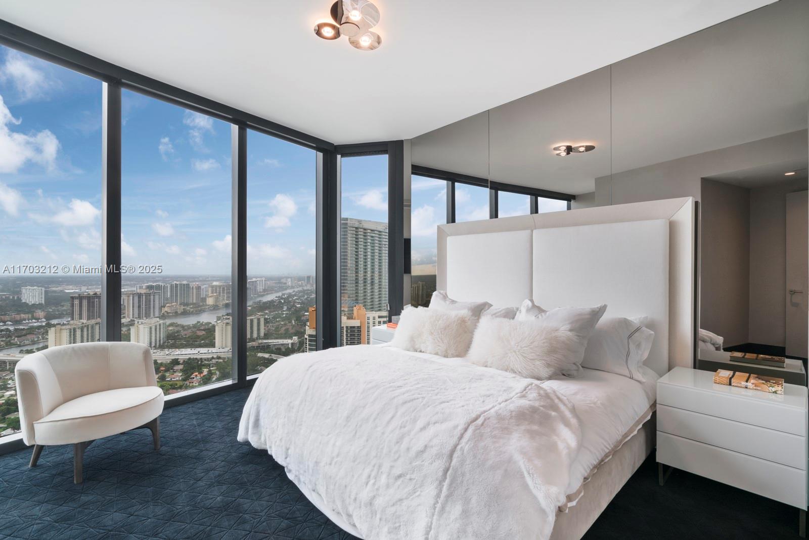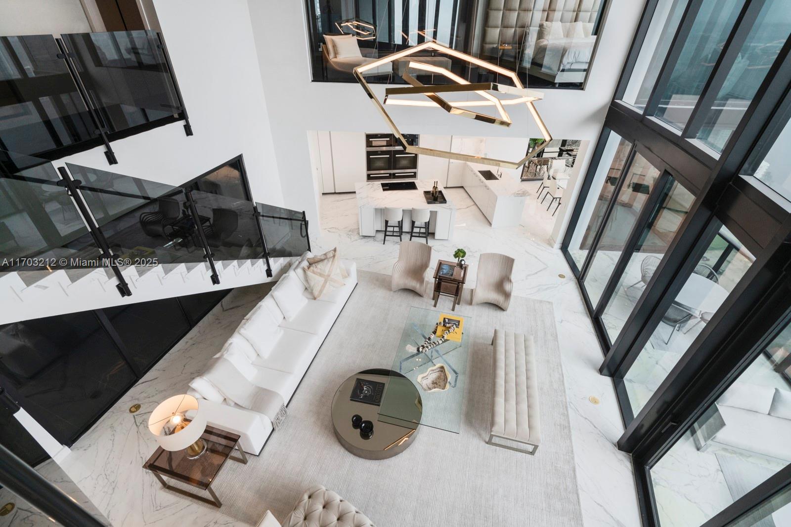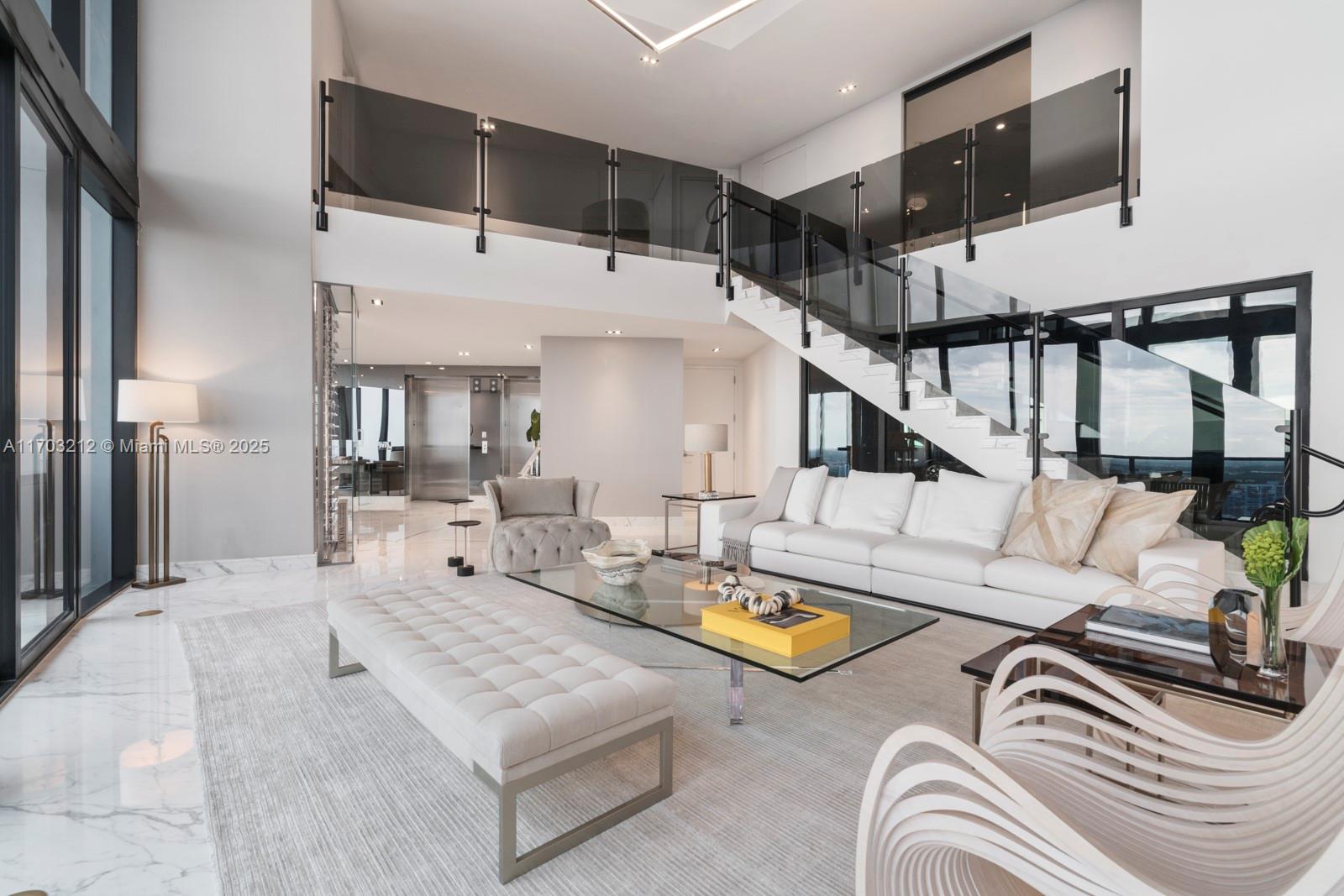 Stunning 2-bed, 2-story apartment in Porsche Design Tower, fully decorated & furnished by Artefacto. Luxury living with sleek, modern finishes. This one of a kind duplex features an open floor plan & impeccable furnishings, exuding sophistication in each room. The third bedroom transforms into a custom bar & entertainment area, maximizing space & offering breathtaking views. Ascend to your private 2-car sky garage via the signature Dezervator, seamlessly integrated for private entry. Indulge in amenities, from concierge services to a private theater. Relax with beach & pool service, then dine at FUEL restaurant with a private chef. Luxury redefined at the Porsche Design Tower, with lavish spa facilities, chic entertainment, & exclusive car galleries.