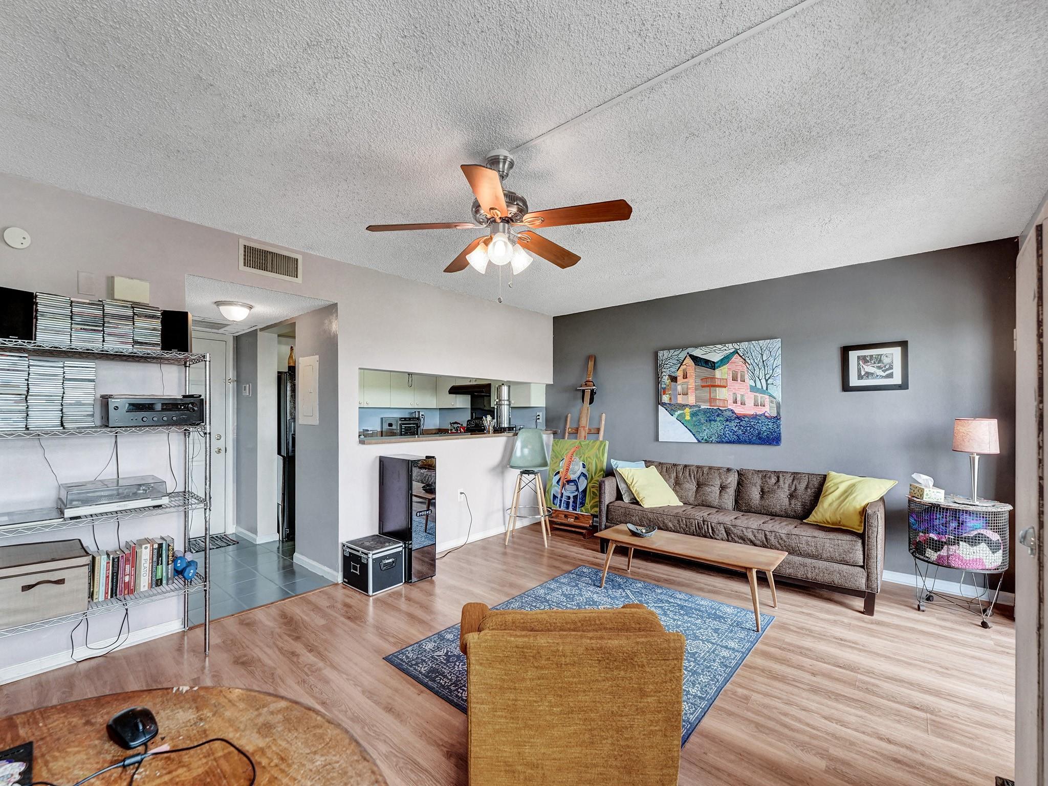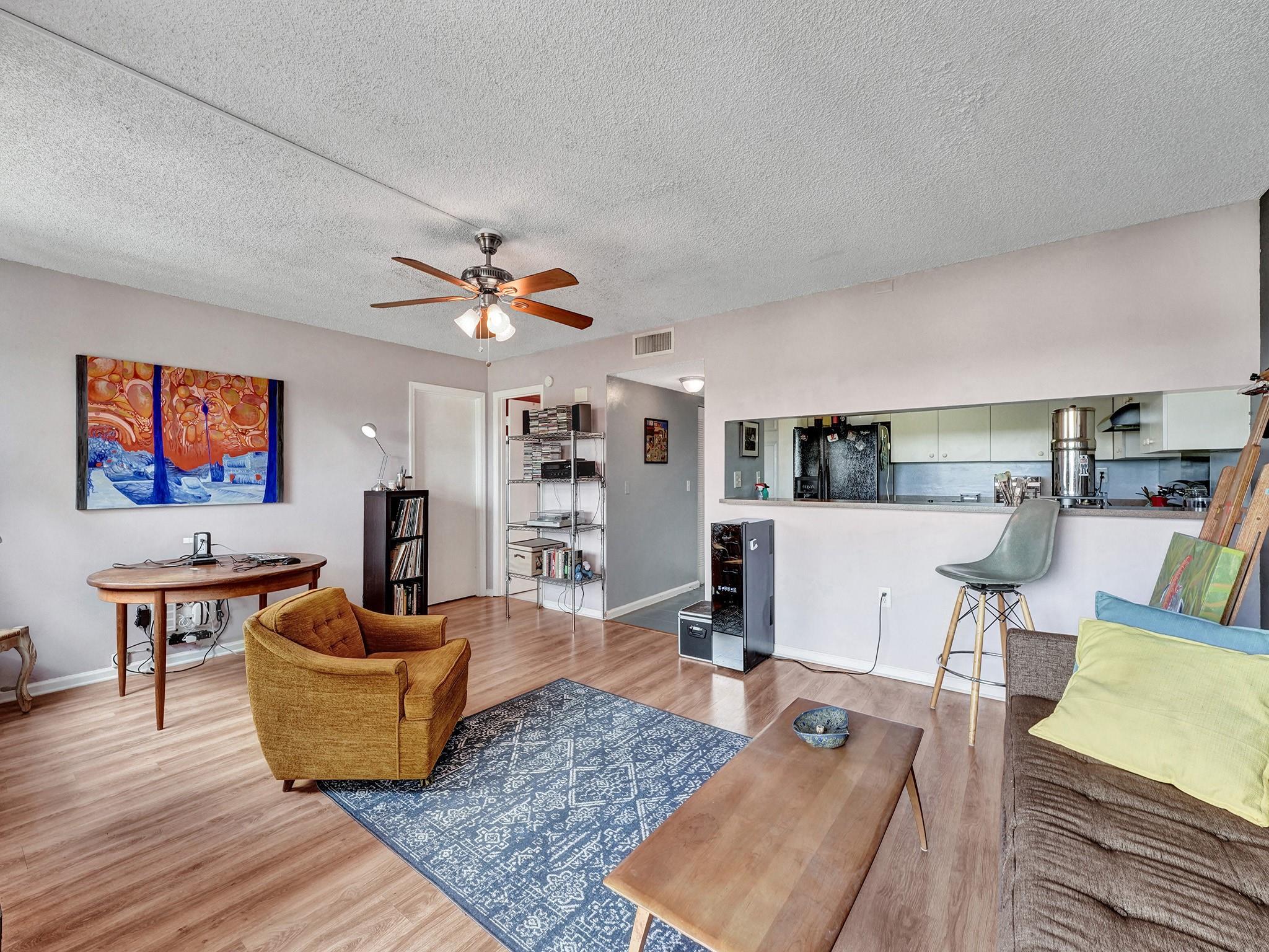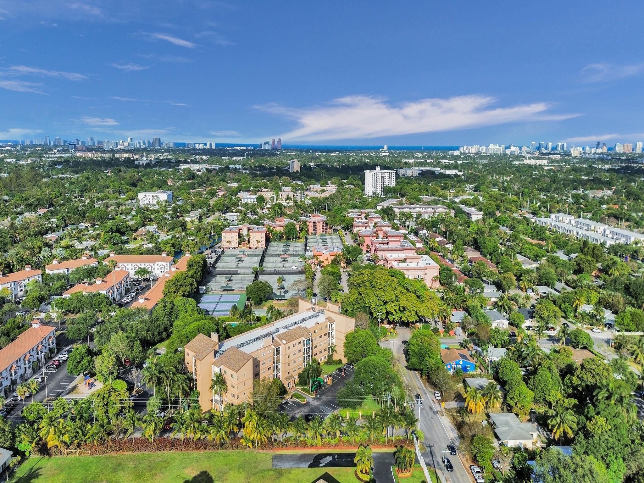 Experience unparalleled views from this top-floor, 1-bedroom, 1-bathroom residence, thoughtfully designed for comfortable living. Located in the highly maintained community of Tennis Club II, this unit offers a secure environment with a controlled lobby, guest call box, and fob entry system. Inside, enjoy abundant storage space, a large balcony with scenic views, and modern tile and laminate flooring throughout. The community welcomes large dog breeds, and the maintenance fees include water, cable, and premium channels like HBO and Showtime. Conveniently situated minutes from Wilton Manors, Downtown, and the beach,