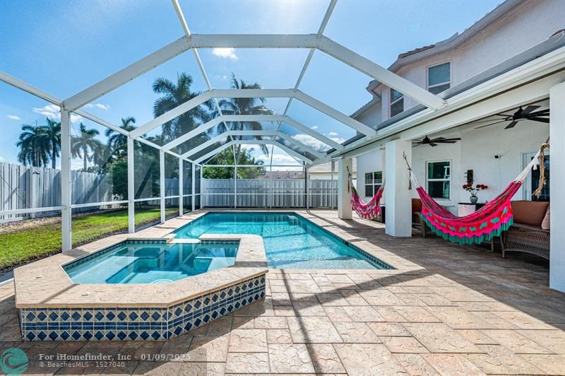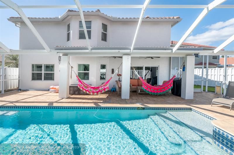 WESTON GEM! 5 BEDROOM/4 BATH home in the calm, and beautiful subdivision of The Gables, has been cared for by its original owner. This property is meticulously maintained, featuring REMODELED BATHROOMS, NEW ROOF (2021), NEW GUTTERS, HIGH QUALITY IMPACT DOORS AND WINDOWS, SALTWATER POOL /SPA and more (see attachment) Perfect for entertaining, it features an extended paved driveway that can accommodate up to 4 cars to the resort-like screened pool area. Inside, high ceilings and the natural light welcome you to a warm and inviting space. The kitchen with SS appliances, granite countertops and quality wood cabinetry. The master bedroom and bathroom are generously sized. Located near great parks and top- rated schools!