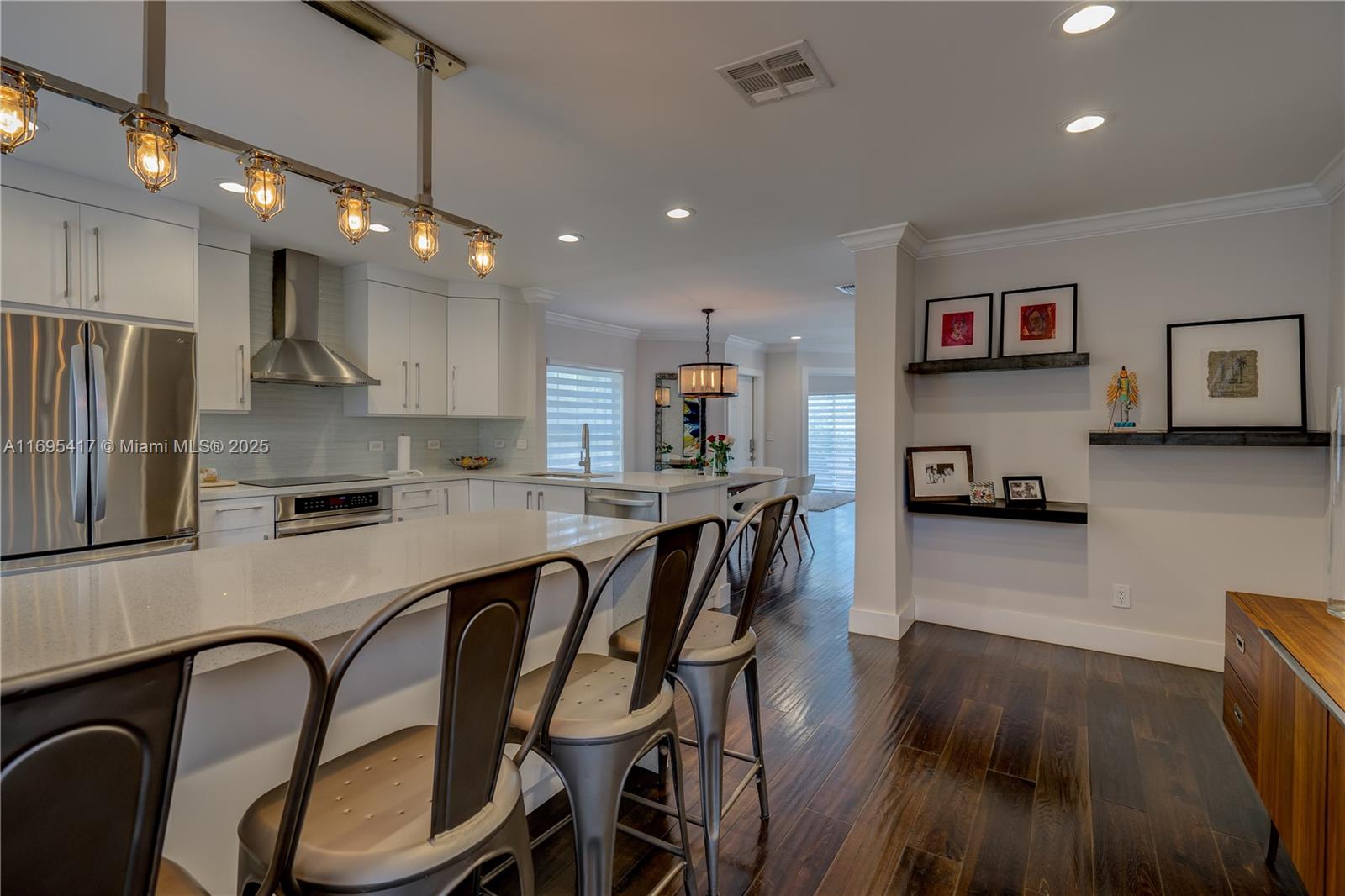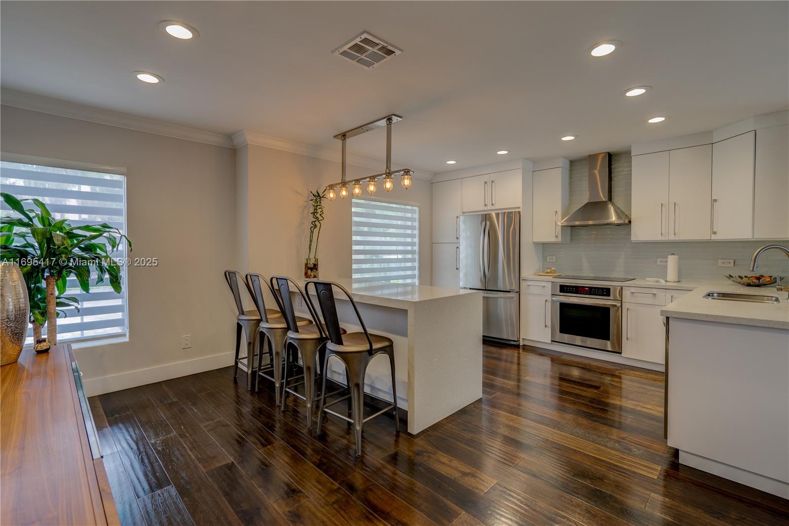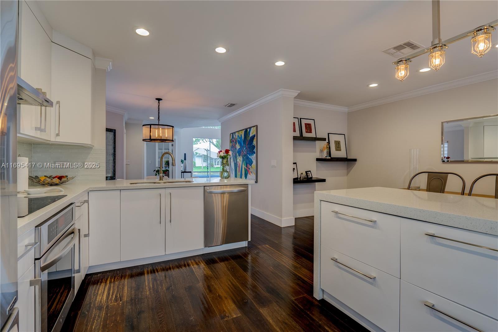 Nestled in a desirable Emerald Isle a gated community, this beautifully updated 3-bedroom + den, 2.5-bathroom home offers the perfect blend of luxury and comfort. With breathtaking lake views and a spacious backyard and paved patio, Step inside to discover a fully remodeled interior, including a modern kitchen with quartz countertops, a stylish kitchen island, SS appliances. Enjoy the warmth and elegance of real wood flooring throughout. New roof & AC ( replaced+/- 7 years ago) .Walk to the vibrant Weston Town Center, where you'll find fine dining, charming boutiques, coffee shops, and Publix. Families will love the convenience of A-rated schools and being just a short walk from Tequesta Trace Middle School. Dinning Lamps excluded