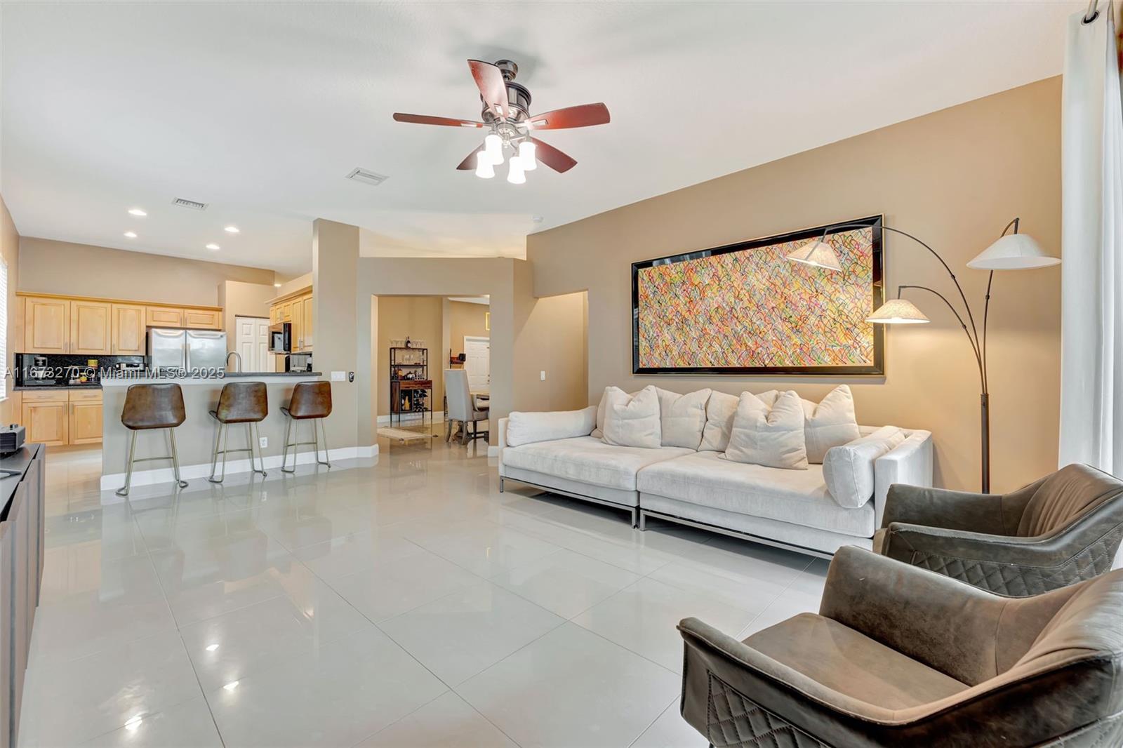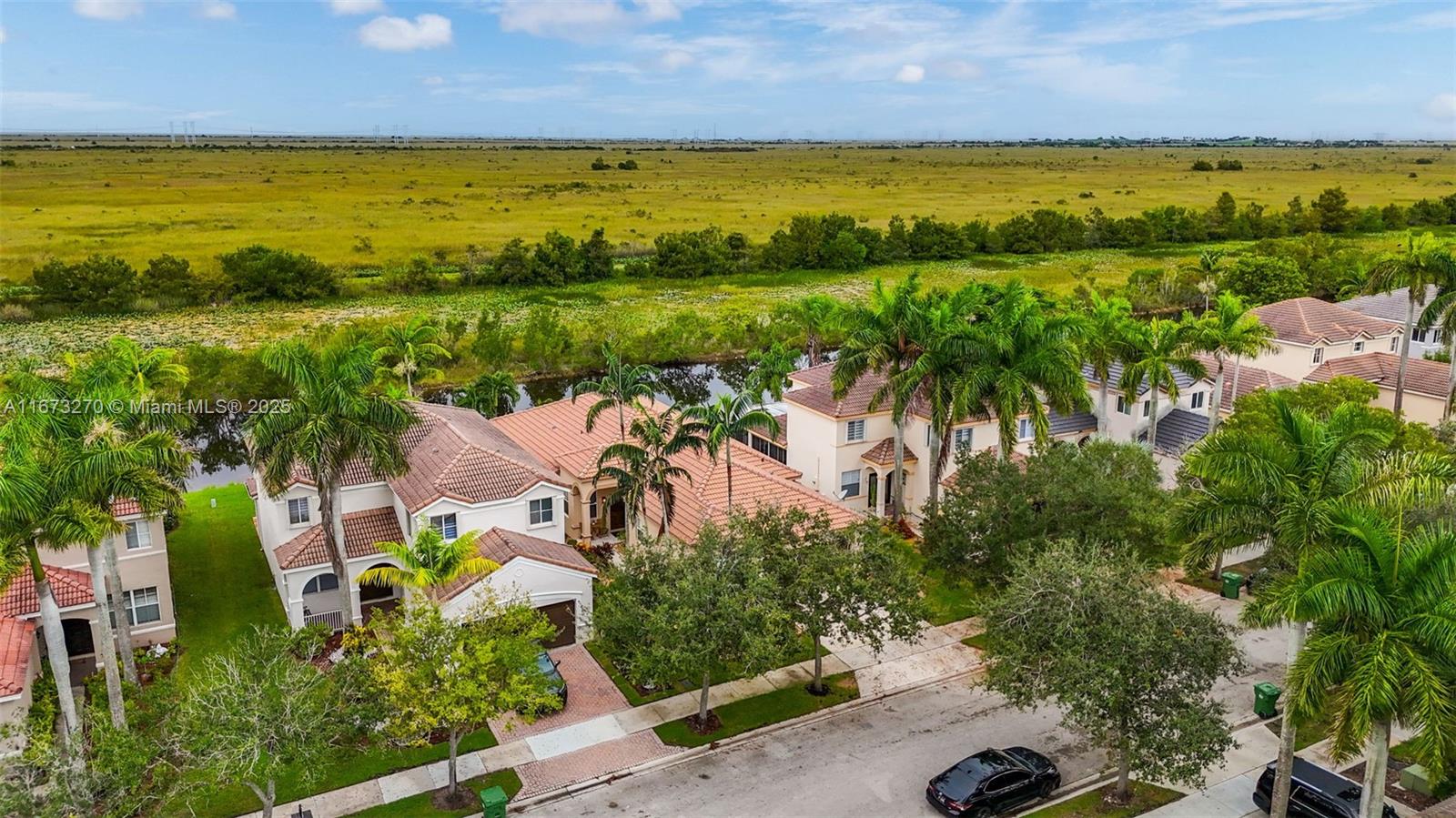 Charming & beautifully maintained one-story home with 4 bedrooms, 2 bathrooms, and a 2-car garage is ready for you to move right in. Wake up to breathtaking Everglades views in this serene and peaceful setting. The split floor plan ensures privacy, while natural light fills the space, creating a bright and airy atmosphere. Elegant 24x24 porcelain tiles flow throughout, adding a modern touch. Enjoy stunning sunsets from the spacious screened-in patio, offering a private retreat. Located in the gated resort-style community of Savanna, with pools, sports courts, and more.