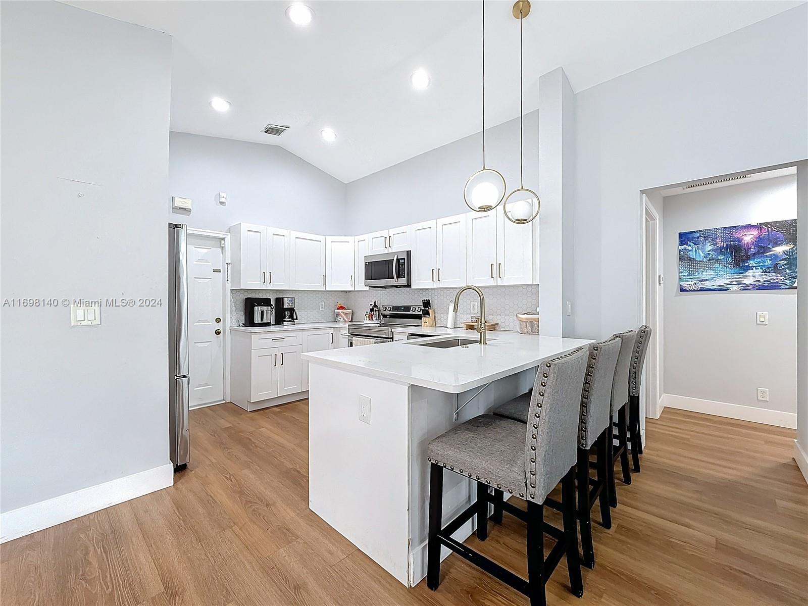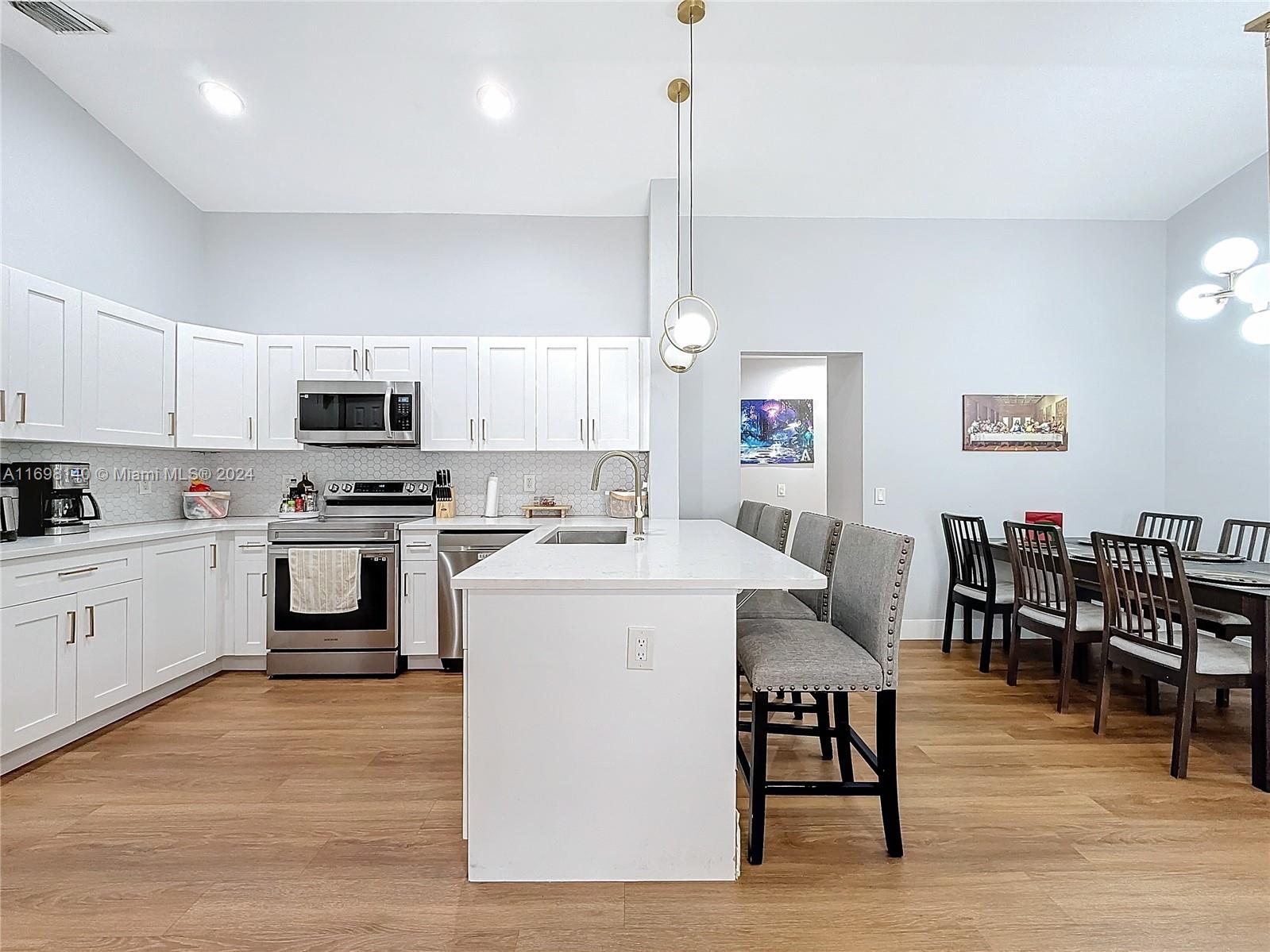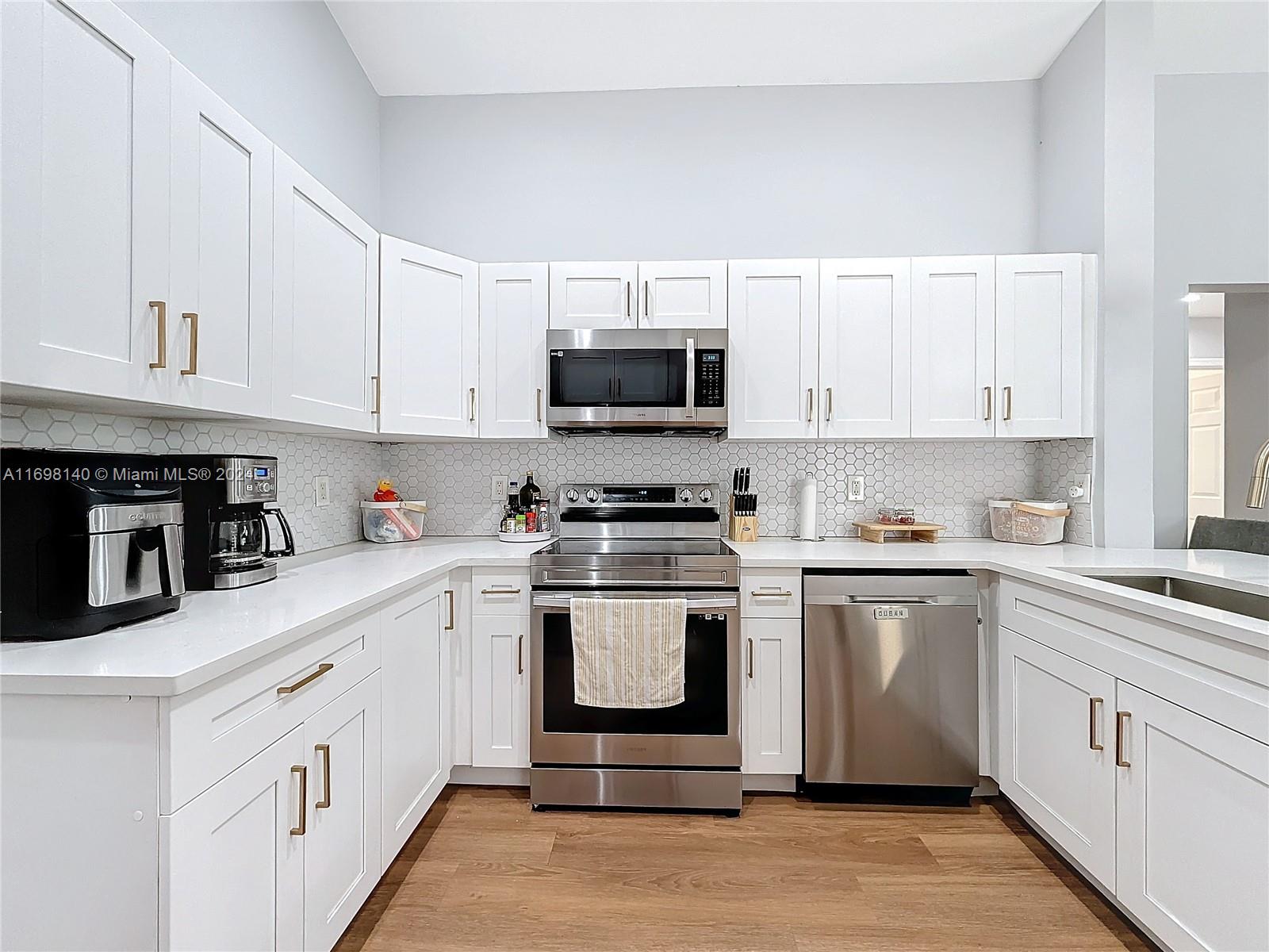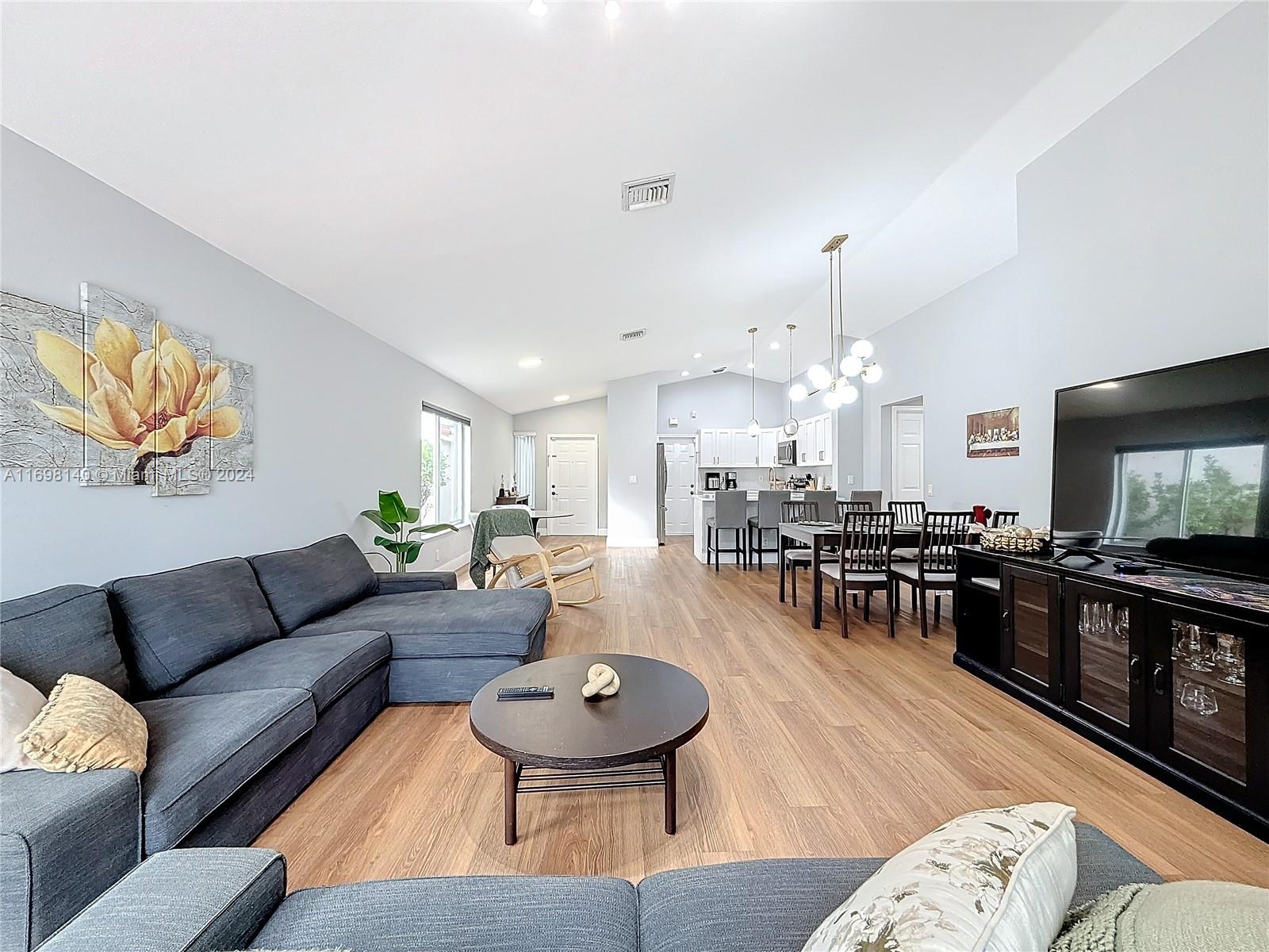 Gorgeous 3 beds, 2 baths, 2 cars garage, in Savanna community at Weston. The house replaced its roof in 2023 and remodeled the kitchen, and master bathroom. The wood floor. Appliances 2022 -2024 washer and dryer. The community area has a great lap pool, a beautiful large pool, slider tube water, and 2 kids' pools. The Playground, mini golf, soccer field, basketball, rock arena, clubhouse, and other activities, plus the Restaurant /café. Closed to I-75, and 595. Ready to move in.