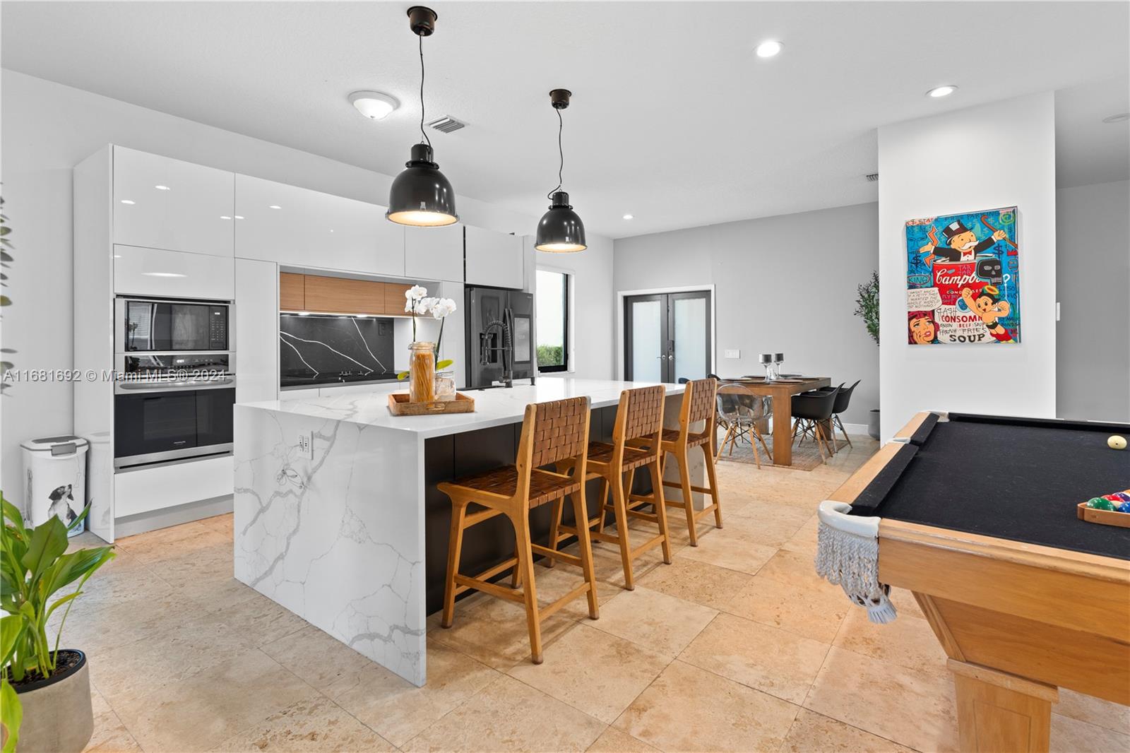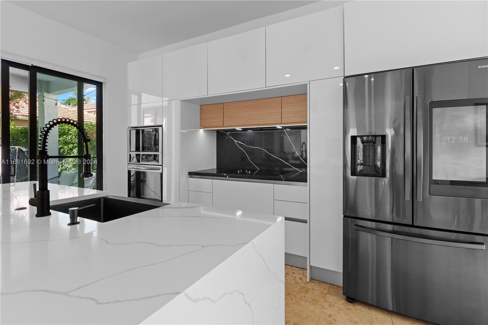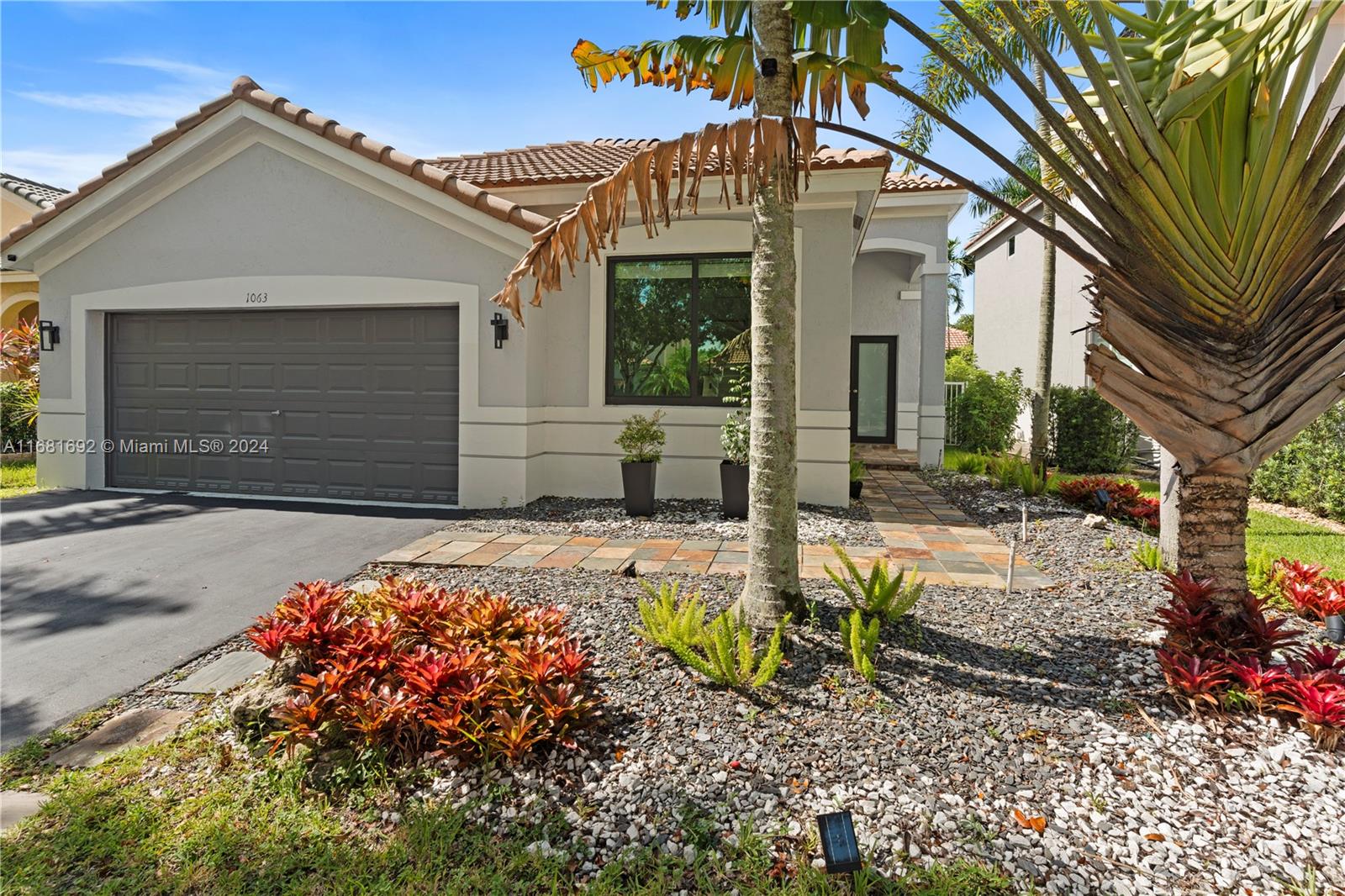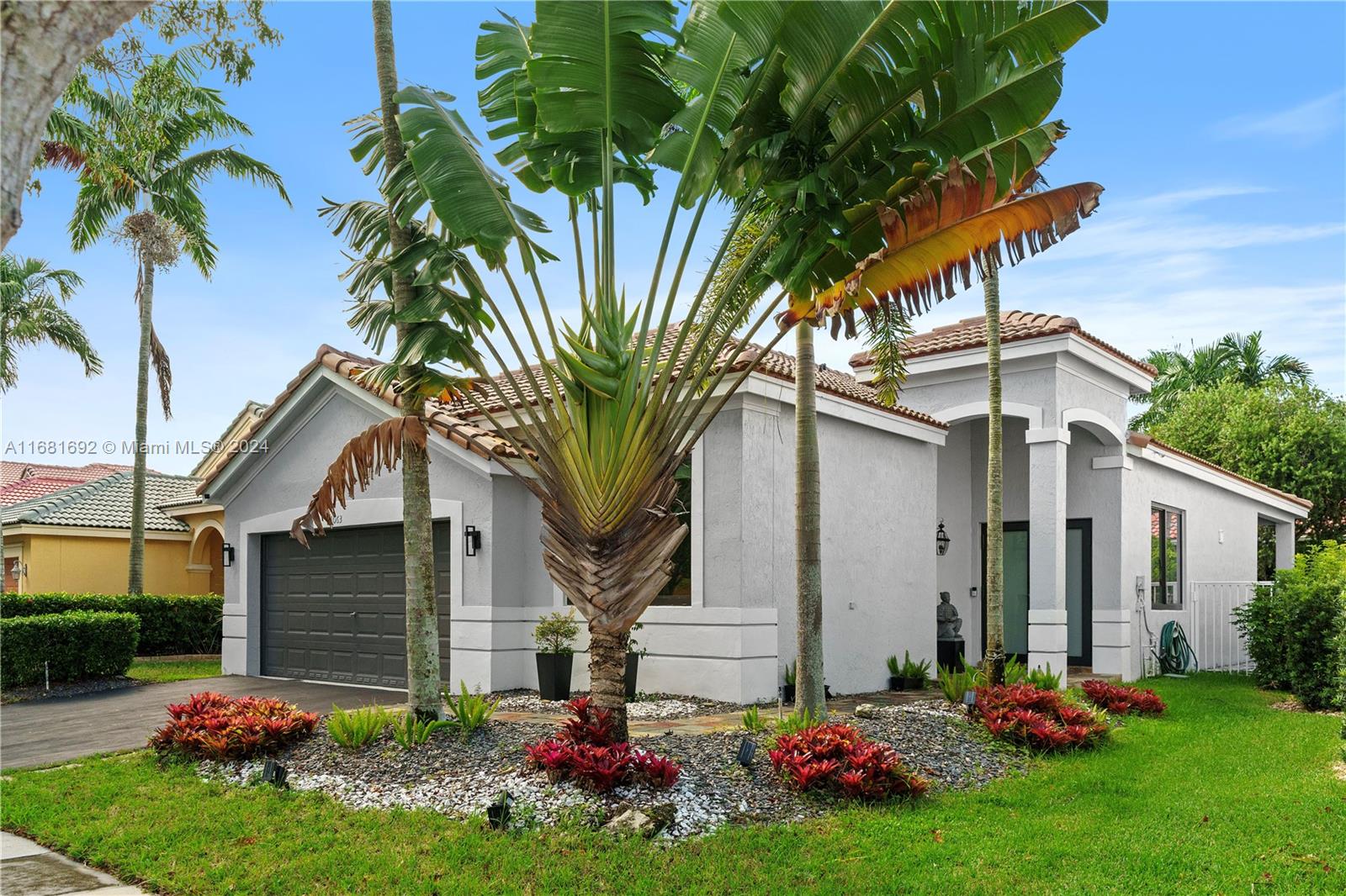 Stunning Contemporary one-story 3/2 home featuring a stone walkway and a double-door entrance. EXTENSIVELY RENOVATED with an open floor plan that connects the spacious living, family, and dining areas. Newer kitchen with large waterfall quartz island & stylish European cabinets. Two-car garage, travertine marble floors in the living areas, and laminated wood in the bedrooms. Updated baths. Patio features a newer Jacuzzi, artificial grass, and lush landscaping for privacy. Recent updates inc. black frame hard impact windows and doors!, fresh interior paint & modern exterior colors. Located in Savanna, one of Weston's most sought-after communities. Resort Style Clubhouse, three swimming pools, mini golf, and soccer. Conveniently situated near highways, parks, shopping, and A+ rated schools.