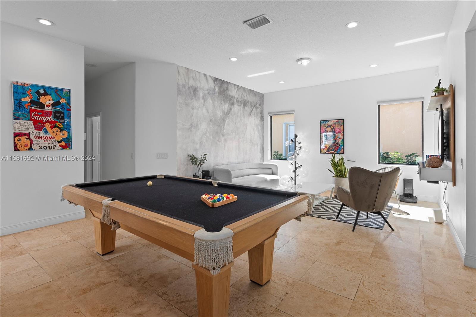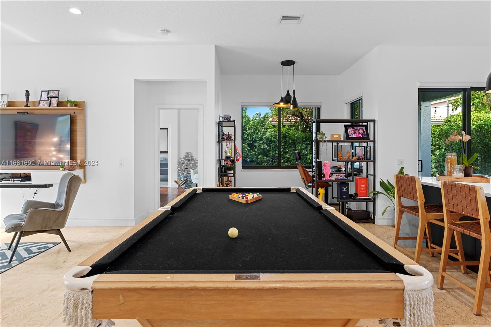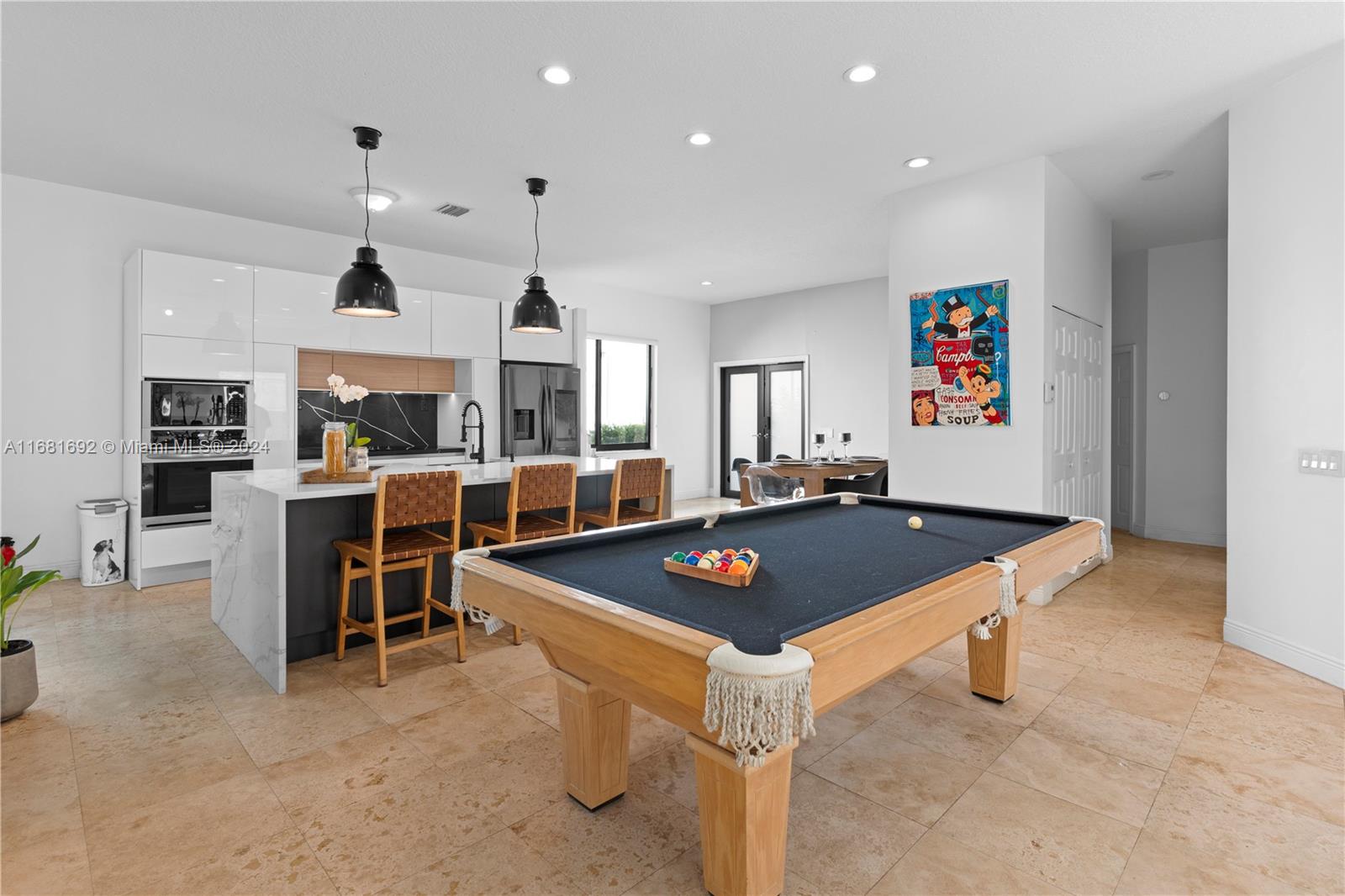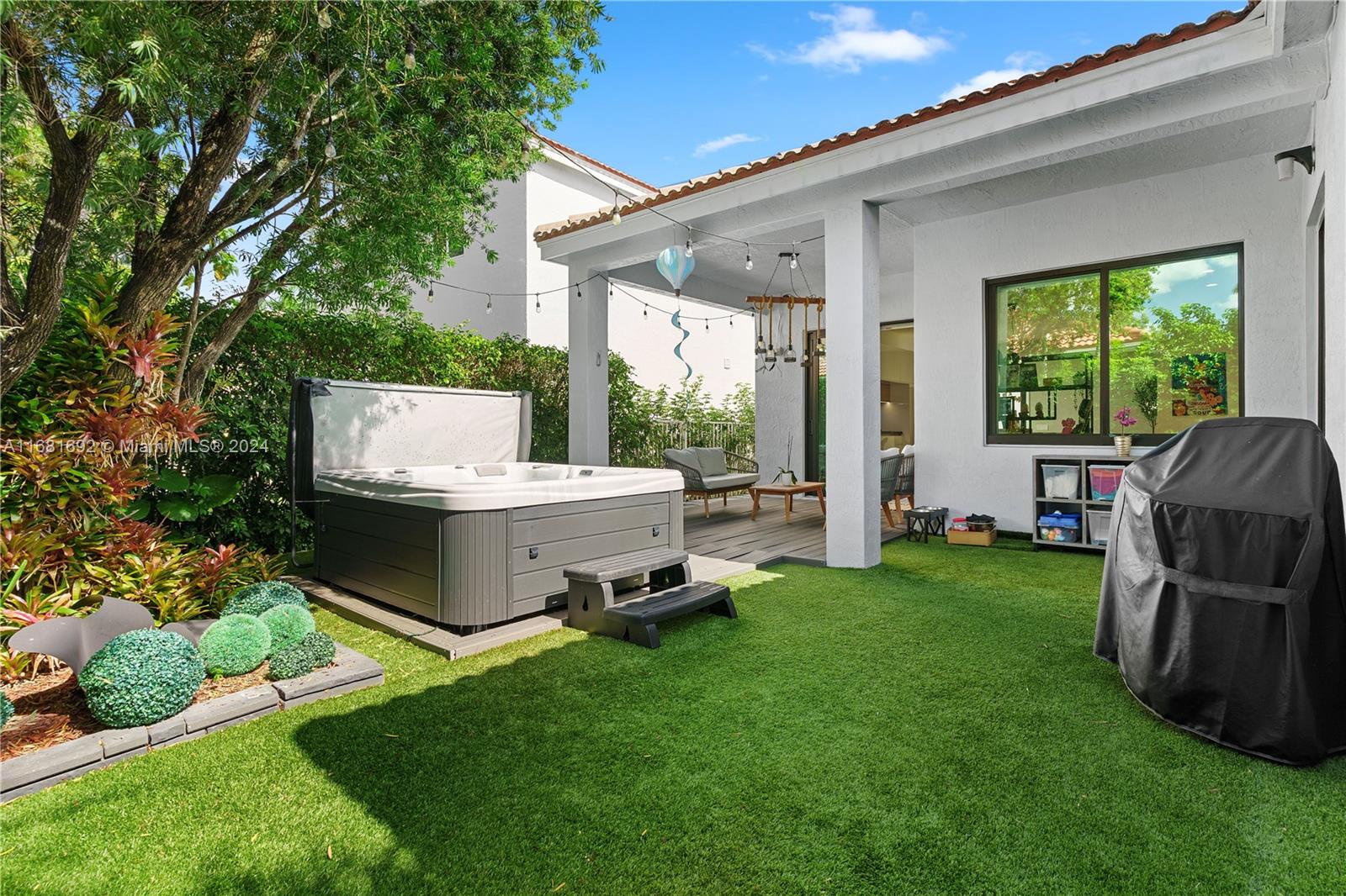 Stunning Contemporary one-story 3/2 home featuring a stone walkway and a double-door entrance. EXTENSIVELY RENOVATED with an open floor plan that connects the spacious living, family, and dining areas. Newer kitchen with large waterfall quartz island & stylish European cabinets. Two-car garage, travertine marble floors in the living areas, and laminated wood in the bedrooms. Updated baths. Patio features a newer Jacuzzi, artificial grass, and lush landscaping for privacy. Recent updates inc. black frame hard impact windows and doors!, fresh interior paint & modern exterior colors. Located in Savanna, one of Weston's most sought-after communities. Resort Style Clubhouse, three swimming pools, mini golf, and soccer. Conveniently situated near highways, parks, shopping, and A+ rated schools.