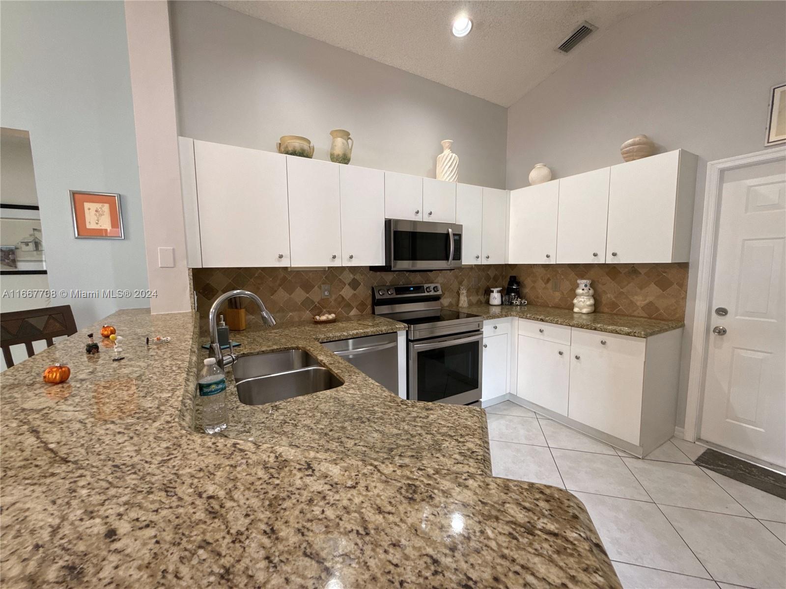Welcome to this well-maintained 3 bed, 2 bath, 2 car garage home with a perfect layout in San Messina of the Weston Community. Conveniently located near I-75, A+ schools, major highways, and shops. Great for first-time home buyers. Vaulted ceiling, cozy & clean kitchen counter in granite with all stainless steel appliances Warranty through 2025, newer water heater 2023, A/C 2019, and Metal Roof Update 50 year Warranty (limited & transferable),Hurricane Window panels, sliding door accordions. This property offers stunning lake facing west with sunrise and sunset with spectacular view, and enjoying the one of the largest lakes in Weston.
