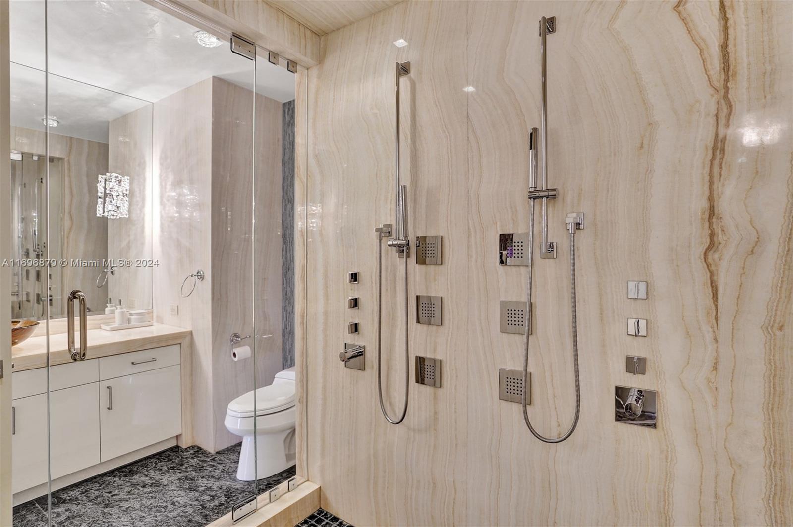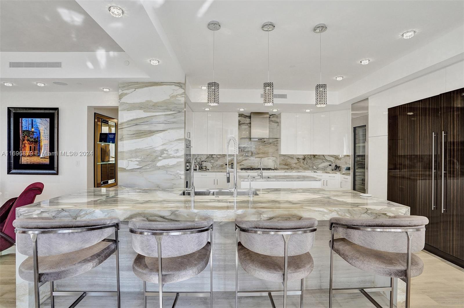 Magnificent and meticulously designed residence 3 bed/ 6.5 bath, 4,609 SQF offering breathtaking ocean and intercoastal views, refined finishes, and spacious layout. Can be easily converted to 4 beds. Professionally designed and decorated with most high end finishes, marble & wooden floors, Ornare leather designed closets, kitchen w/Miele appliances, custom cabinetry & large island, fireplace in Family room, Jacuzzi and summer kitchen on the second terrace. Residents enjoy exclusive access to a range of 5 star amenities, including: full beach service, spa, hammam, kid's room, state-of-the-art gym, Rolls Royce inhouse car, cigar/wine lounge, theatre, golf simulator, daily breakfast & pool. Access to Acqualina 5star hotel services, ESPA, Il Mulino. Enjoy direct beach access to pristine sands