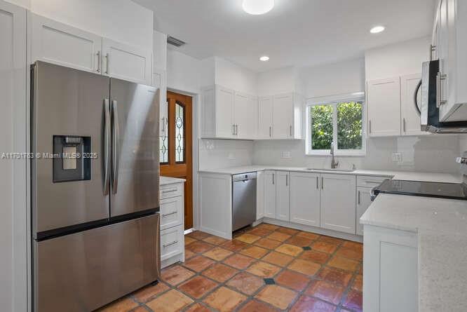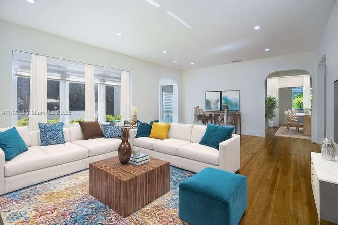 This one of a kind family home is on the market for the first time in over 60 years. The property sits on a double lot in the heart of Coral Gables and is located near historic landmarks including the Biltmore, Venetian Pool & Miracle Mile. Roof replaced in 2023, Impact-resistant windows & doors and garage door installed in 2023. Kitchen updated in 2024 w/custom cabinetry & white quartz counters with S/S appliances, Bosch dishwasher. Original refinished Florida pine wood floors. Split plan bedrooms, primary with walk-in closet. Updated bathrooms w/new vanities, tile & hardware. High-top lighting added in all rooms. New driveway, patios with new tile. New A/C & electrical box. Room for a pool. Matterport 3D tour attached to virtual tour.