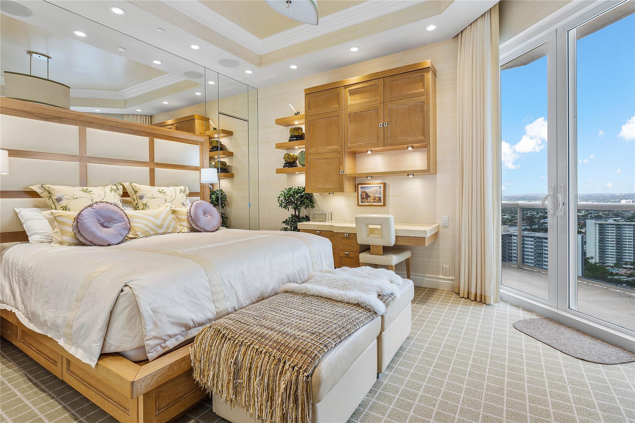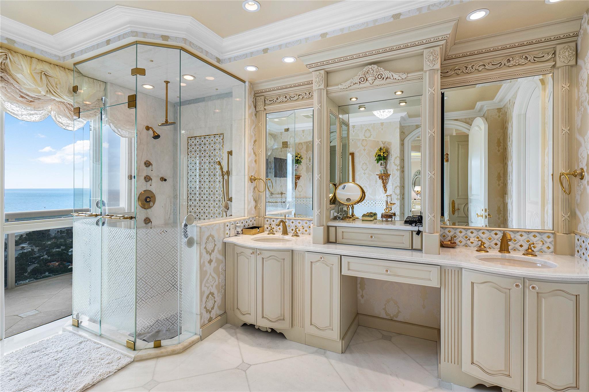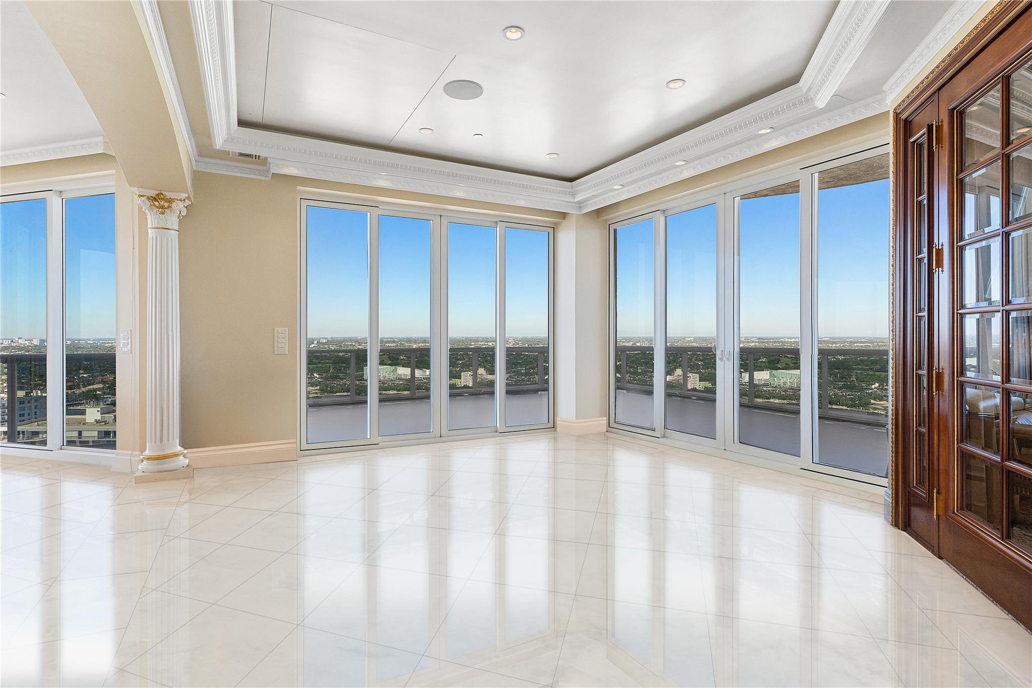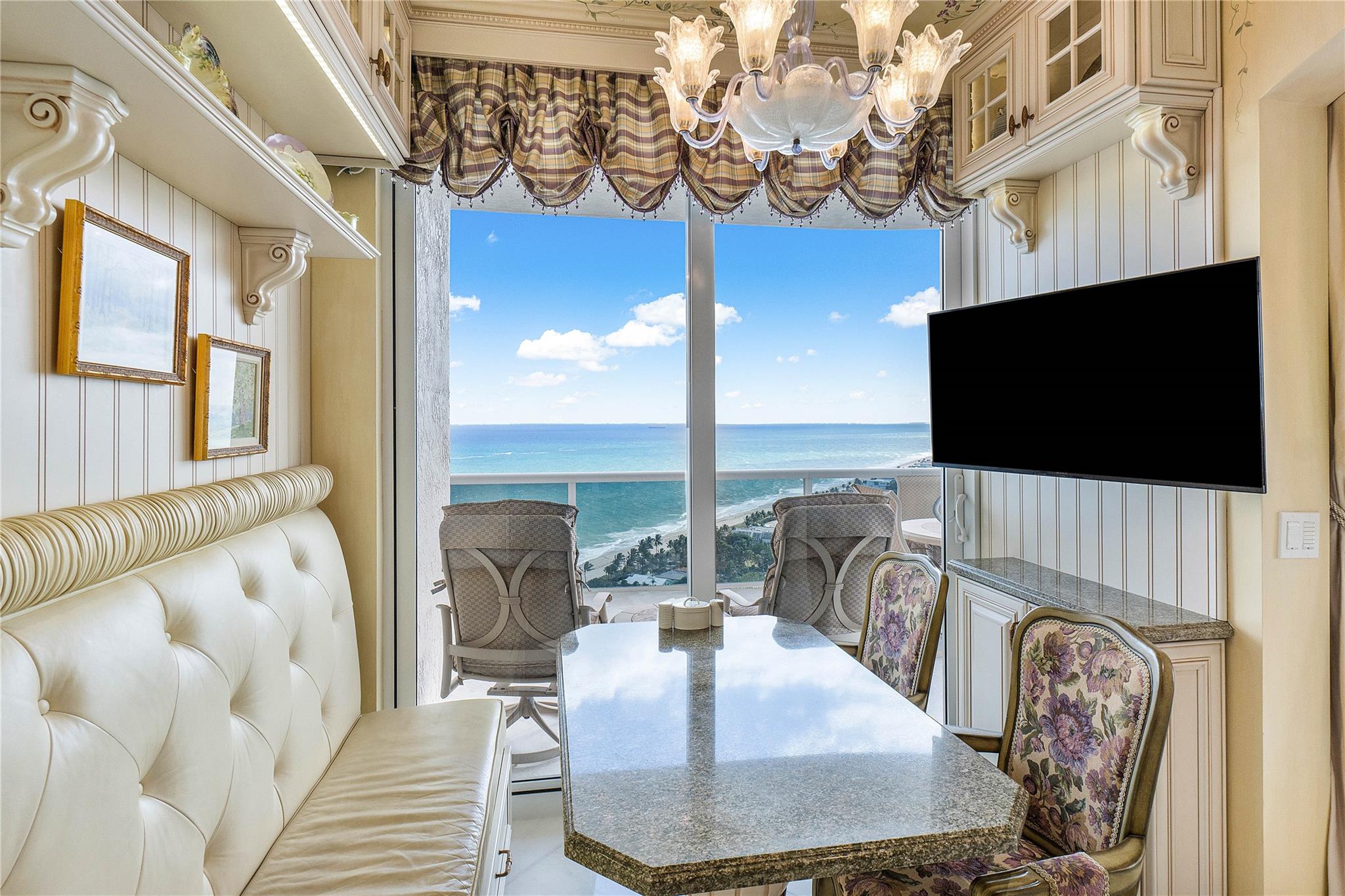 PENTHOUSE - Experience unparalleled oceanfront luxury in this sprawling Penthouse at L’ Hermitage of Ft Lauderdale Beach. Spanning 4,404 sq ft, this residence offers a private elevator to your foyer, where you will find panoramic ocean, city & intracoastal views through floor to ceiling impact windows. Wake to the coastal sunrise & entertain under stunning sunsets. This palace in the sky includes 4 large balconies, a home theatre, a massage/fitness room with sauna, a study/office, marble inlay flooring with onyx and amethyst, coffered ceilings, 3 garage spots & much more. L’Hermitage delivers resort-style living with 2 pools, jacuzzi, poolside restaurant, two clay tennis courts, a private beach with cabanas & attendants, valet, concierge and more. Coastal elegance redefined.