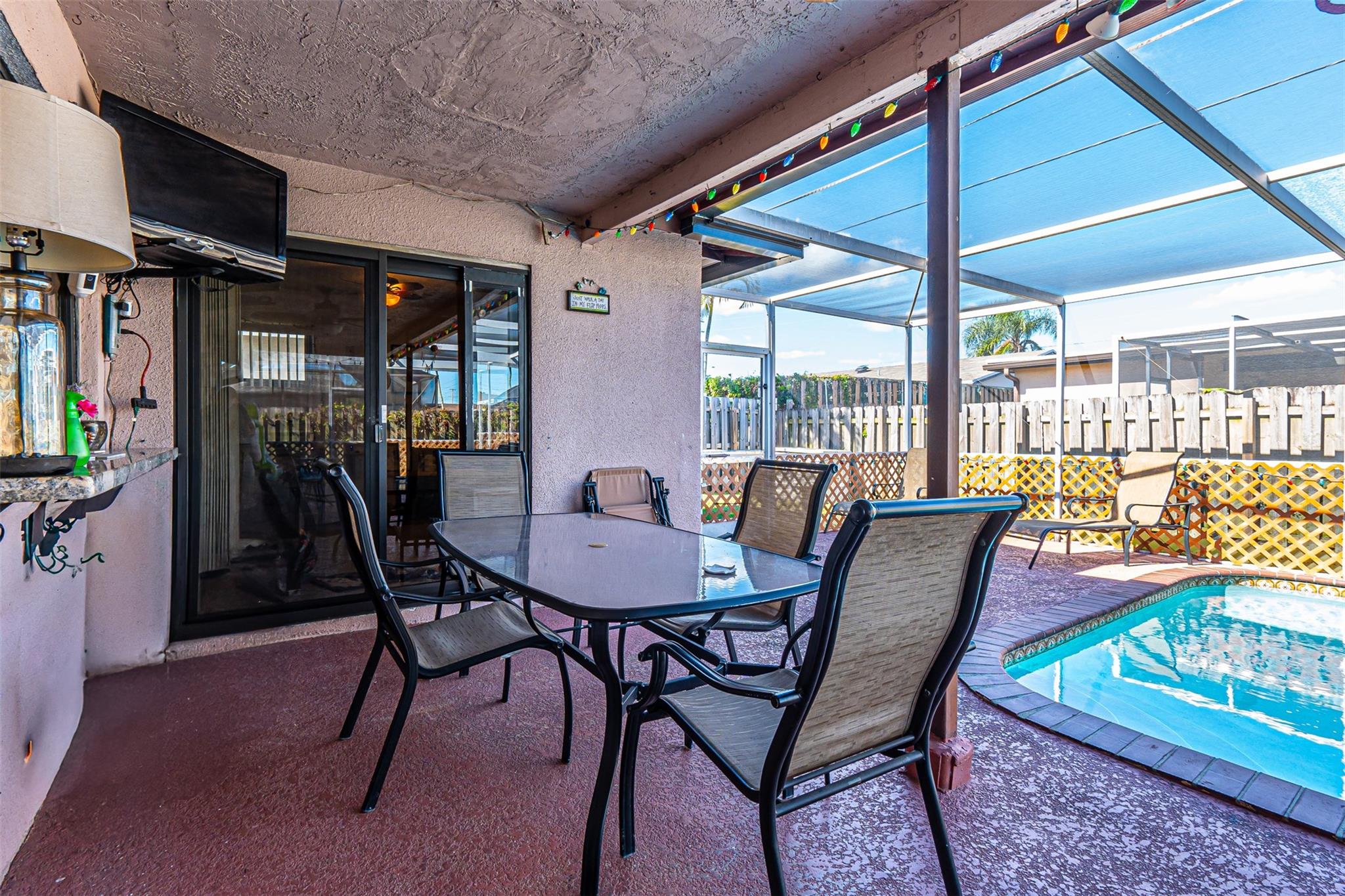 Welcome to this beautifully updated and conveniently located home in the highly desirable Sunrise Golf Village! Featuring a brand-new roof (2023), this home offers peace of mind with impact windows and doors, ensuring both safety and energy efficiency. The spacious floor plan includes a bonus den that can easily be transformed into an additional bedroom or home office. With no HOA fees or restrictions, you'll enjoy the freedom to make this home truly your own. The private backyard with a sparkling pool is perfect for relaxing or entertaining guests. Whether you’re lounging by the pool or hosting a gathering, this home offers the perfect blend of comfort and style. Located just minutes from major highways, shopping, dining, and entertainment