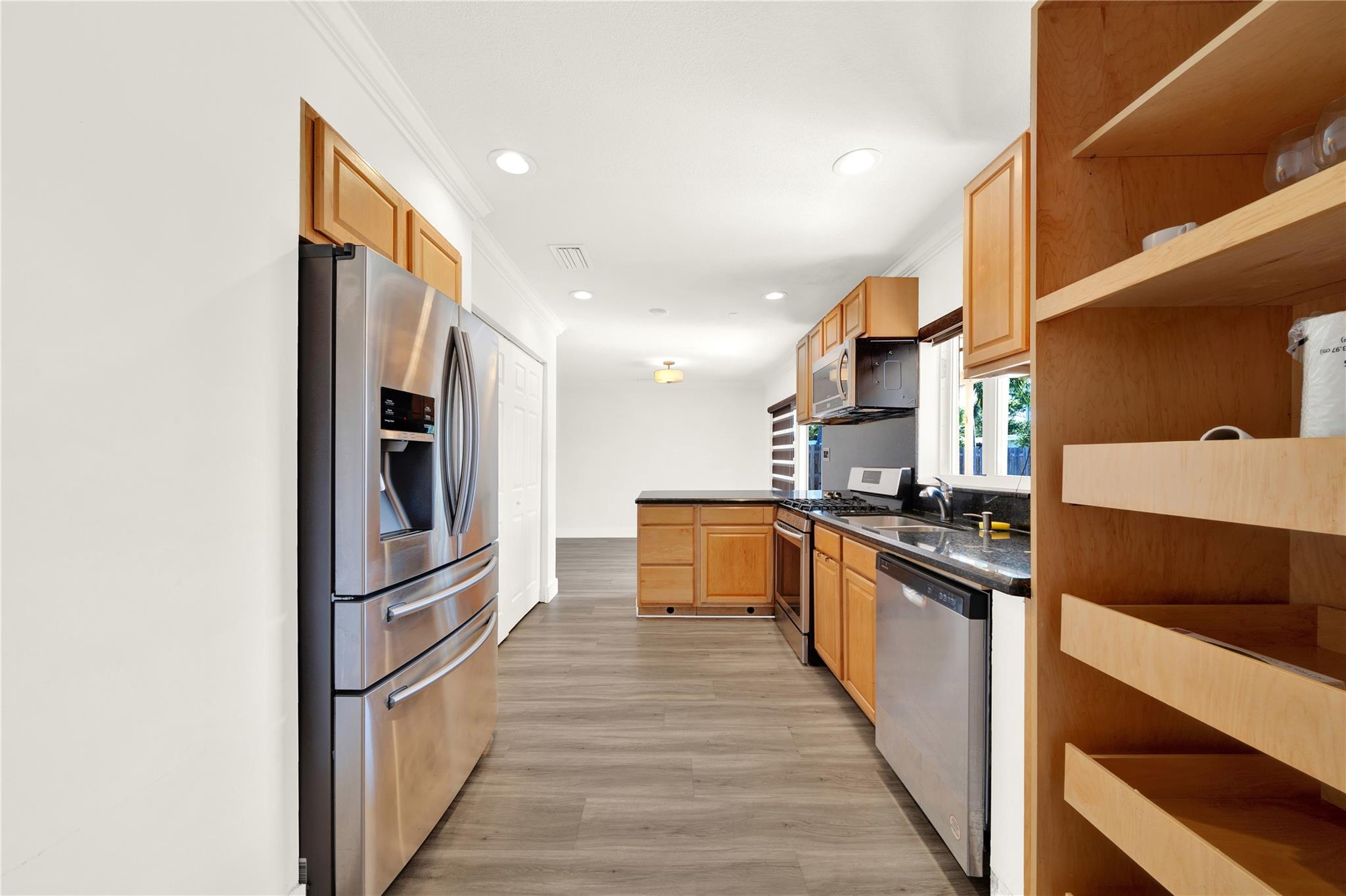 This delightful 3bed/2bath home is situated in a desirable neighborhood. This home includes a spacious layout with an open floor plan that provides seamless flow, perfect for entertaining or relaxing. The modern Kitchen has updated cabinetry, ample counter space, and stainless-steel appliances, making cooking a delight. The primary suite boasts a private en-suite bathroom, while two additional bedrooms are perfect for family, guests, or a home office. The pool and patio area are ideal for enjoying Florida’s year-round sunshine. IMPACT WINDOWS provide year long security and insurance discounts. The one-car garage and extended driveway provide ample parking and storage. Located near excellent schools, shopping, dining, and parks, this home offers convenience and charm in one package.