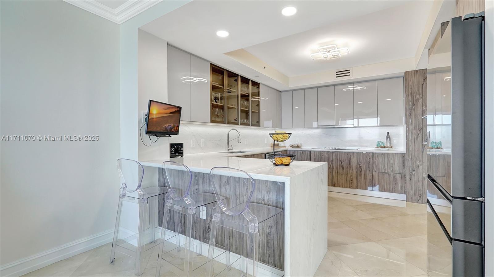 Extraordinary PENTHOUSE! Enter from private elevator foyer and immediately see the best ocean views over Golden Beach, intracoastal, golf/lake, & city views. This renovated spacious 3,264SQ FT residence is a 3 bedroom plus den or 4th bedroom, 4 baths, & 1 large utility room/ staff quarters, 2 New ACs. NEW NEW NEW state of the art gourmet kitchen just completed! Finest finishes, marble floors, throughout. Large primary suite with custom closets. Expansive terraces. A must see! Five Star Amenities: Pools, Gym, Media Rm, Library, Event Rm, Spa, Sauna, Nail Spa, Racquetball & Tennis Courts, Kid Rm, Teen Rm, Card Rm, & Private Hamptons Restaurant, Movie Theater, Cafe & More!
