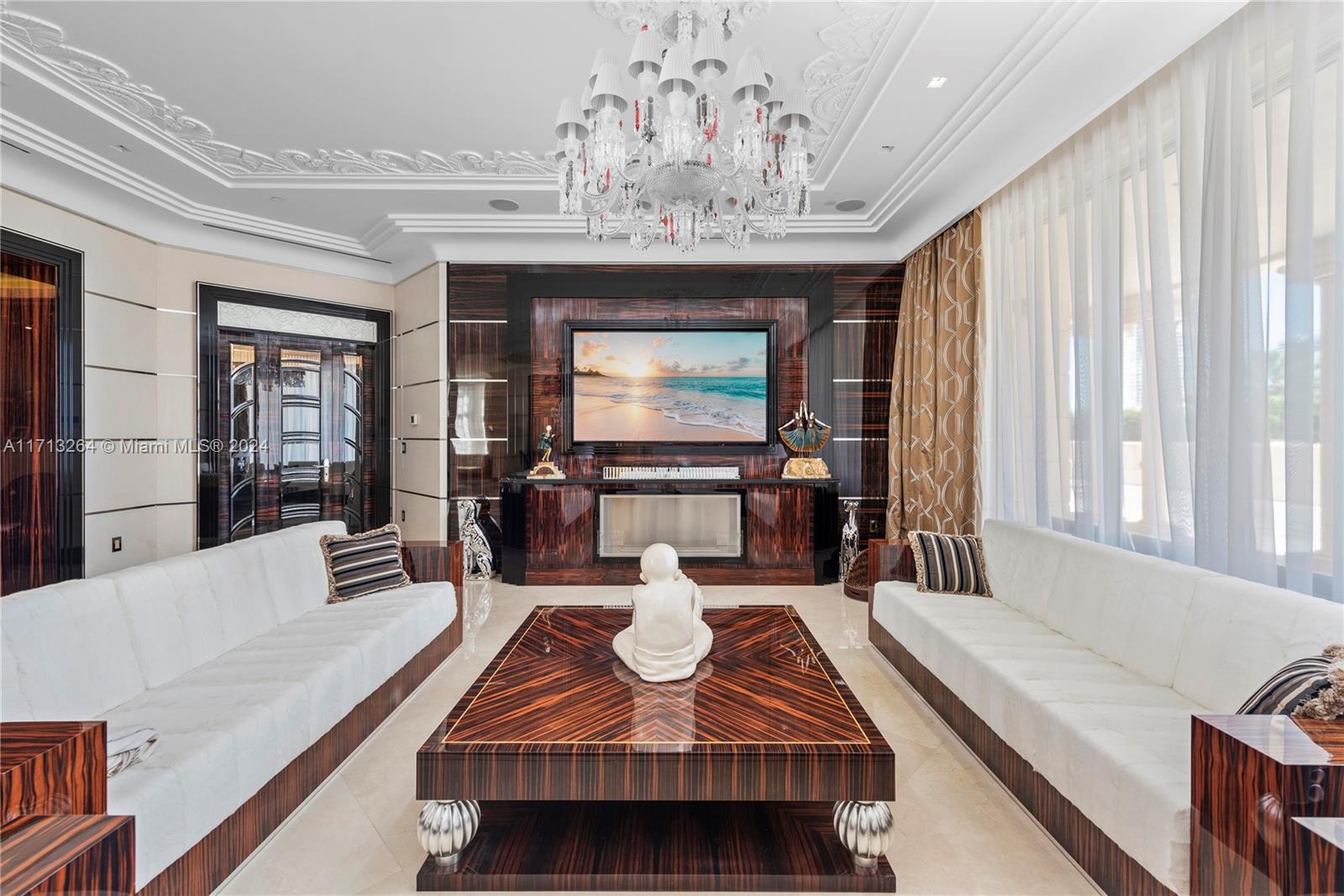 Welcome to a stunning palatial Lanai compound in the concierge building on Fisher Island featuring three residences connected by a private 7,000 sq. ft. terrace. With 6 bedrooms, including 4 in the principal residence, a 1-bedroom guest house, and a 1-bedroom apartment, this masterpiece offers 2 fireplaces, 3 kitchens, 3 living rooms, dining and breakfast rooms, 2 laundry rooms, and a study. Inspired by 1920s Art Deco elegance, it features Macassar wood, Lalique glass, and exquisite Baccarat chandeliers. Enjoy ocean views, 24-hour concierge, valet parking, an attended pool, a private gym, and a movie theater. Luxurious living at its finest!
