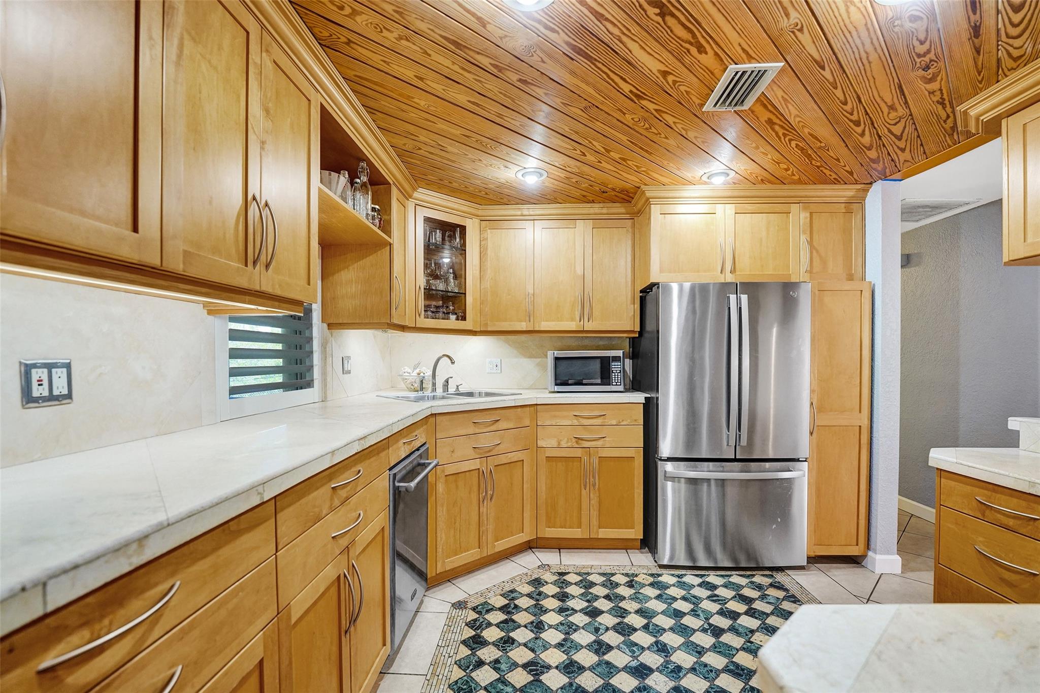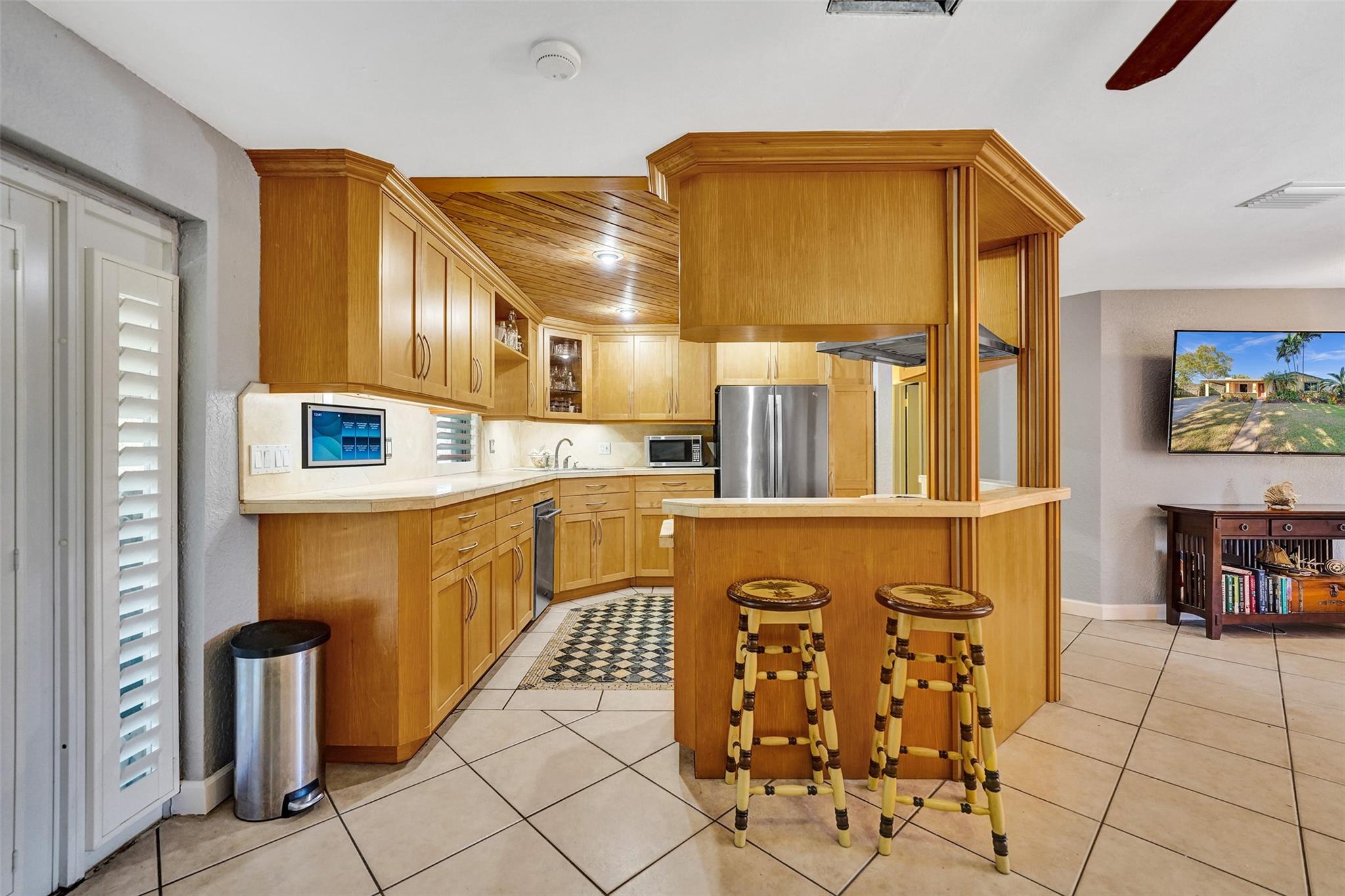 NO HOA! Unwind By The Water In Your Stunning Oasis! On A 1/5-Acre, This Property Has It All! New Roof! Fenced Pie Lot, 100' Waterfrontage w/ Direct Ocean Access & Boat Lift! Beautifully Landscaped w/ Mango & Avocado Trees Tie In The Tropical Feel As You Enjoy Time Spent On Your Tiki Hut, Fully Equip'd w/ TV, Bar Set Up & Custom Sunshades. Embark On A Water Adventure Right From Your Backyard! Inside, Features 3 Bedrooms, 2 Baths, Each Designed w/ Meticulous Attention To Detail & Custom Finishes. Impact Windows, Elegant Plantation Shutters & Fresh Paint Throughout. The Kitchen Is A Chef's Dream w/ Custom Maple Cabinetry, Deep Pots/Pans Draws, Pull-Out Pantry, Central Island w/ A Gas Stove & Newer SS Appliances. Utility Rm w/ Work Station. NO HOA! Bring Your Boat & Kayaks!