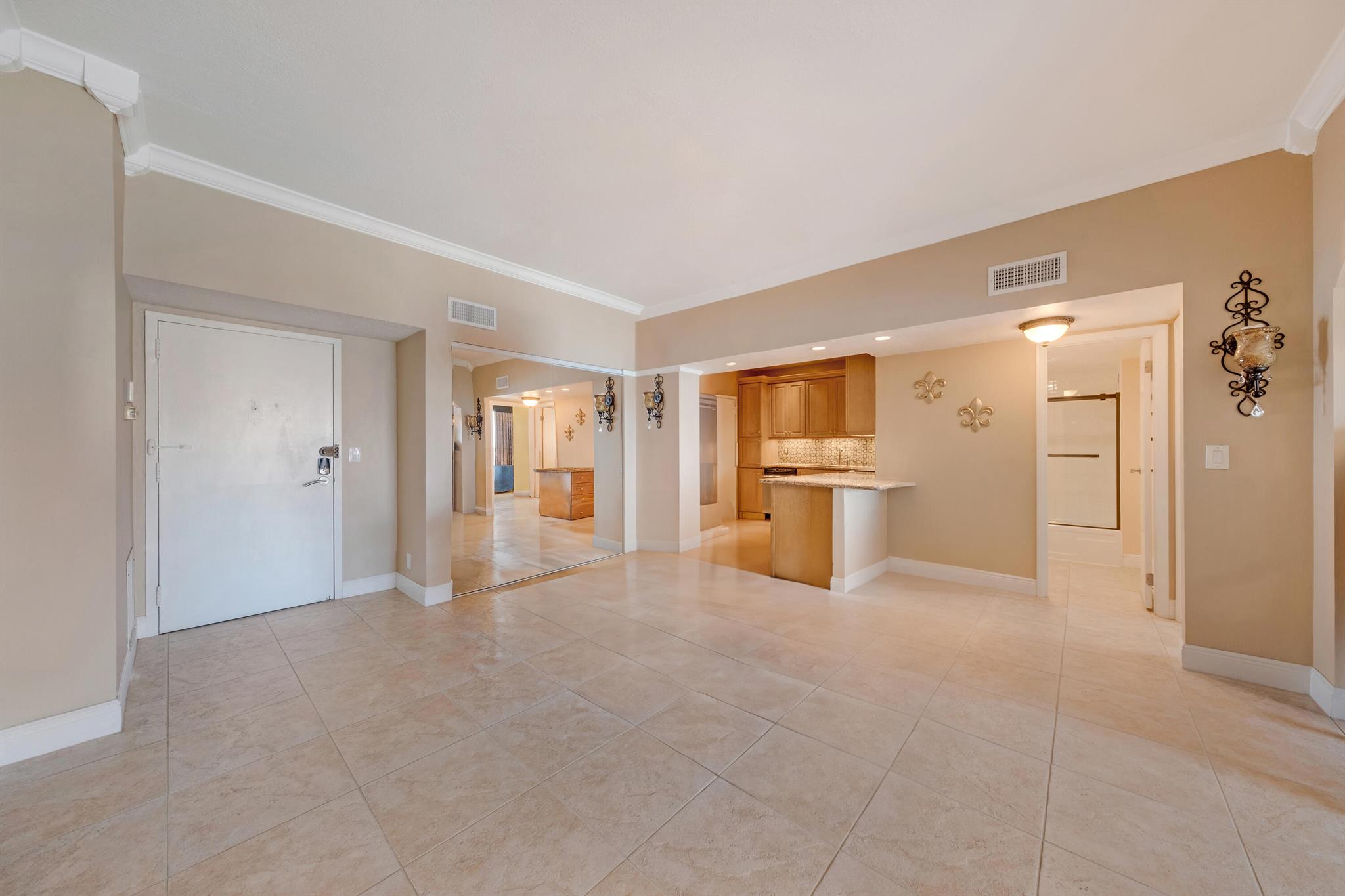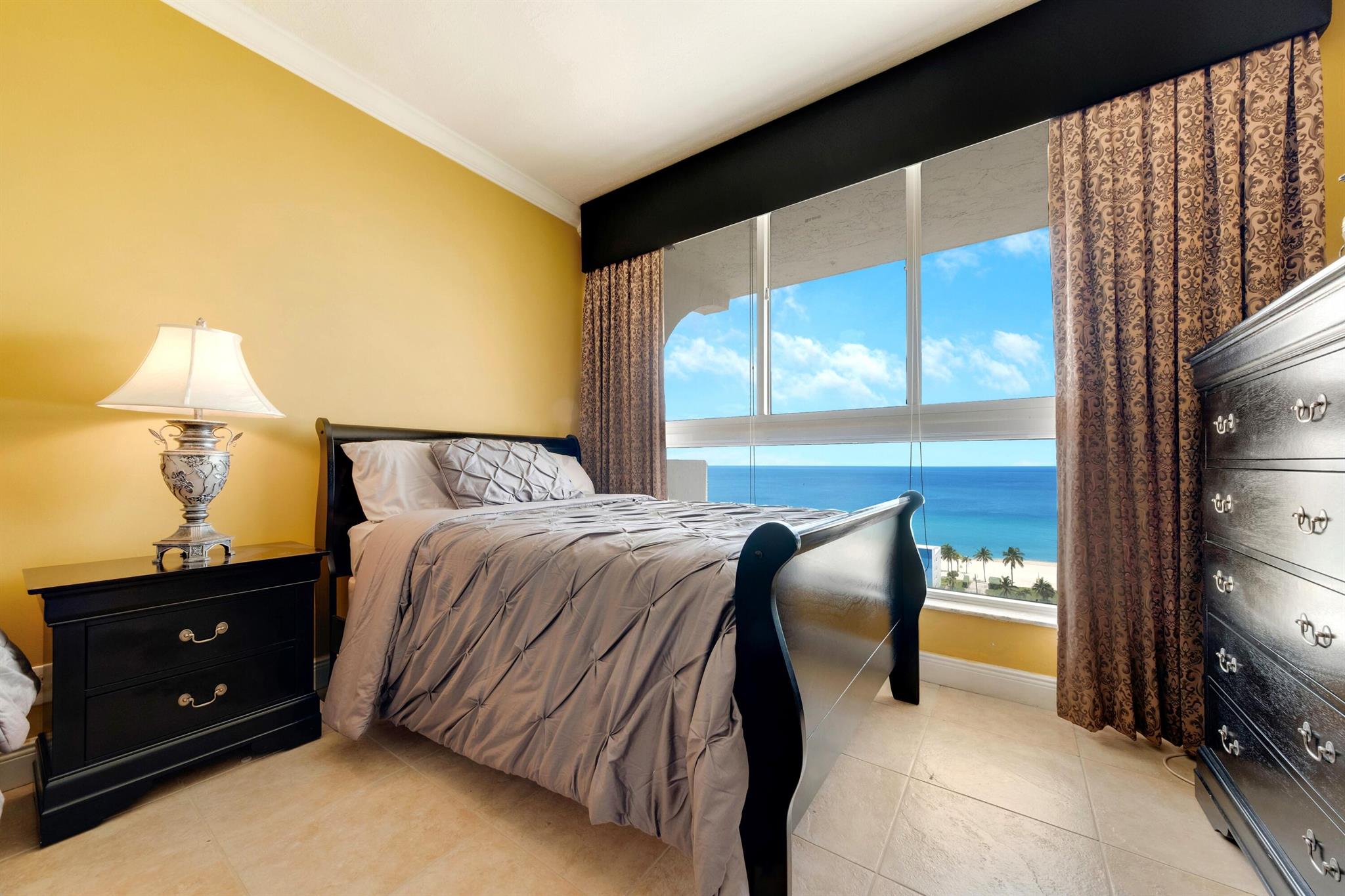 DIRECT OCEAN VIEWS FROM EVERY ROOM. Two large bedrooms with two full baths in an open space, split floorplan penthouse. Lots of designer touches, crown moldings, high ceilings and breathtaking unobstructed ocean views from every room. This unit comes with a covered parking spot located 3 spots from the front door, plus the building offers security, lots of amenities while close to great shops, restuarants, the broadwalk and fun. Motived seller!