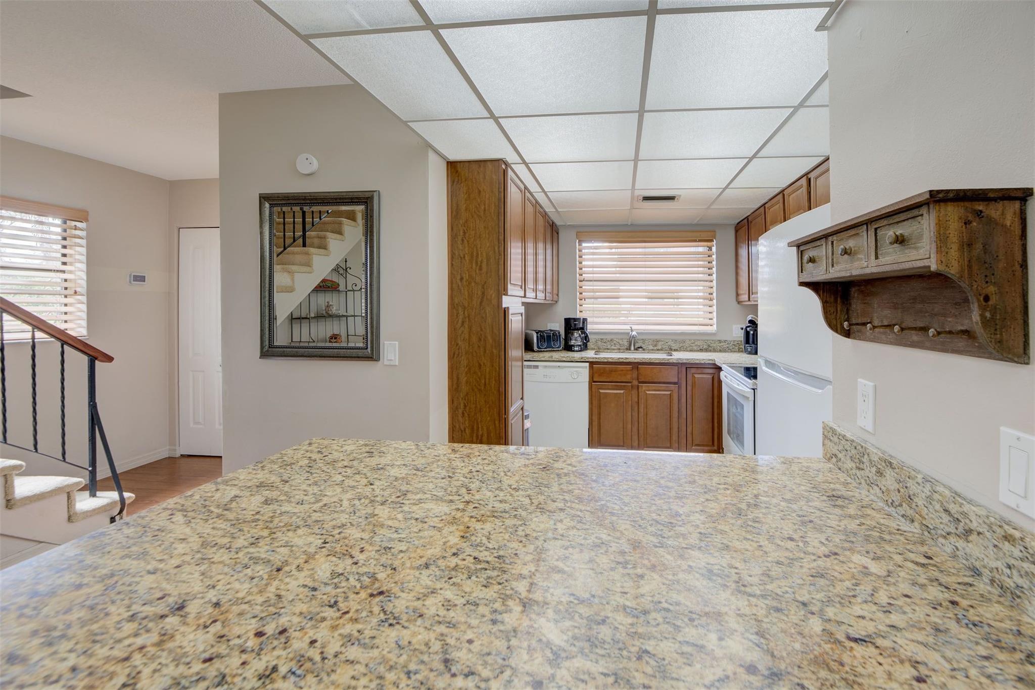 Corner unit with golf view!!! 2-story townhome in prime East Hollywood location close to the beach!! Open floor plan, Updated Kitchen with granite counters, half bath on the first floor, and a beautifully updated master bathroom on the 2nd floor. Private balcony off the master bedroom, large screened room with utility room and full size washer & dryer, tons of storage/closet space including master walk-in closet. The roof was replaced in 2021. Accordion hurricane shutters and parking spaces right in front of the unit. No leasing for 2 years. Low monthly maintenance $365.
