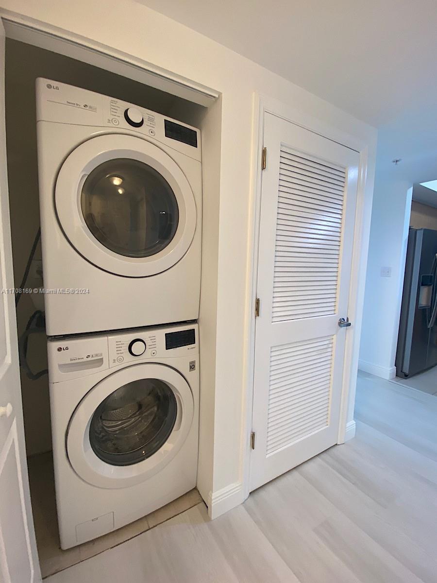 This stylish 2-bedroom, 2-bath condominium in Downtown Hollywood offers stunning pool views from every room and a private balcony. Recently upgraded w new LVT flooring and baseboards and fresh paint, the unit also features newly installed central air conditioning system, washer/dryer, SS refrigerator, stainless steel appliances, & granite kitchen countertop. Enjoy full-service amenities: pool, jacuzzi, gym, sports lounge, 24/7 front desk, valet parking available, bike storage, and much more. Utilities like water, trash, sewer, basic cable included in HOA fees. Deeded two assigned covered parking. Don't miss this exceptional offering in a prime location.