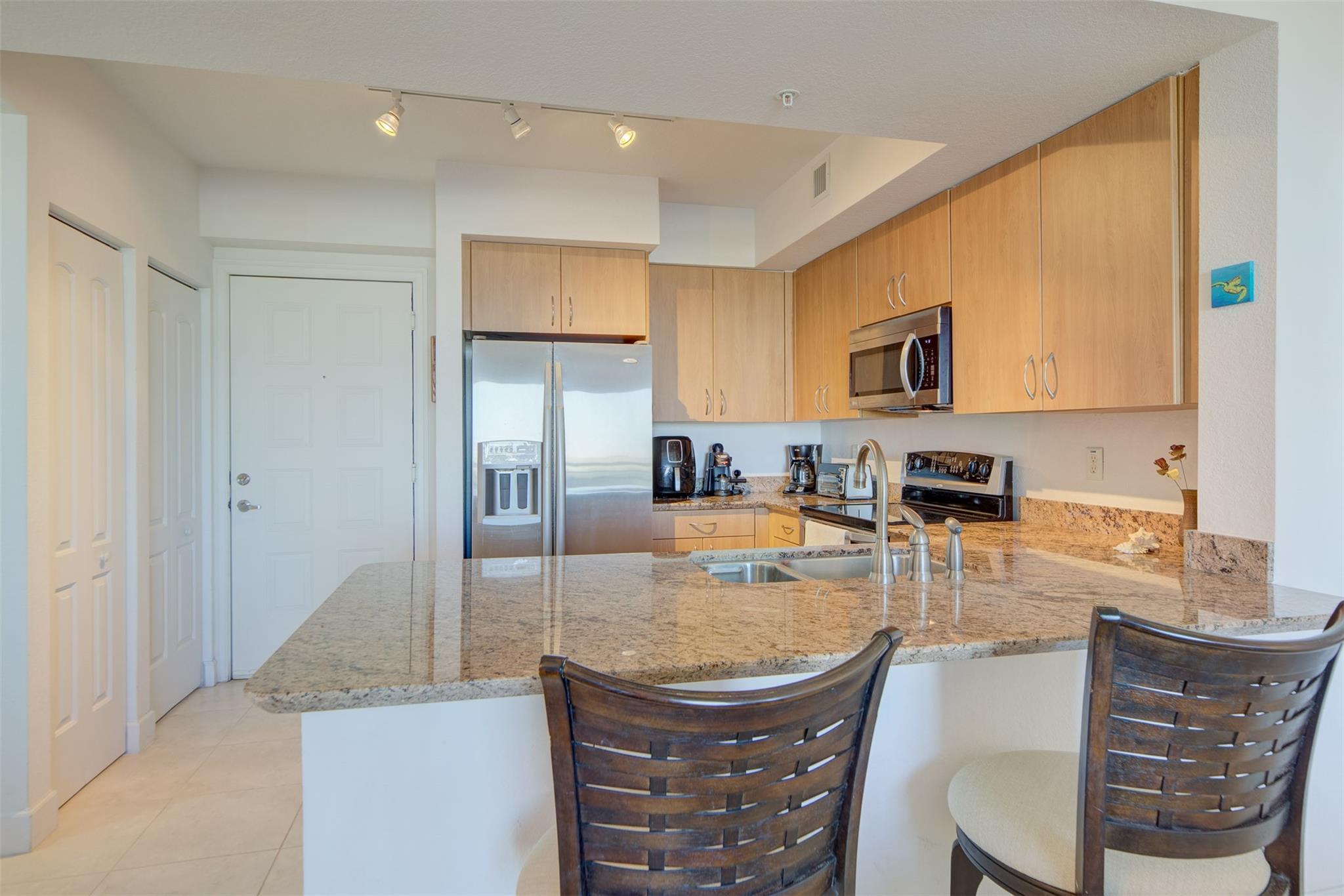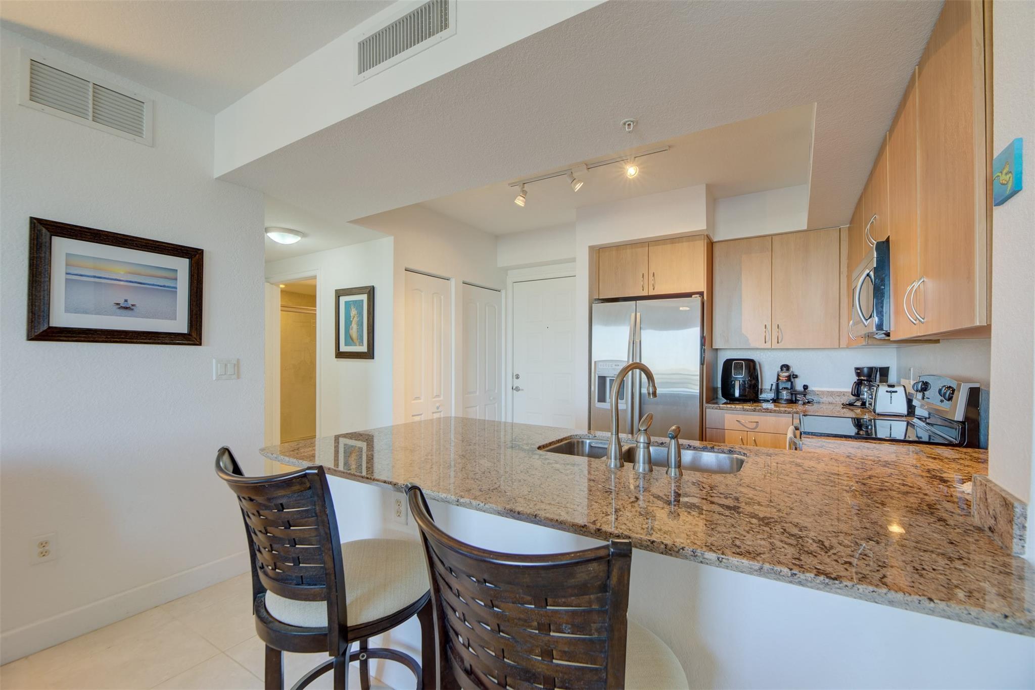 Discover urban luxury in this impeccably maintained 2 bedroom, 2 bathroom condo located in a boutique style building in the heart of downtown Hollywood. Boasting a desirable split-bedroom floor plan, this residence ensures privacy and functionality. Here you will also find a kitchen that opens up to the living area and your private north-facing balconies. The building's upscale amenities include a stunning rooftop pool, a fitness center, a sauna for ultimate relaxation, 24 hour security for peace of mind , and on site management for your convenience. Experience the vibrant downtown lifestyle with restaurants, shopping and entertainment just steps away. Parking space is also located on the same floor as unit providing easy access.