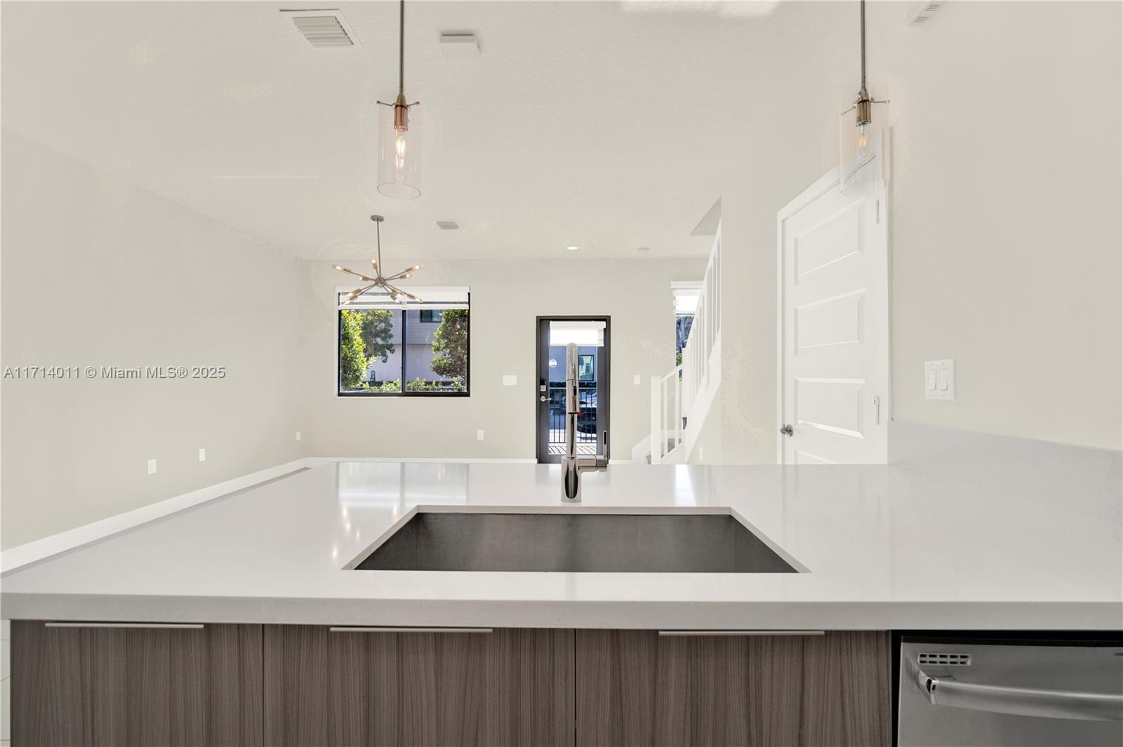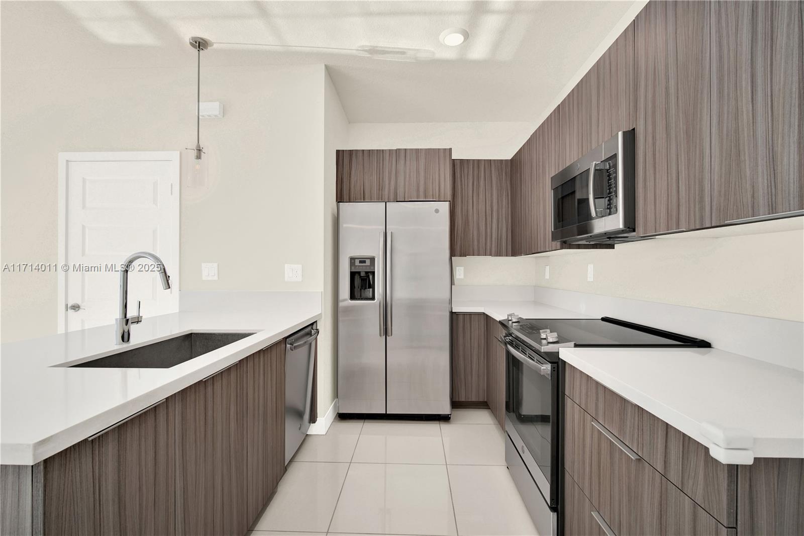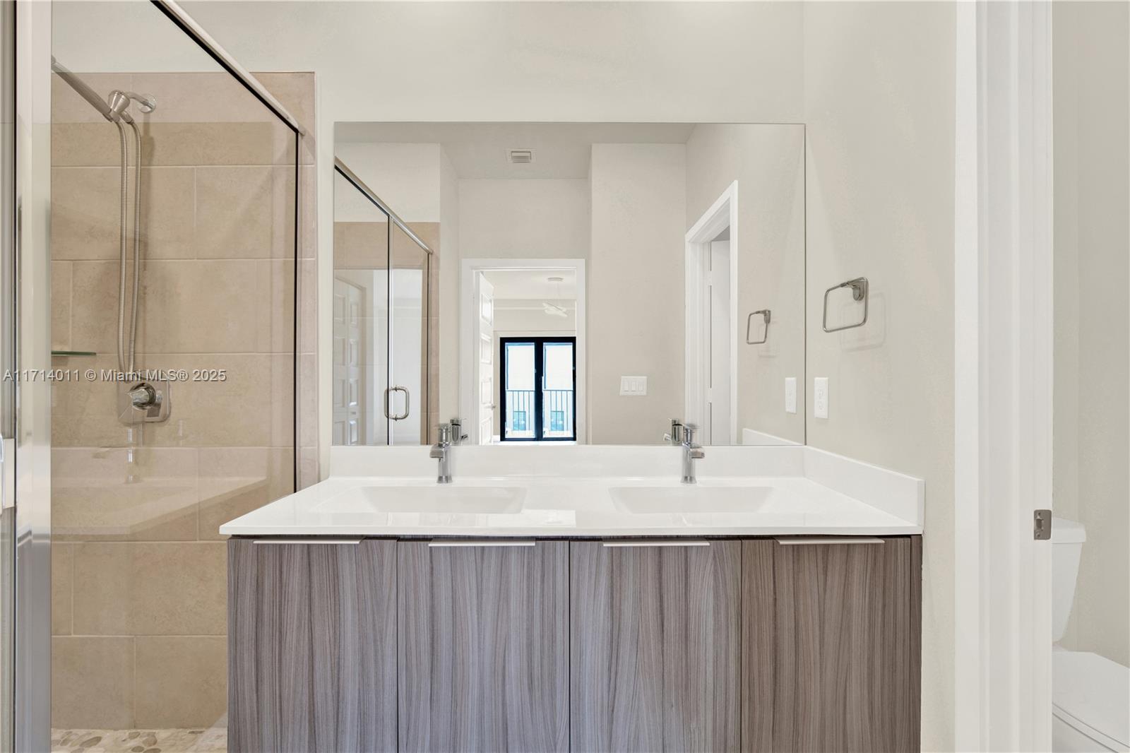 Spectacular Three-level townhouse located in the heart of Downtown Doral. 2 car garage. 1st floor open floor plan with beautiful modern kitchen, quartz counter tops & stainless steel appliances. 2nd floor boasts master suite with his & her walking closets, 2 additional bedrooms that share a full bath, full size washer & dryer. Top floor has a bonus room that could be used as family room,home office, media room or play room, half bath & 2 roftop terraces. Impact windows, tile floors throughout & carpet stairs, Urbana clubhouse offers swimming pool, fitness center, basketball courts, running track & children's splash pad. Walking distance to restaurants, shops & more.