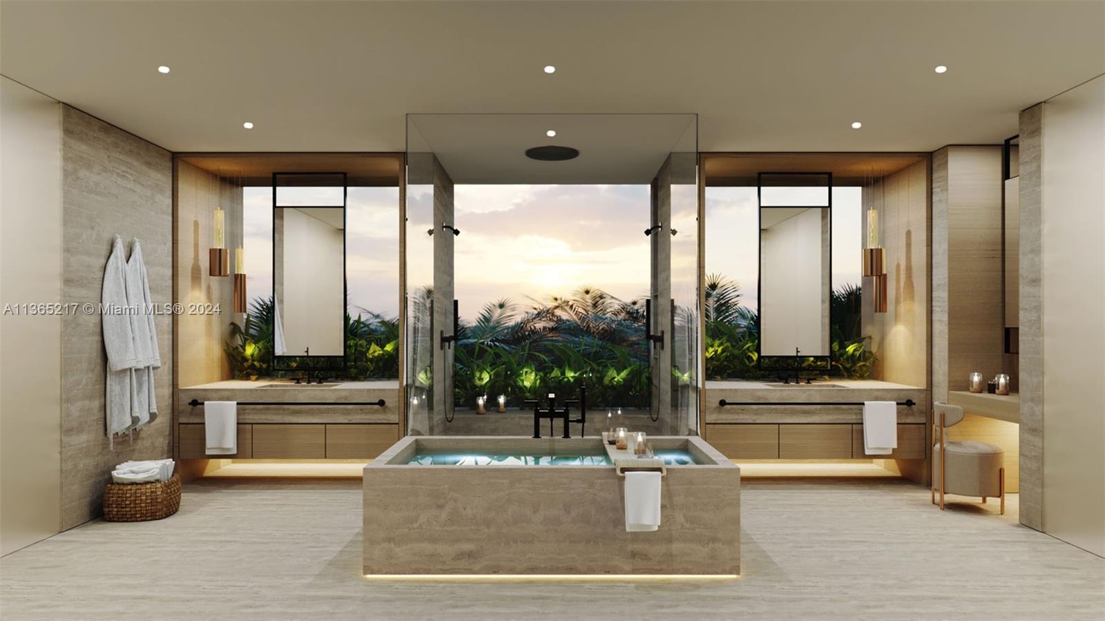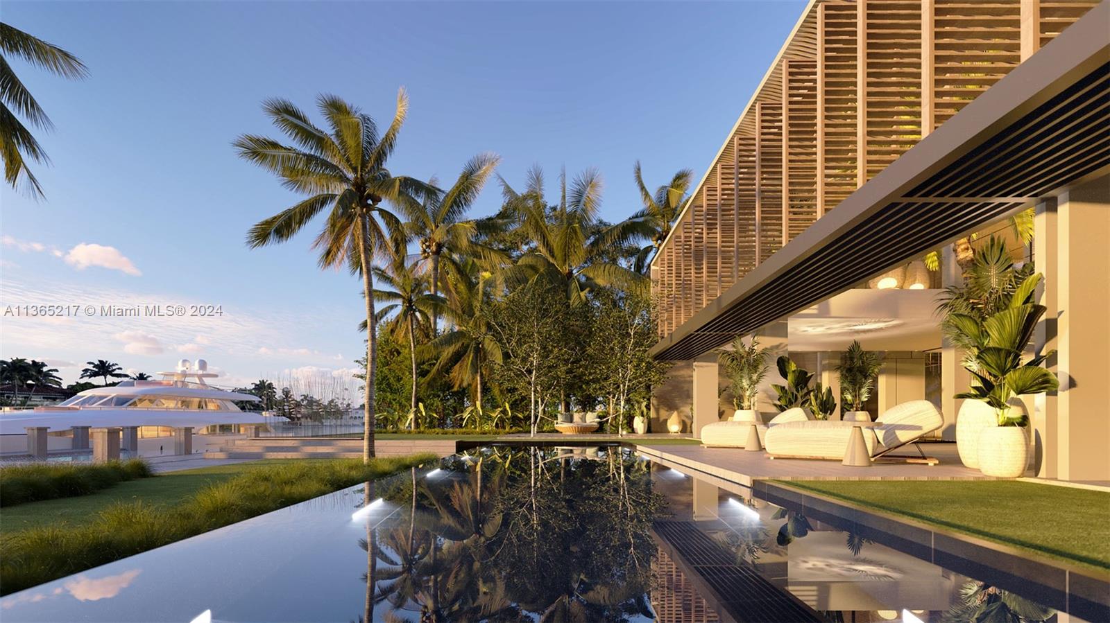 The only new construction modern waterfront home in Bal Harbour. 56 Bal Bay merges indoor & outdoor spaces, creating a tropical retreat that emphasizes nature in every corner. Sitting on a 21,225-SF lot, the 10,034 SF home boasts 100' of water frontage and 7 BD, 8+1 BA. Features include a primary bedroom with his & hers walk-in closets, six additional suites, an office studio, spa, gym, & steam bath. The smart home will include a rooftop with outdoor kitchen & fire pit, wine cellar, home theater, game room, infinity edge pool with hot tub, dock and boat lift & 3-car garage. The two-story home is designed by a collection of starchitects including architecture by Farid Chacón of NMD NOMADAS, interior design by Fanny Haim & landscape design by CLAD. Estimated Completion August of 2024.