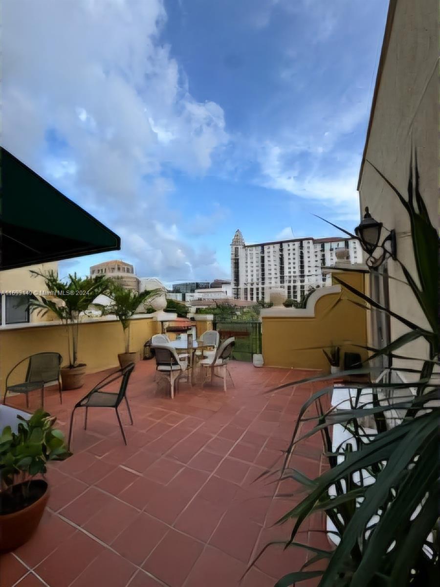 A JEWEL IN THE HEARTOF CORAL GABLES. ONE BEDROOM WITH LARGE WALK-IN CLOSET AND MASTER BATHROOM WITH BEAUTIFUL WHIRLPOOL TUB PLUS SECOND HALF-BATHROOM FOR GUESTS. VERY HUGE PRIVATE TERRACE WITH VIEWS OF DOWNTOWN CORAL GABLES.BRAND NEW (never used) REFRIGERATOR. CLOTHES WASHER AND DRYER IN UNIT. ASSIGNED GARAGE PARKING SPACE PLUS STORAGE UNIT INCLUDED.WALK TO SHOPS, RESTAURANTS, GYMS, MUSEUMS, THEATERS AND FREE TROLLEY, IN FREEBEE