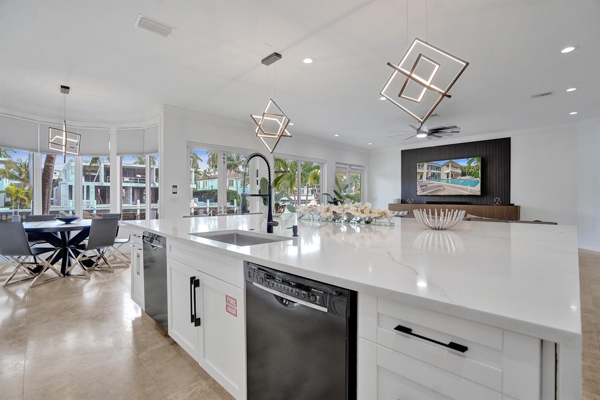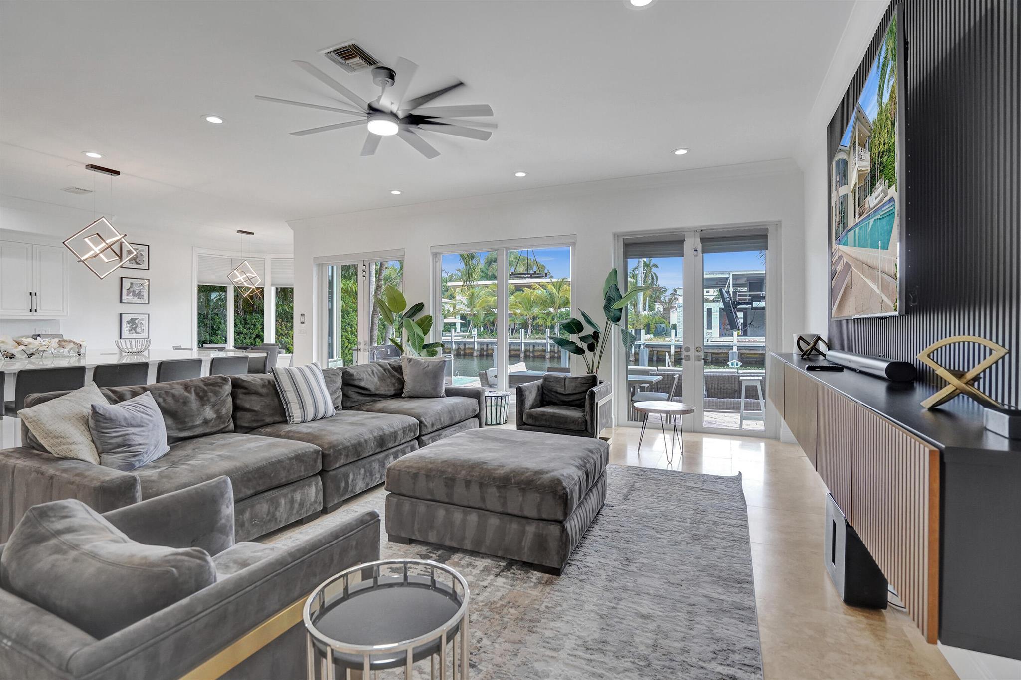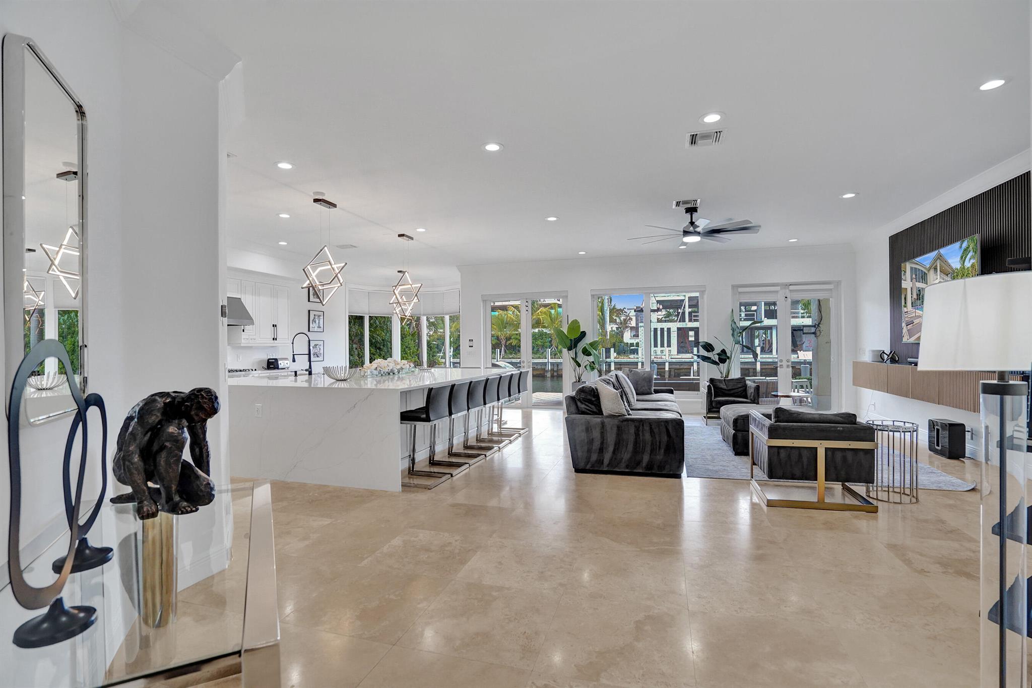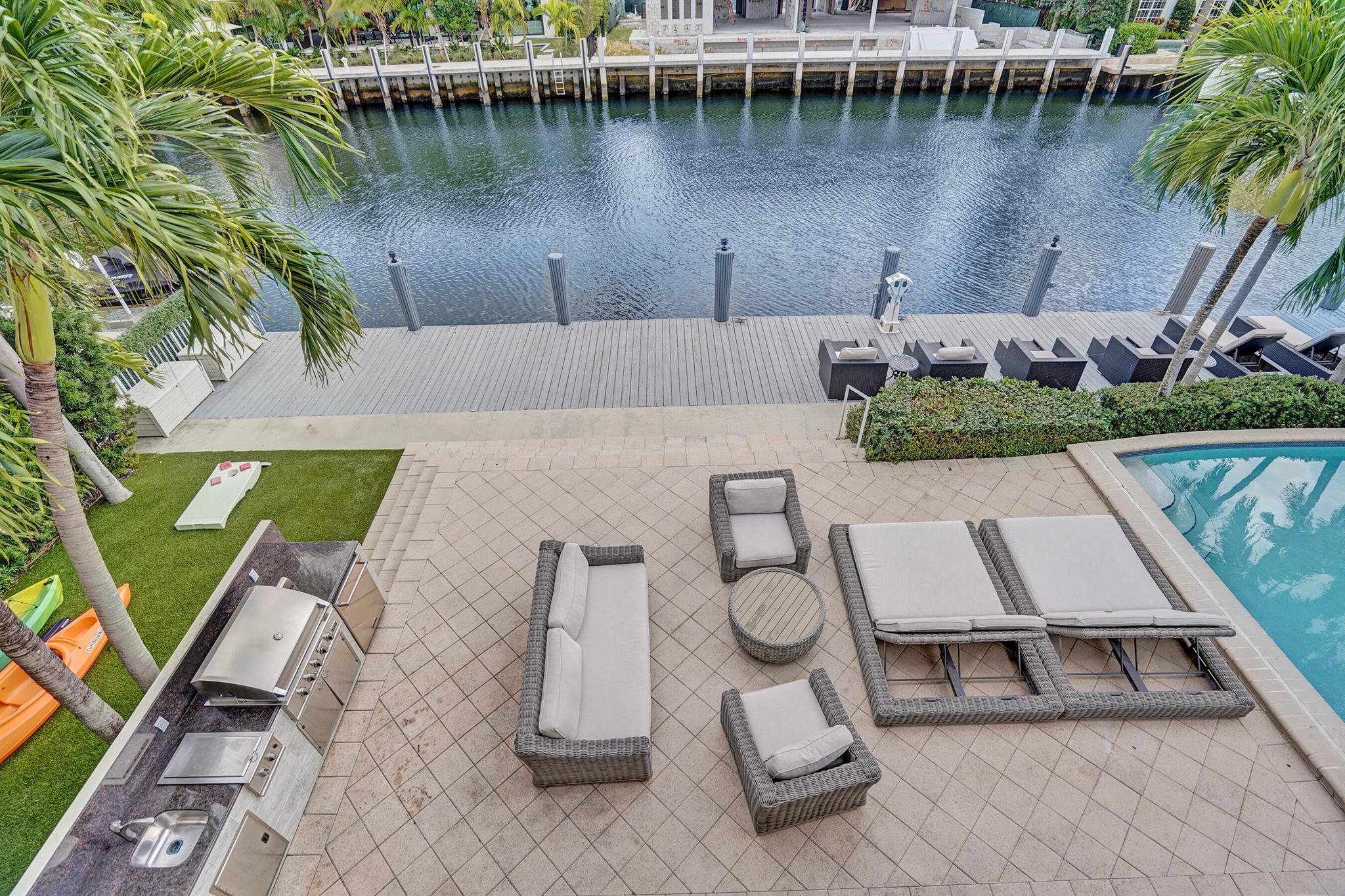 Welcome to 30 Fiesta Way, a stunning waterfront single-family residence nestled in the heart of Fort Lauderdale, This expansive 5,510 square-foot home offers a luxurious lifestyle with its spacious layout & elegant design. Boasting seven bedrooms & six bathrooms, this property provides ample space for family & guests, ensuring comfort & privacy for everyone. As you enter, you are greeted by a grand foyer that leads to an open-concept living area, perfect for entertaining. The home's design seamlessly blends modern amenities with timeless elegance, featuring high ceilings, large impact windows, & exquisite finishes throughout. The gourmet kitchen is a chef's dream, equipped with top-of-the-line appliances & huge center island making it ideal for culinary adventures. Huge pool & 85' dock.