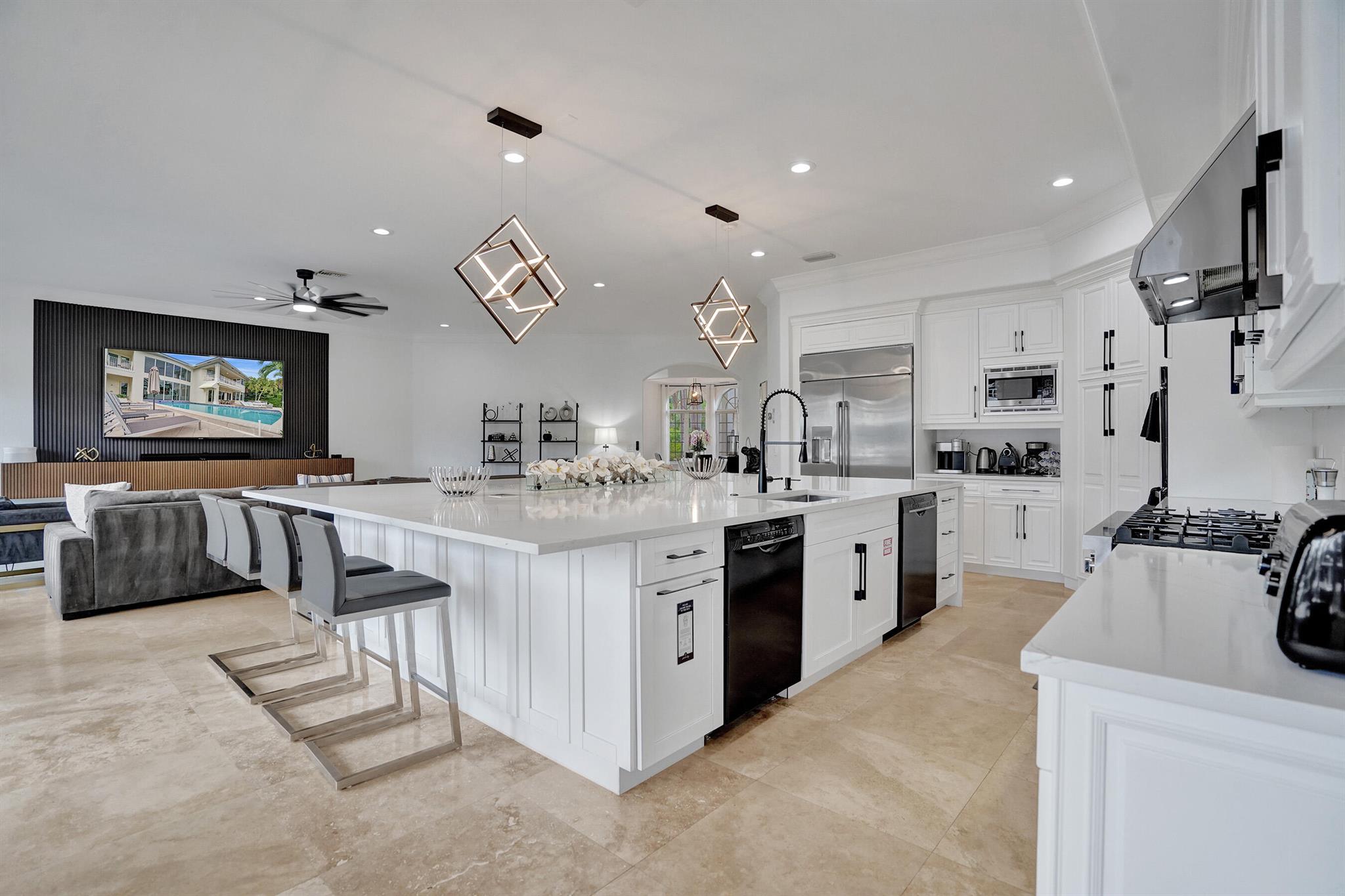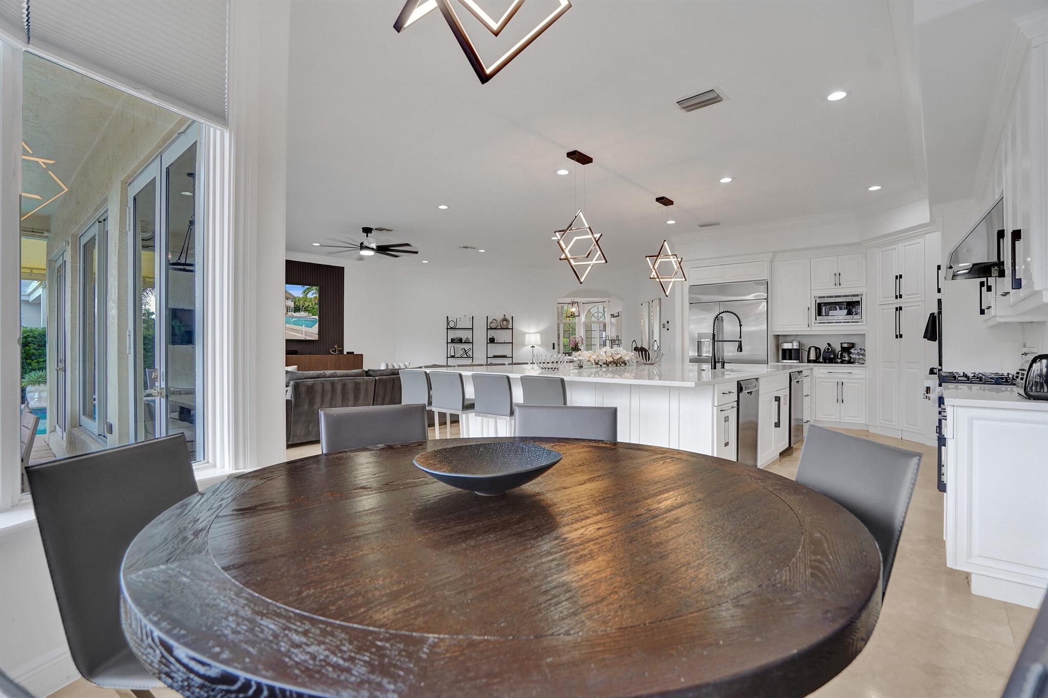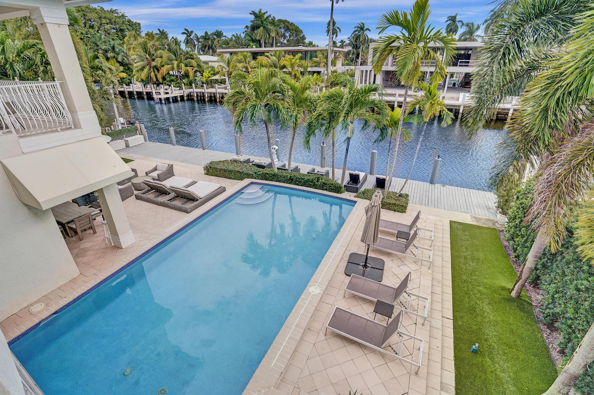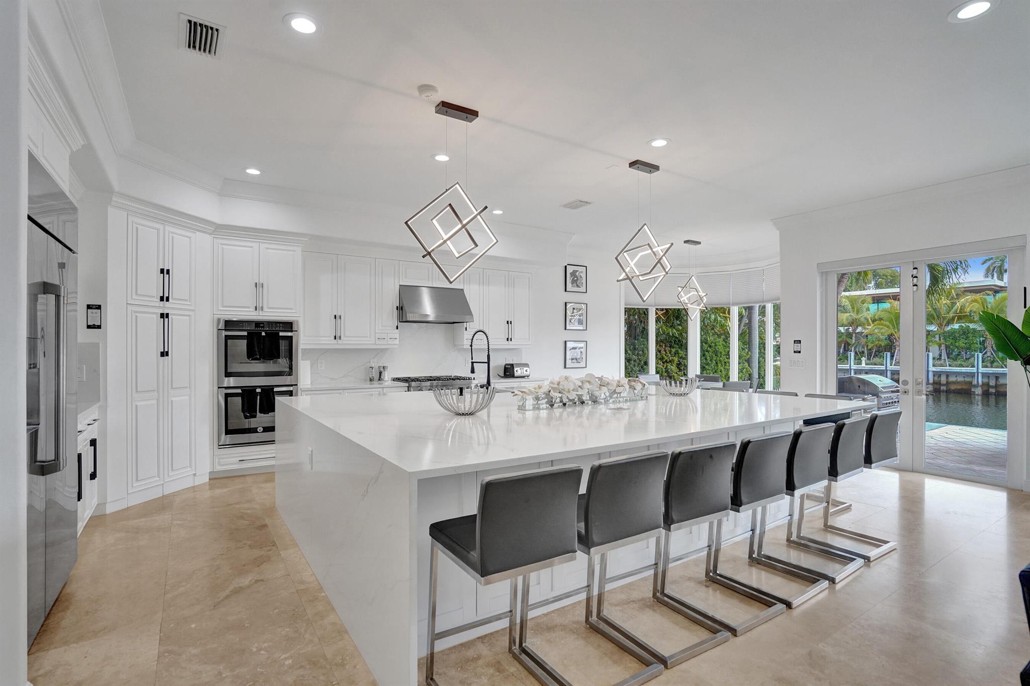 Welcome to 30 Fiesta Way, a stunning waterfront single-family residence nestled in the heart of Fort Lauderdale, This expansive 5,510 square-foot home offers a luxurious lifestyle with its spacious layout & elegant design. Boasting seven bedrooms & six bathrooms, this property provides ample space for family & guests, ensuring comfort & privacy for everyone. As you enter, you are greeted by a grand foyer that leads to an open-concept living area, perfect for entertaining. The home's design seamlessly blends modern amenities with timeless elegance, featuring high ceilings, large impact windows, & exquisite finishes throughout. The gourmet kitchen is a chef's dream, equipped with top-of-the-line appliances & huge center island making it ideal for culinary adventures. Huge pool & 85' dock.
