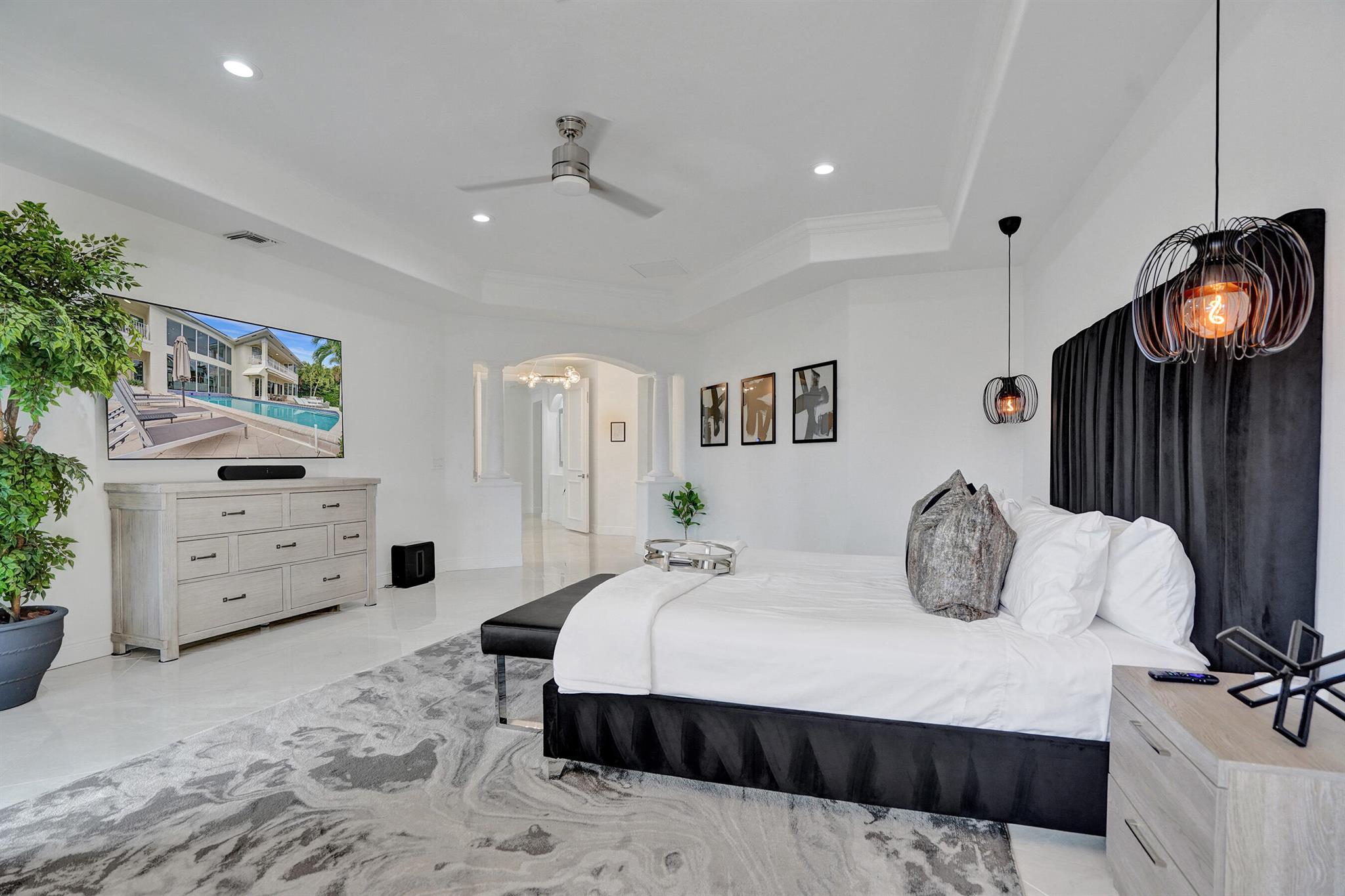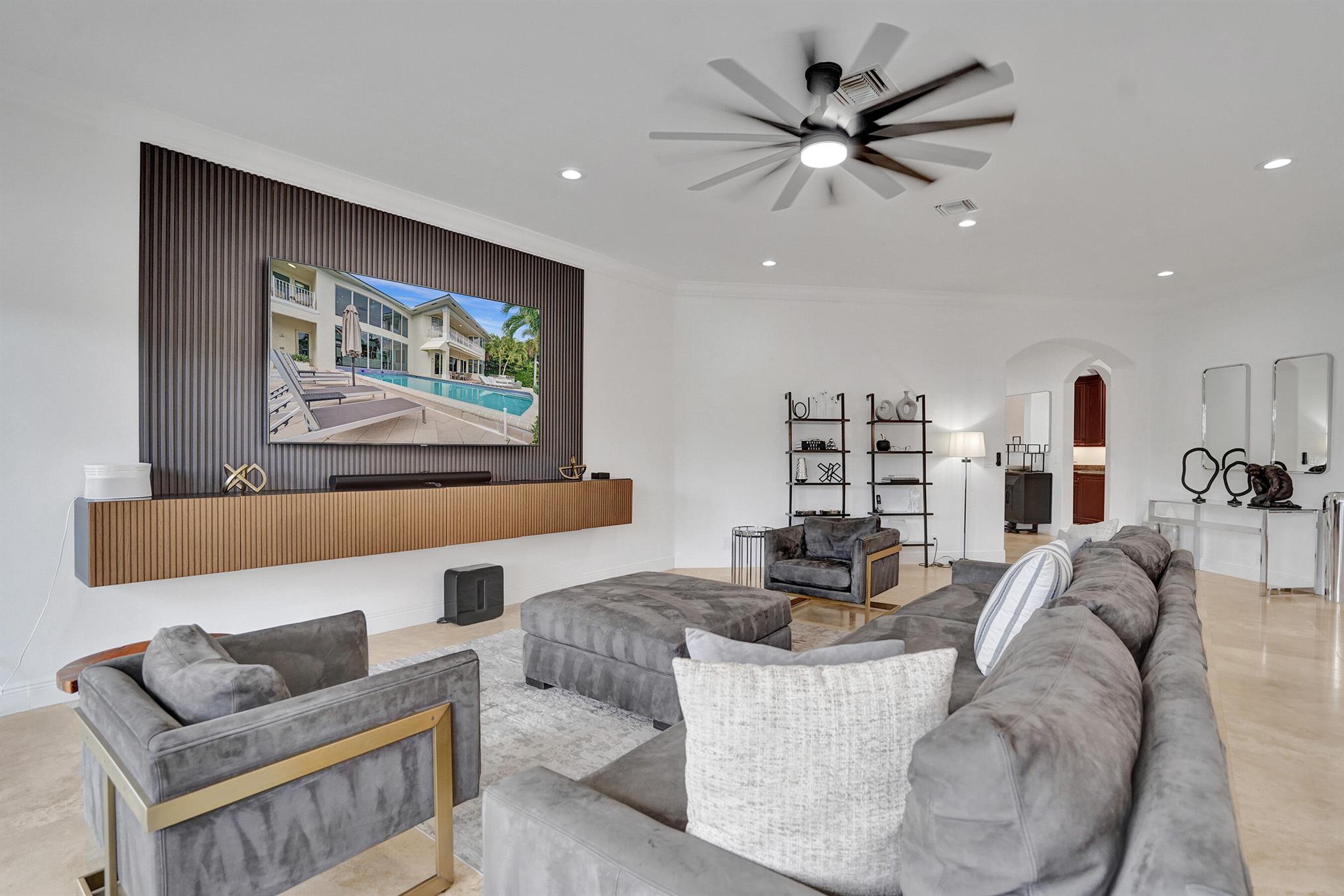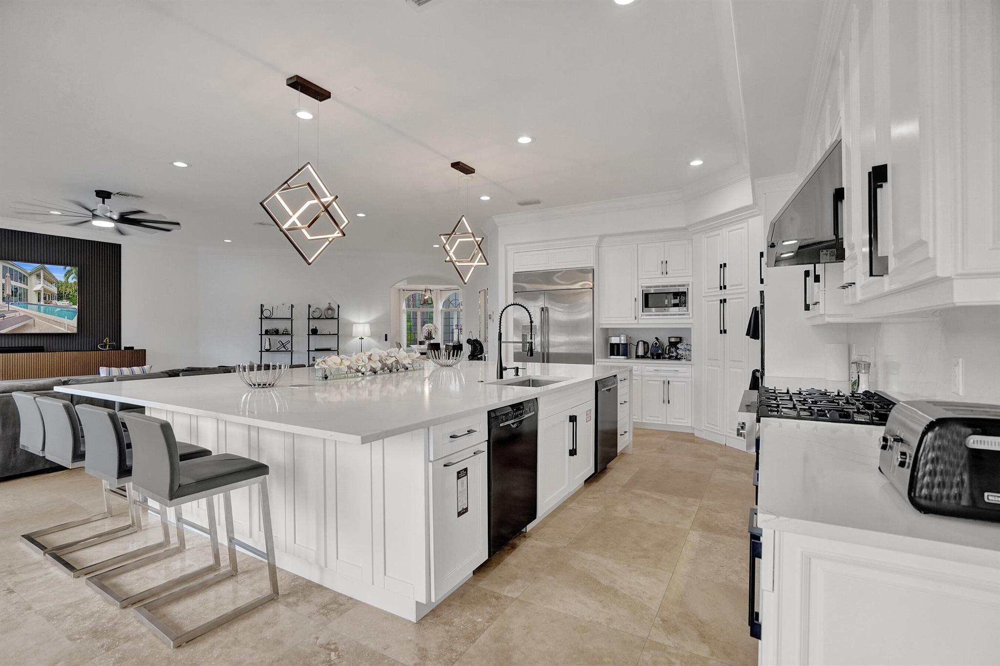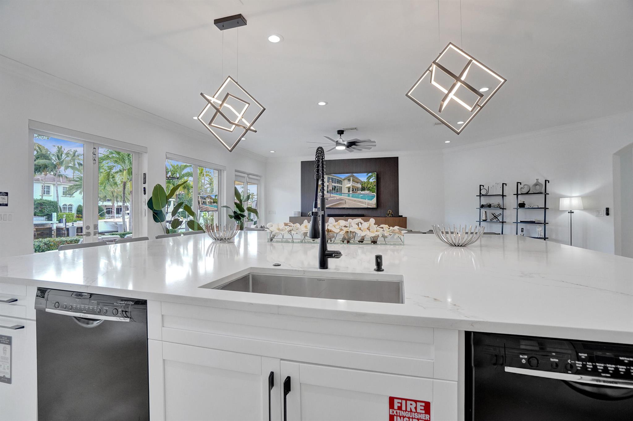 Welcome to 30 Fiesta Way, a stunning waterfront single-family residence nestled in the heart of Fort Lauderdale, This expansive 5,510 square-foot home offers a luxurious lifestyle with its spacious layout & elegant design. Boasting seven bedrooms & six bathrooms, this property provides ample space for family & guests, ensuring comfort & privacy for everyone. As you enter, you are greeted by a grand foyer that leads to an open-concept living area, perfect for entertaining. The home's design seamlessly blends modern amenities with timeless elegance, featuring high ceilings, large impact windows, & exquisite finishes throughout. The gourmet kitchen is a chef's dream, equipped with top-of-the-line appliances & huge center island making it ideal for culinary adventures. Huge pool & 85' dock.