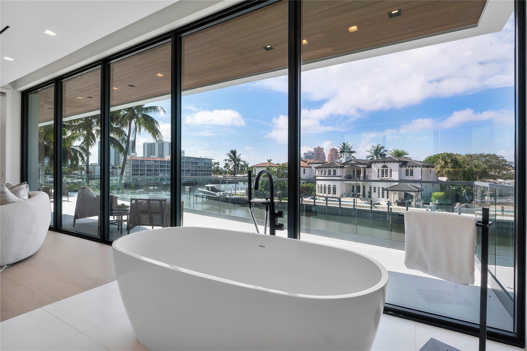 Welcome to Palazzo Corallino! This Incredible 3-Story Modern Resort Sanctuary is Perfectly Designed to Inspire the Highest Level of Luxury Waterfront Living to Ever be Delivered in Ft Lauderdale's Coral Ridge Community. Exceptionally Positioned on a Prime Oversized Lot, Southeast Exposure, 1 off the point, on 153 feet of waterfront in a no wake zone. This Supreme Zen Compound offers the Ultimate Indoor/Outdoor Living Experience Sprawling 12,976 sq ft of total living area, hosting 6 Bedrooms, 8 Baths, Club Room, Home Gym, Office, Spa w/Sauna/Cold Plunge, 3rd Floor Media Entertainment Room w/ Roof Top Sky Lounge, Chef Kitchen, Butler Kitchen, Private Crew/Staff Quarters on 1st Floor, Flow Through 4 Car Garage. Expansive Backyard Resort with Enormous Pool, Swim up Dock Bar, Summer Kitchen!