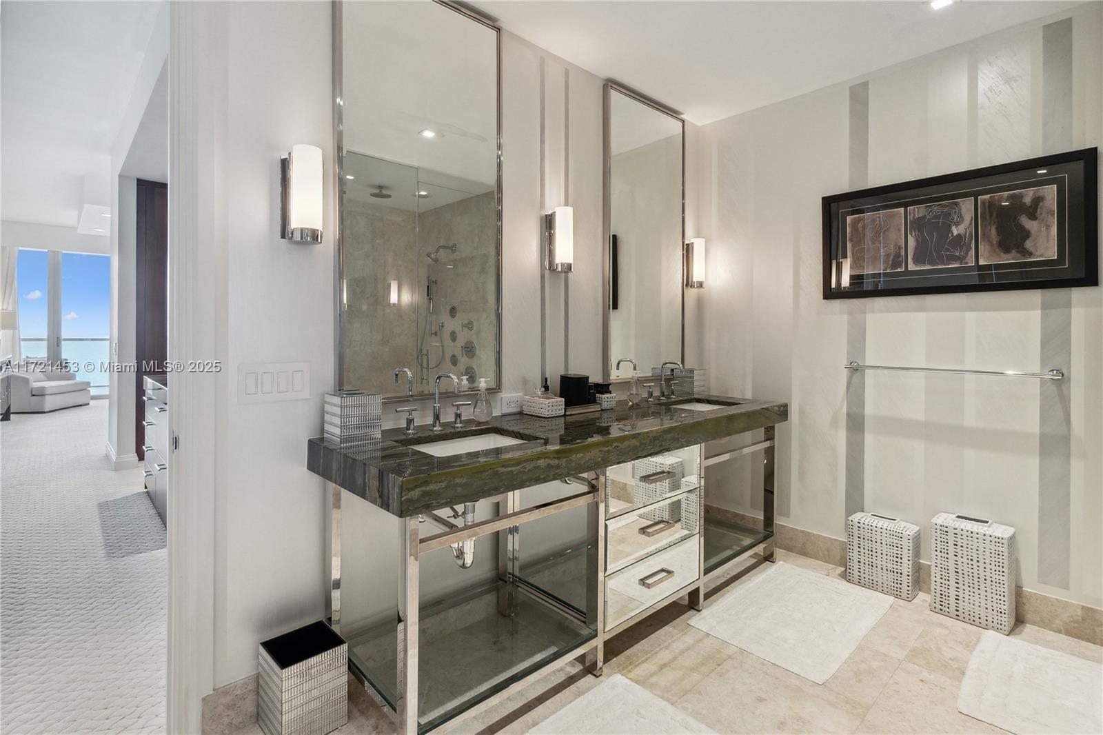 Welcome to St Regis Residences #1102, a remarkable property offered turnkey, thoughtfully furnished and decorated. This 3 bedroom /3.5 bathroom features a flow-through floor plan with direct views to the ocean and the Intracoastal, to enjoy both sunrise and sunset from the expansive terraces, perfect for entertaining and relaxing. Enjoy the ocean breeze from the primary suite and the second bedroom, and the skyline views from the dining room and second bedroom. Located across from the renowned Bal Harbour Shops and its many delicious restaurants, the St Regis brand is a synonym of a true luxury experience with the exclusive 5-star butler service, multiple exquisite dining options, 3 swimming pools, 3 gyms, full-service spa and beach service.
