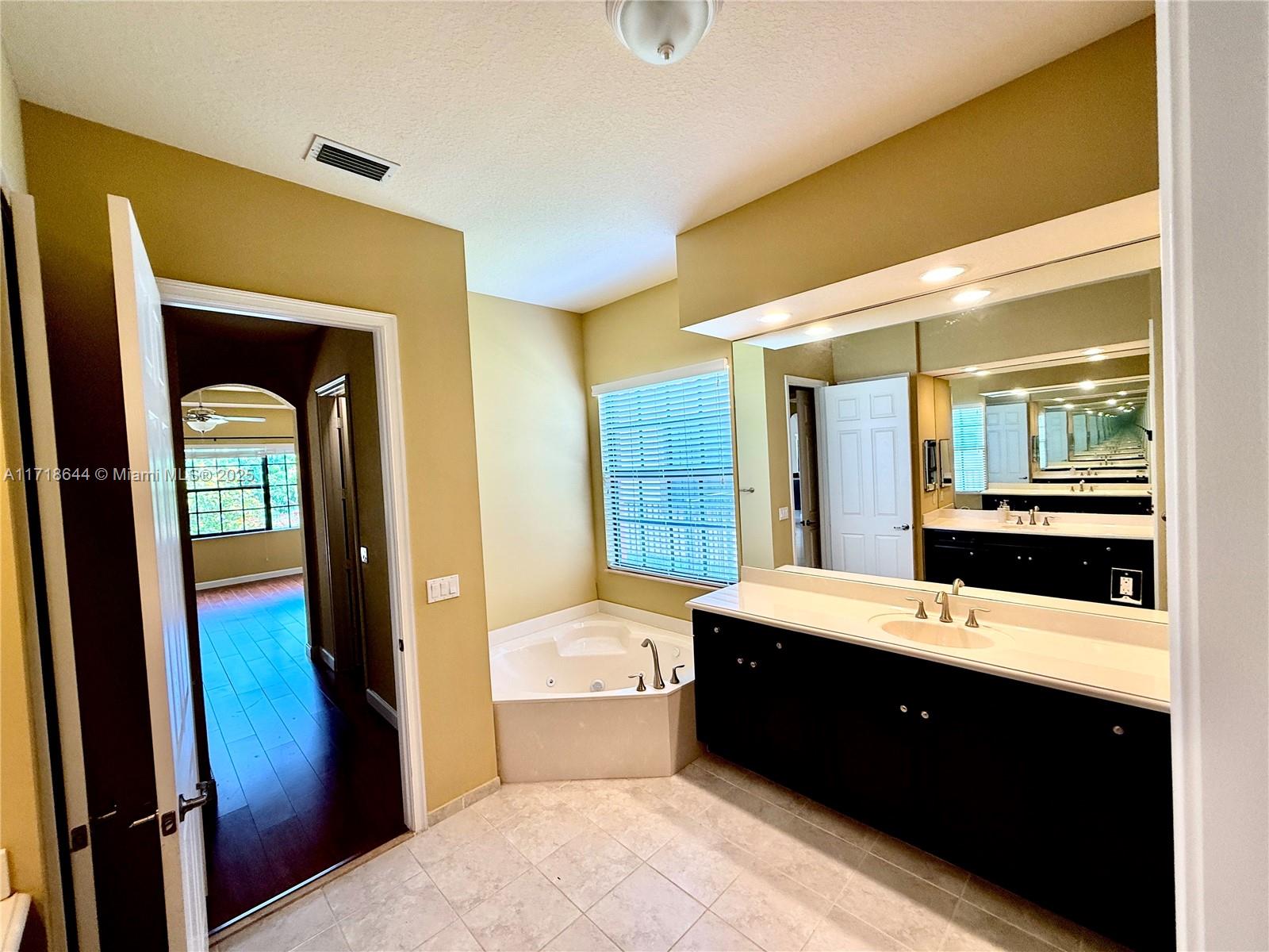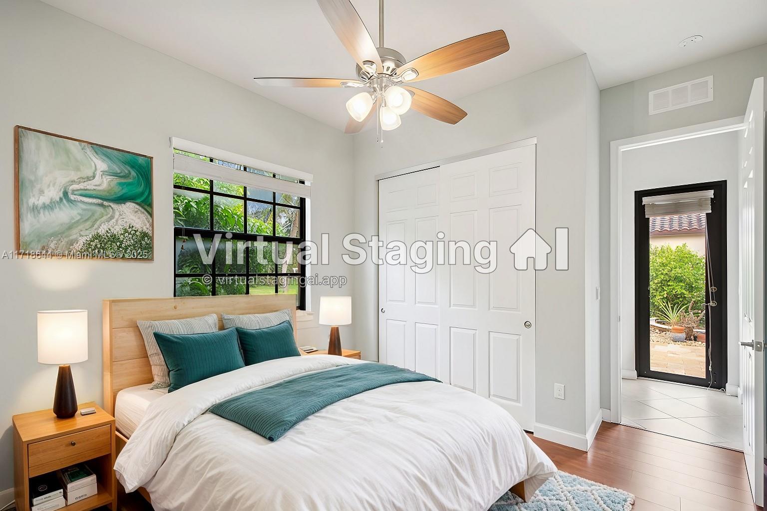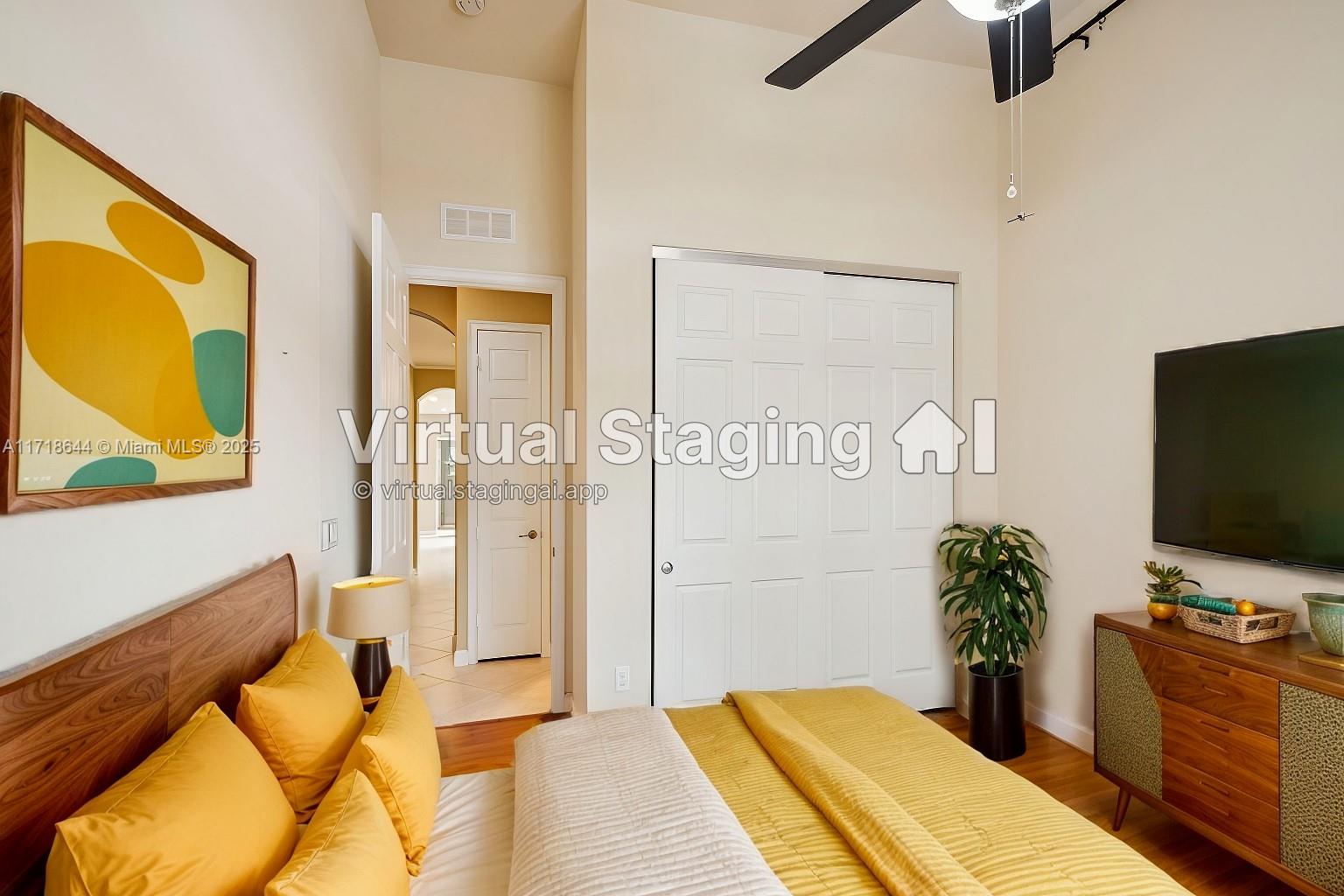 Welcome to 8771 NW 41st Street, Cooper City, This 4-bedroom 3-bathroom home totals 3411 sqft with 2480 sq ft under AC. Located in the executive Estada community at Monterra. This residence offers volume ceilings, a covered back porch, and full impact windows. The home features dual garages with space for three vehicles and a flexible layout with a rear bedroom ideal for in-laws or guests. Step outside, where water shimmers beyond the covered patio. with plenty of room to add a pool. Every detail supports relaxed, elegant living in one of Cooper City's most desirable neighborhoods.