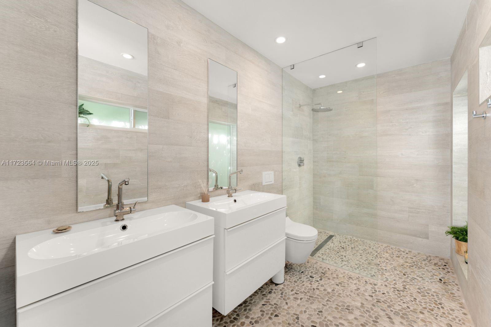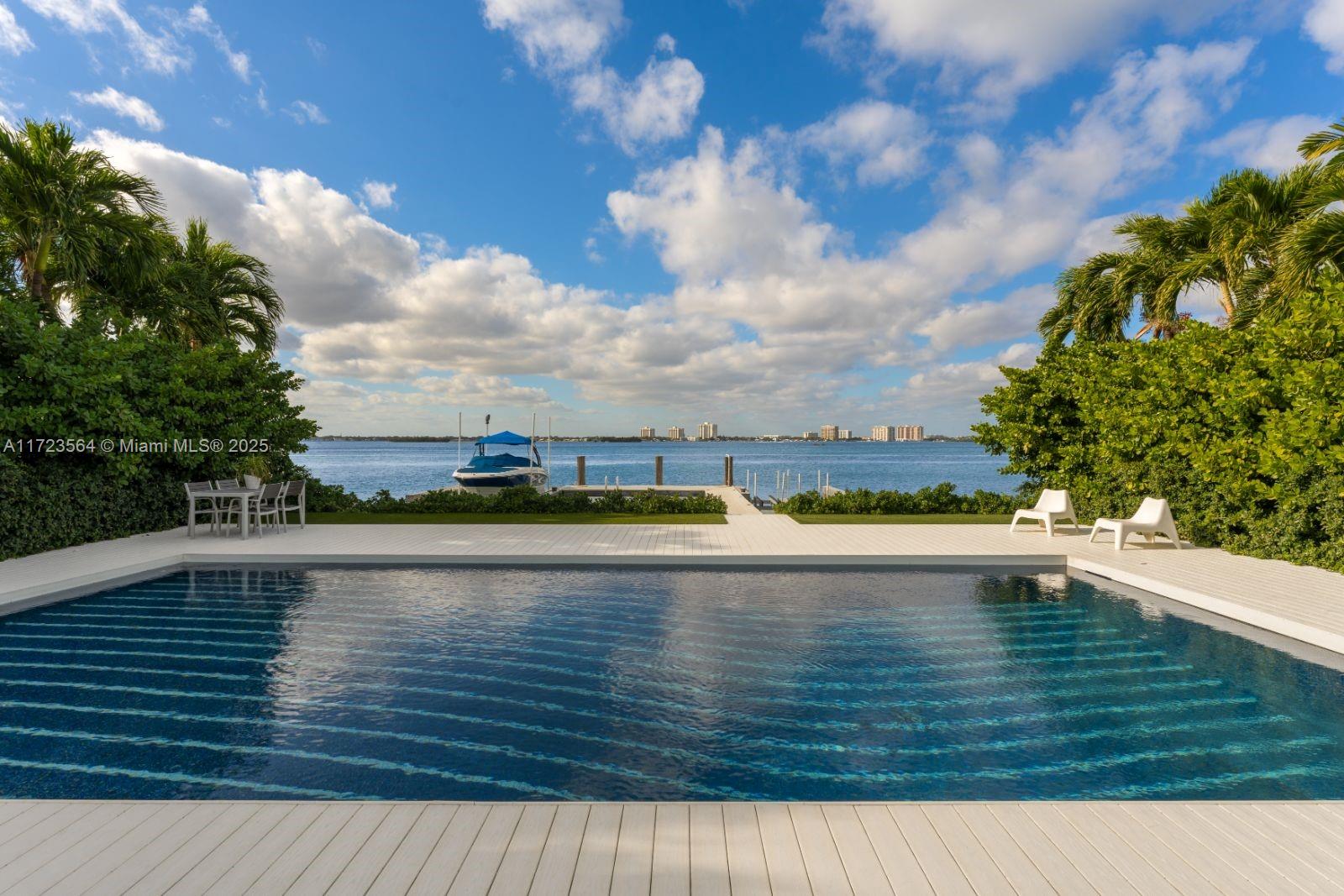 Experience unrivaled panoramic bay views and breathtaking sunsets in Miami Beach's exclusive, guard-gated Normandy Shores. This 4-bedroom, 3.5-bathroom waterfront home spans 3,695 SF, offering unobstructed bayfront views. Sunlit living areas with whitewashed wood floors flow seamlessly into an oversized chef's kitchen, featuring a 12x6 island, JennAir appliances, and a walk-in pantry--all designed to complement the tranquil surroundings. The serene primary suite is a private oasis with direct water views, a spa-inspired bath, and an open-concept closet. Relax by the sparkling pool and embrace the boater's dream with a private dock and two boat lifts. Nestled in a prestigious community offering a golf club, tennis courts, kids playground & parks, this home is the pinnacle of coastal living.
