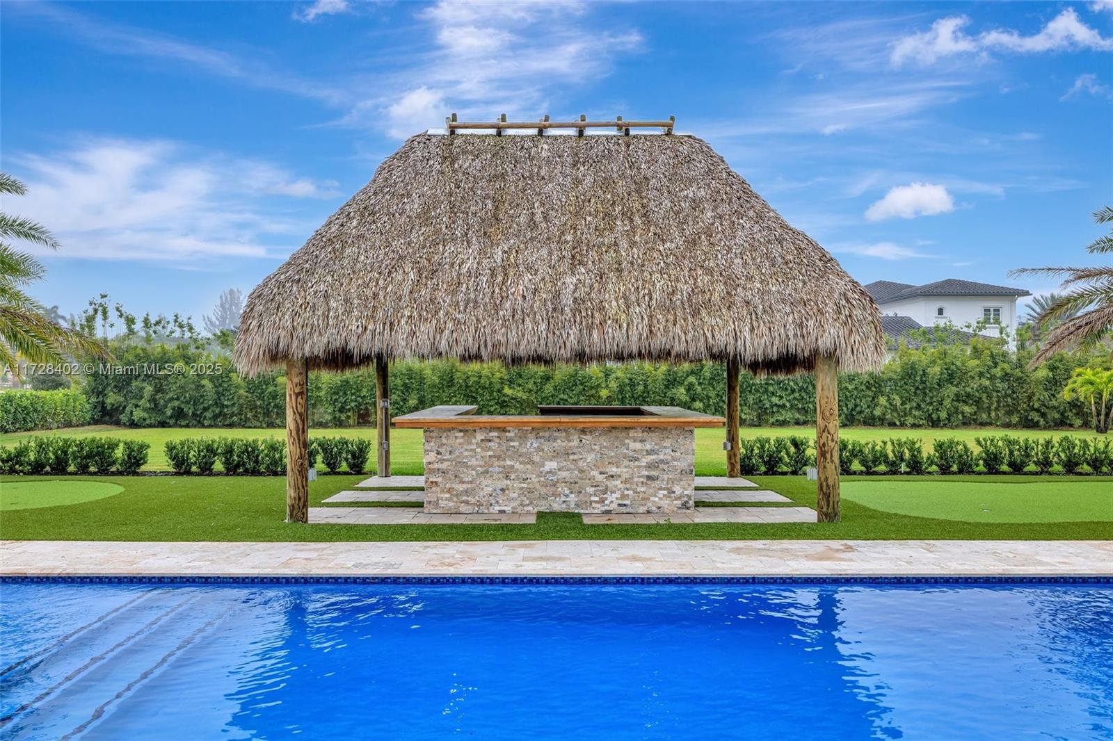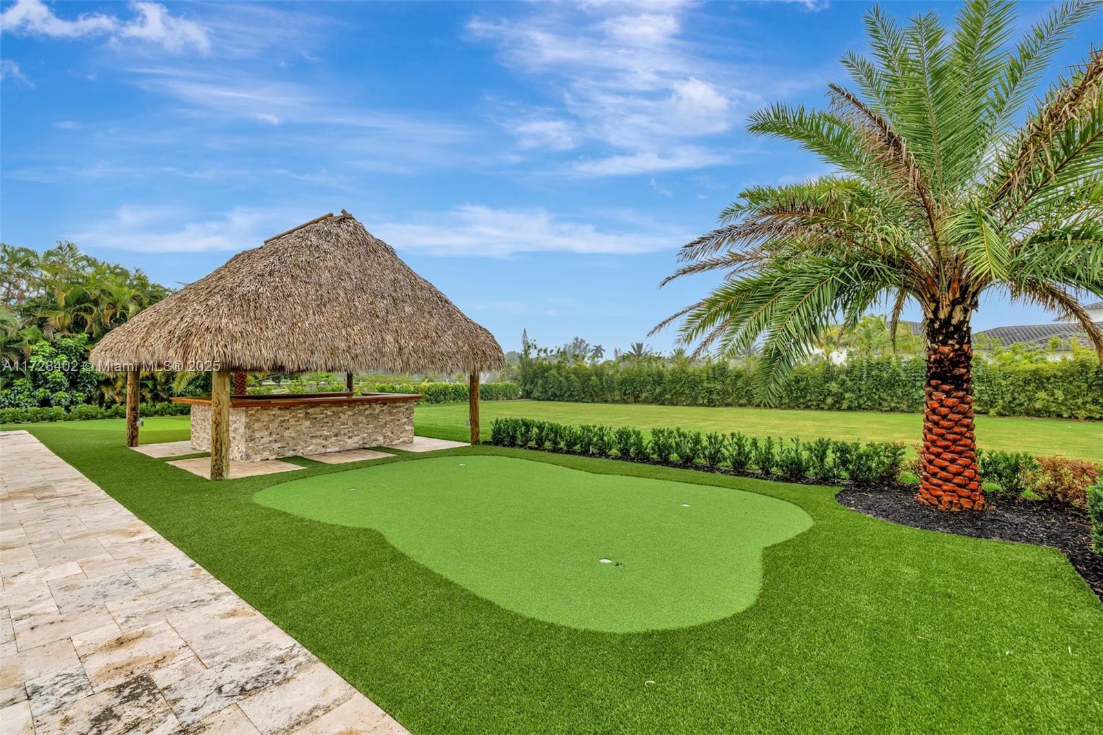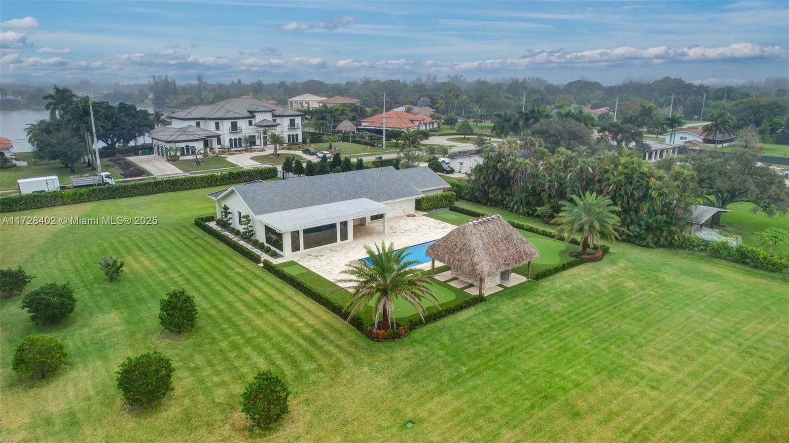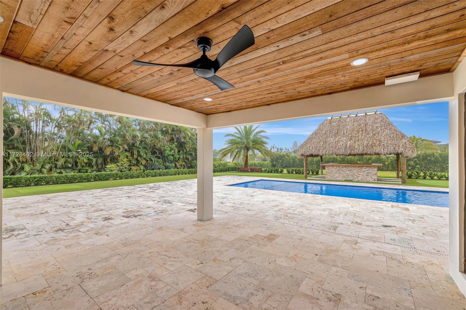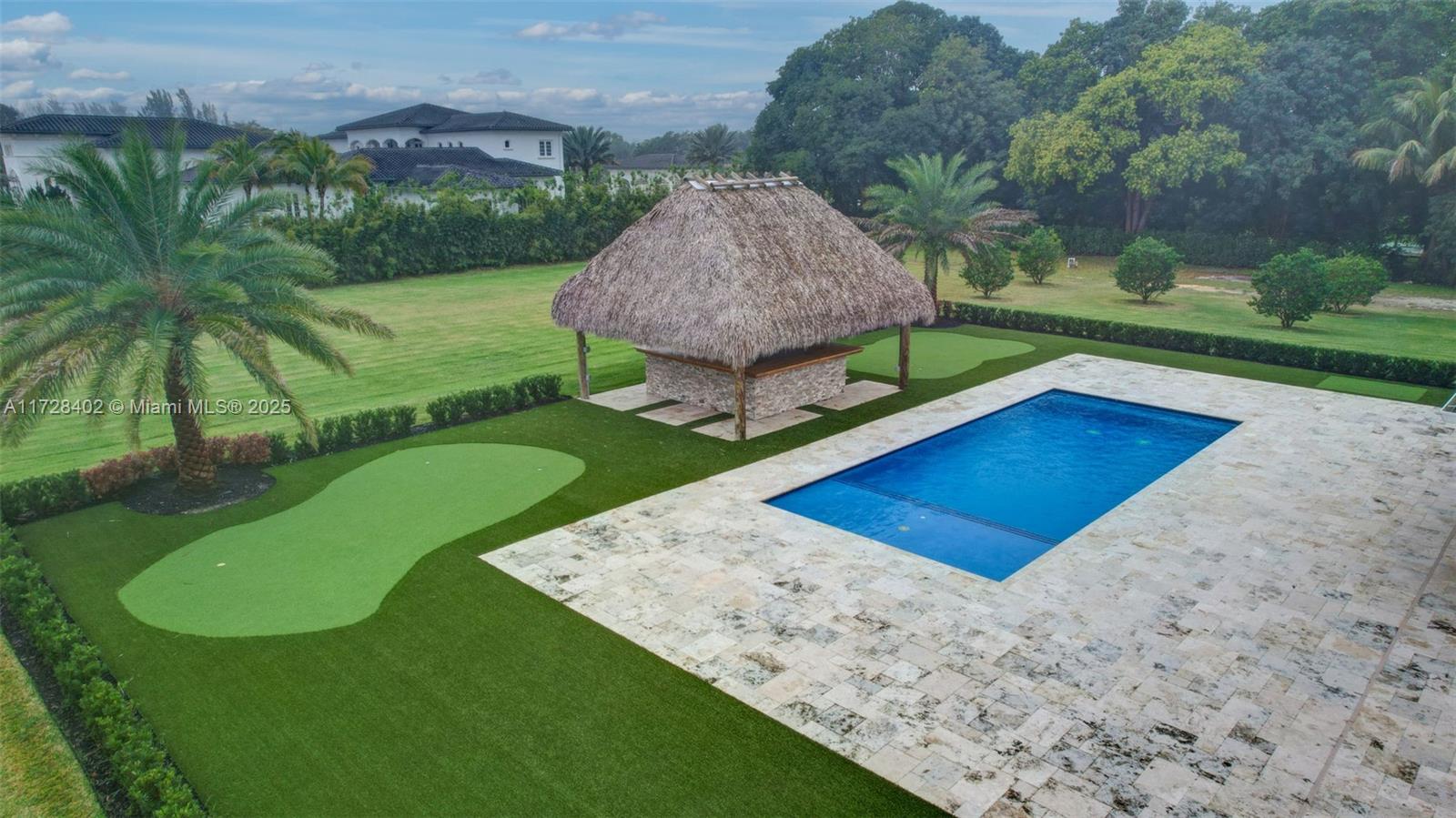 Nestled on nearly two acres, this 3,004 sq. ft. 4-bedroom, 3-bathroom home was remodeled in 2022 and features natural wood plank porcelain tile, quartz countertops, custom white oak cabinetry, Thermador appliances, a 36-inch gas rangetop, double ovens, a built-in microwave, and a bottom-freezer refrigerator. The backyard includes a Van Kirk 15 x 36 ft pool, 3,500 sq. ft pool deck, 3,000 sq. ft of turf, dual putting greens, and a 360 sq. ft Tiki hut with a bar, lighting, and TVs. Upgrades include a new HVAC system, metal and shingle roof, hurricane-impact windows, tankless water heater, 500-gallon propane tank, 30kW Kohler generator, and two-zone irrigation.