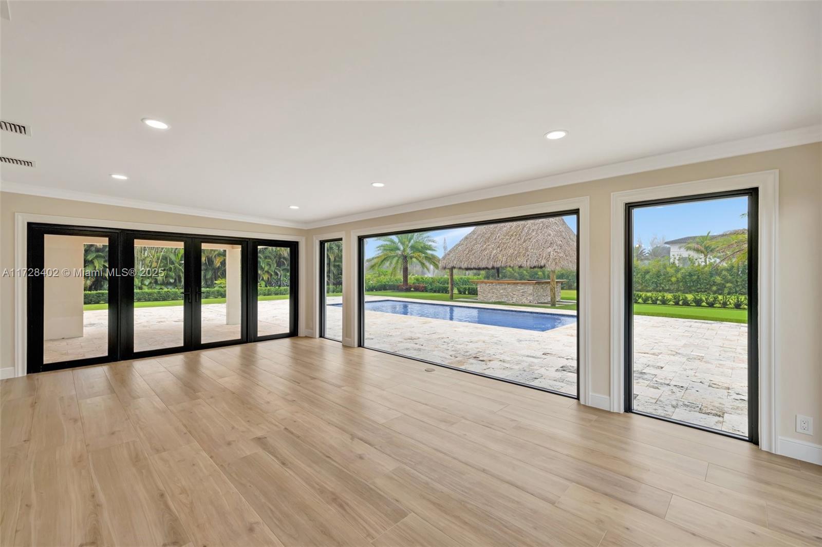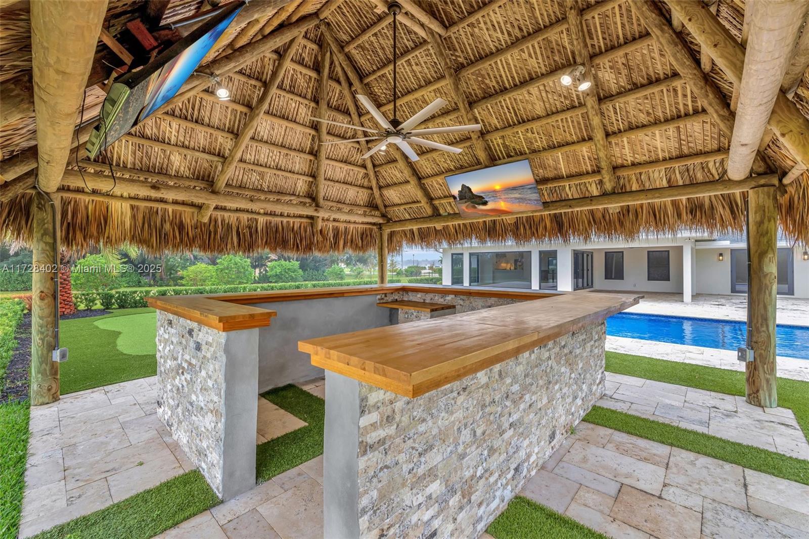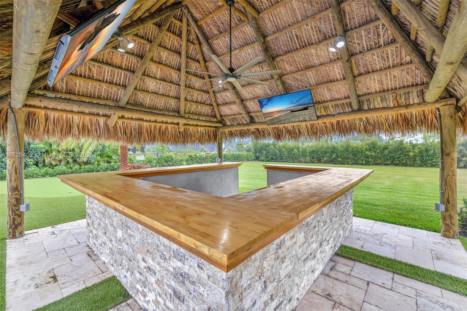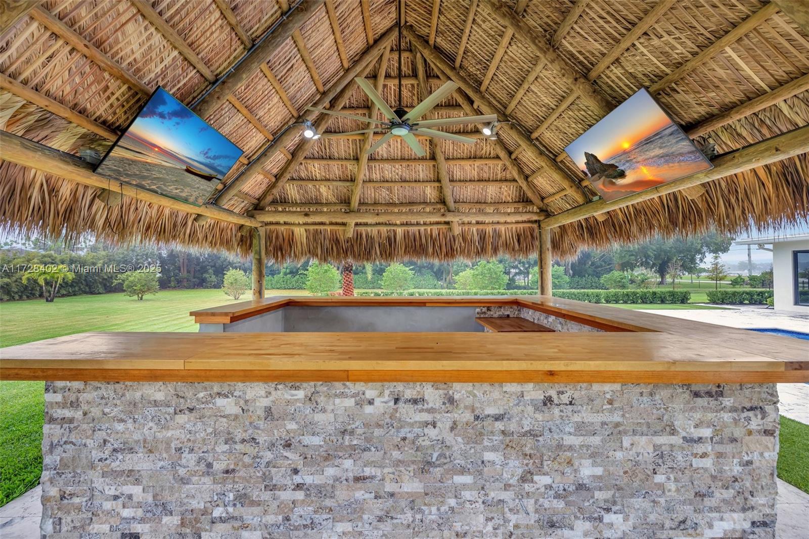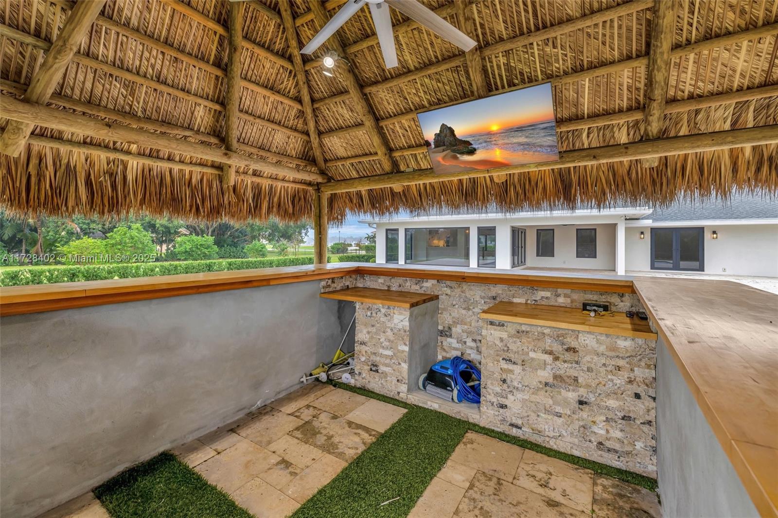 Nestled on nearly two acres, this 3,004 sq. ft. 4-bedroom, 3-bathroom home was remodeled in 2022 and features natural wood plank porcelain tile, quartz countertops, custom white oak cabinetry, Thermador appliances, a 36-inch gas rangetop, double ovens, a built-in microwave, and a bottom-freezer refrigerator. The backyard includes a Van Kirk 15 x 36 ft pool, 3,500 sq. ft pool deck, 3,000 sq. ft of turf, dual putting greens, and a 360 sq. ft Tiki hut with a bar, lighting, and TVs. Upgrades include a new HVAC system, metal and shingle roof, hurricane-impact windows, tankless water heater, 500-gallon propane tank, 30kW Kohler generator, and two-zone irrigation.