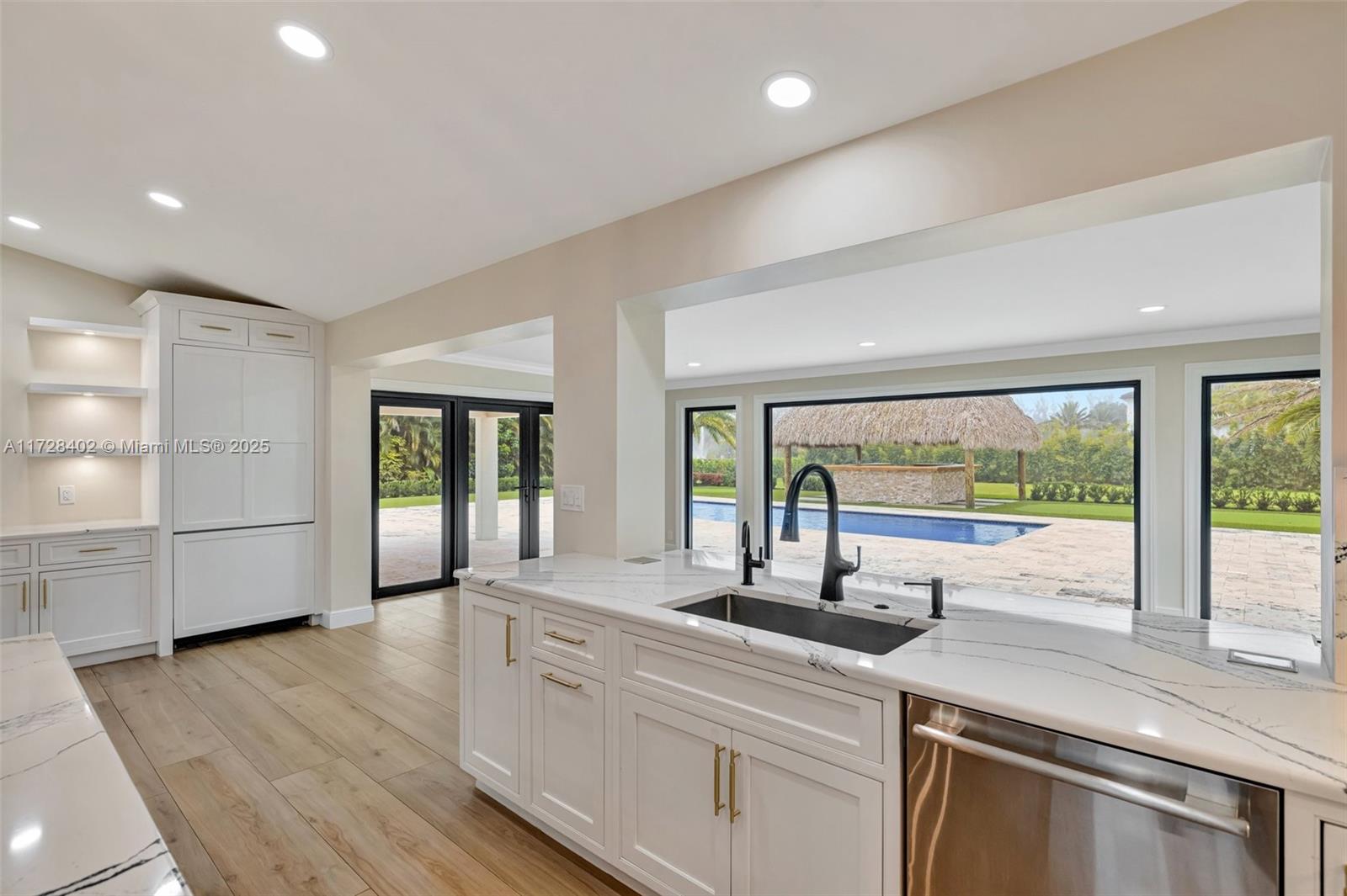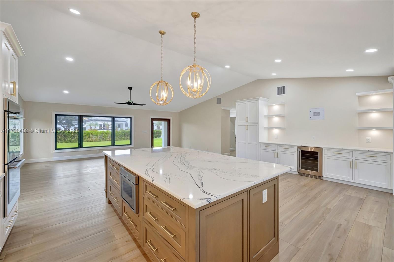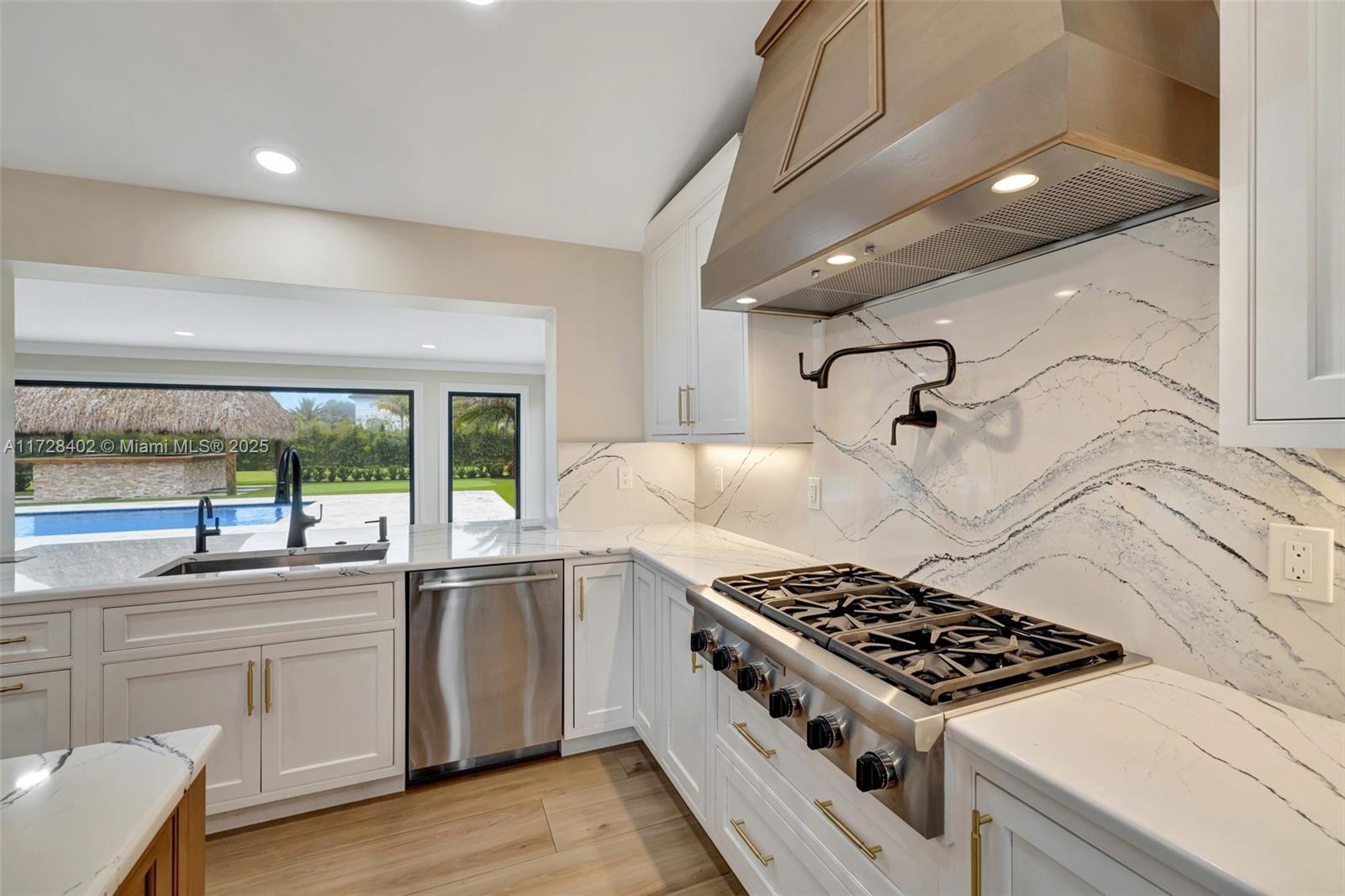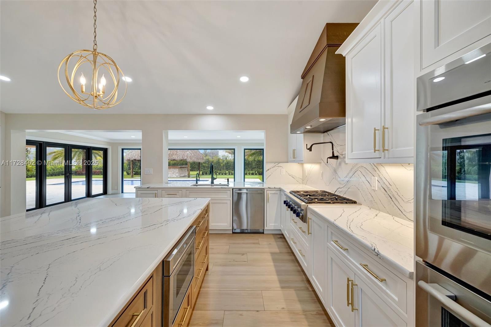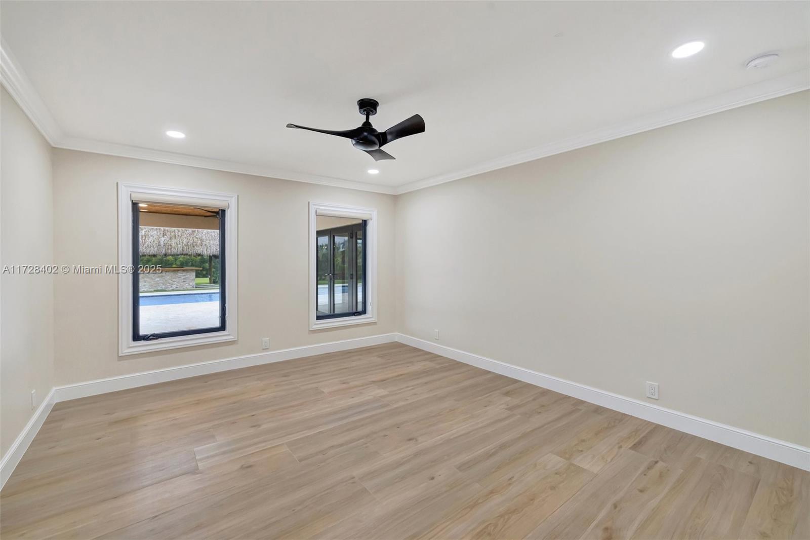 Nestled on nearly two acres, this 3,004 sq. ft. 4-bedroom, 3-bathroom home was remodeled in 2022 and features natural wood plank porcelain tile, quartz countertops, custom white oak cabinetry, Thermador appliances, a 36-inch gas rangetop, double ovens, a built-in microwave, and a bottom-freezer refrigerator. The backyard includes a Van Kirk 15 x 36 ft pool, 3,500 sq. ft pool deck, 3,000 sq. ft of turf, dual putting greens, and a 360 sq. ft Tiki hut with a bar, lighting, and TVs. Upgrades include a new HVAC system, metal and shingle roof, hurricane-impact windows, tankless water heater, 500-gallon propane tank, 30kW Kohler generator, and two-zone irrigation.